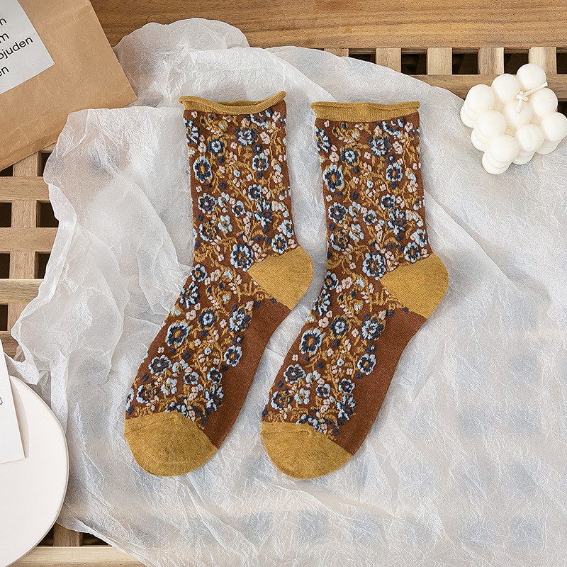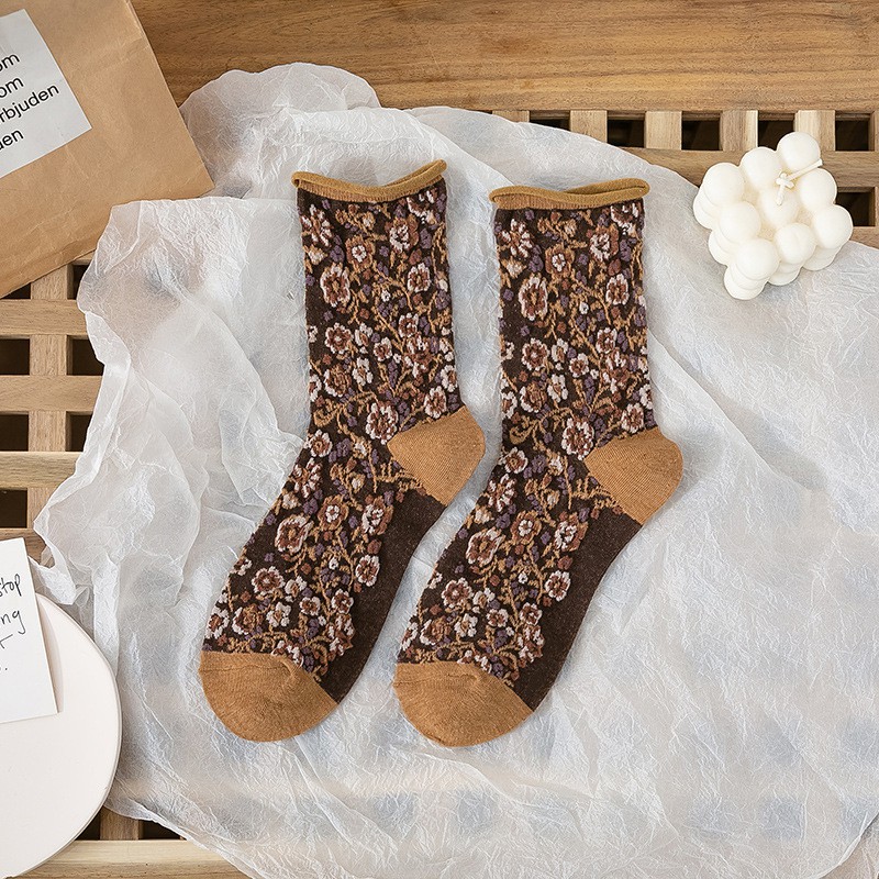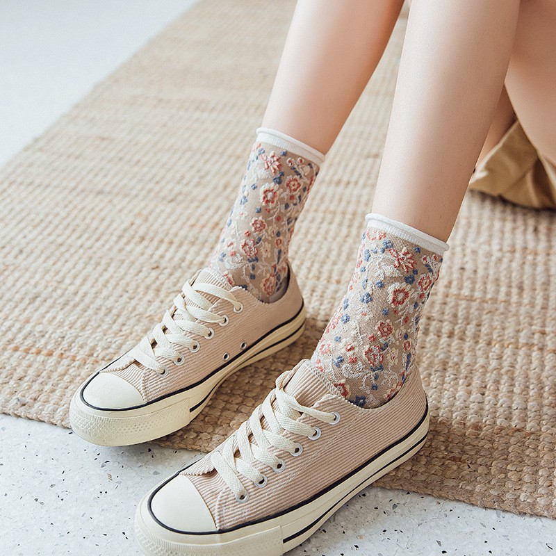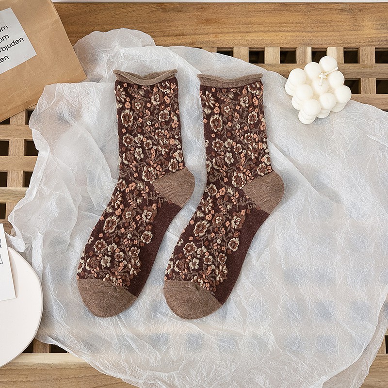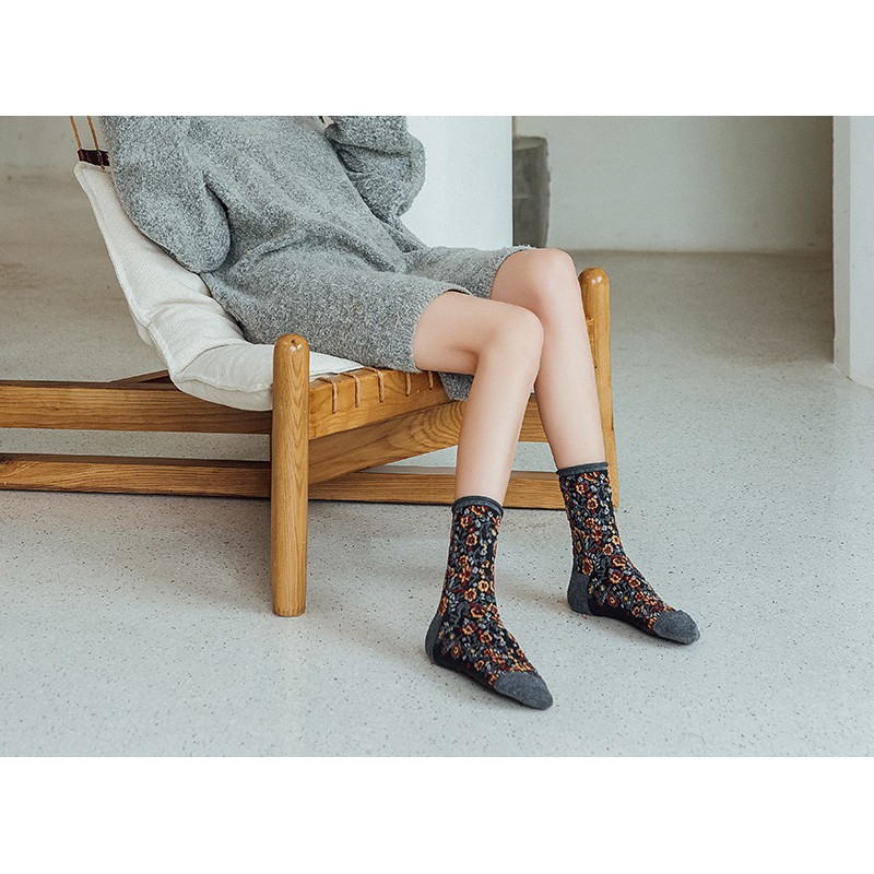 阿華有事嗎AHUA 日系襪子 無痕捲邊立體碎花中筒襪 S0359 少女襪 韓妞必備中筒襪 百搭純棉襪