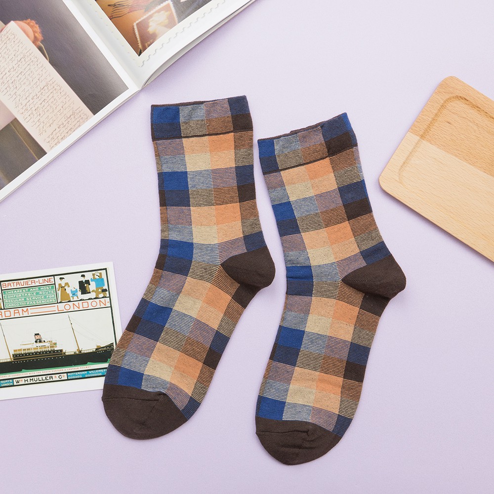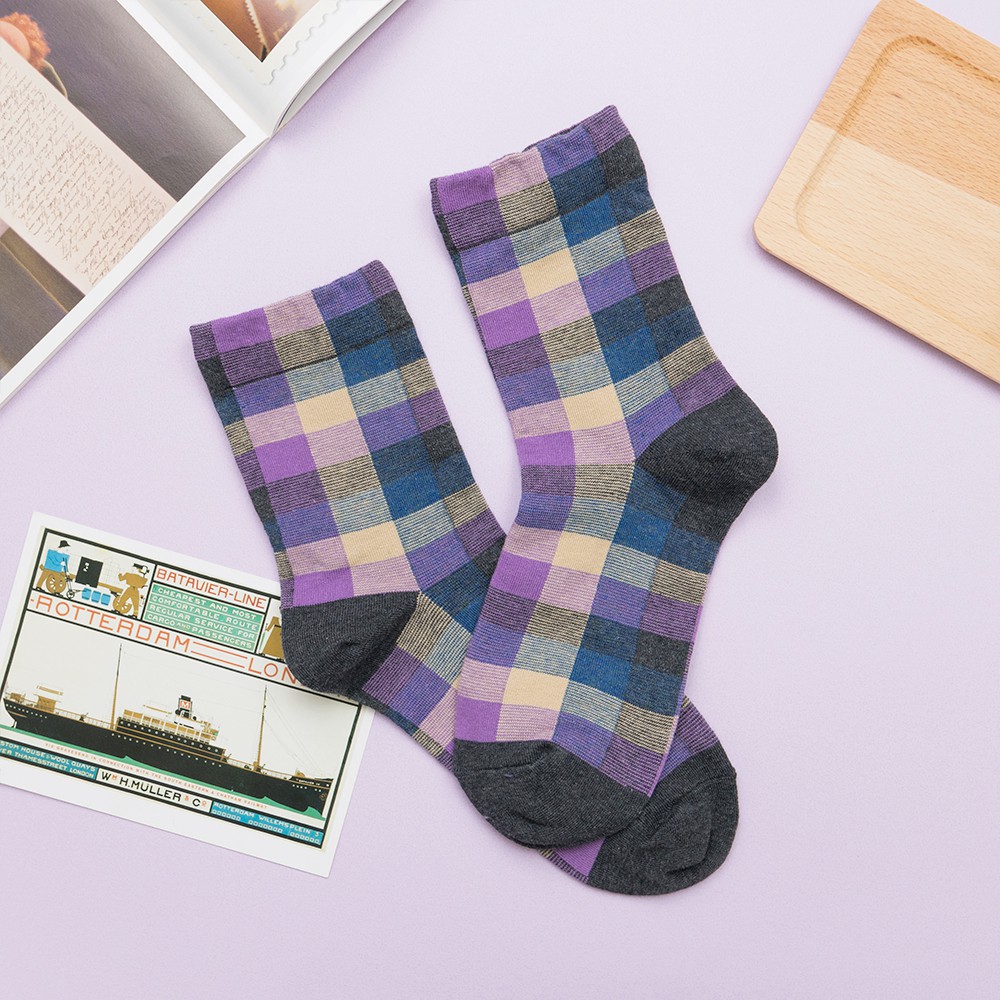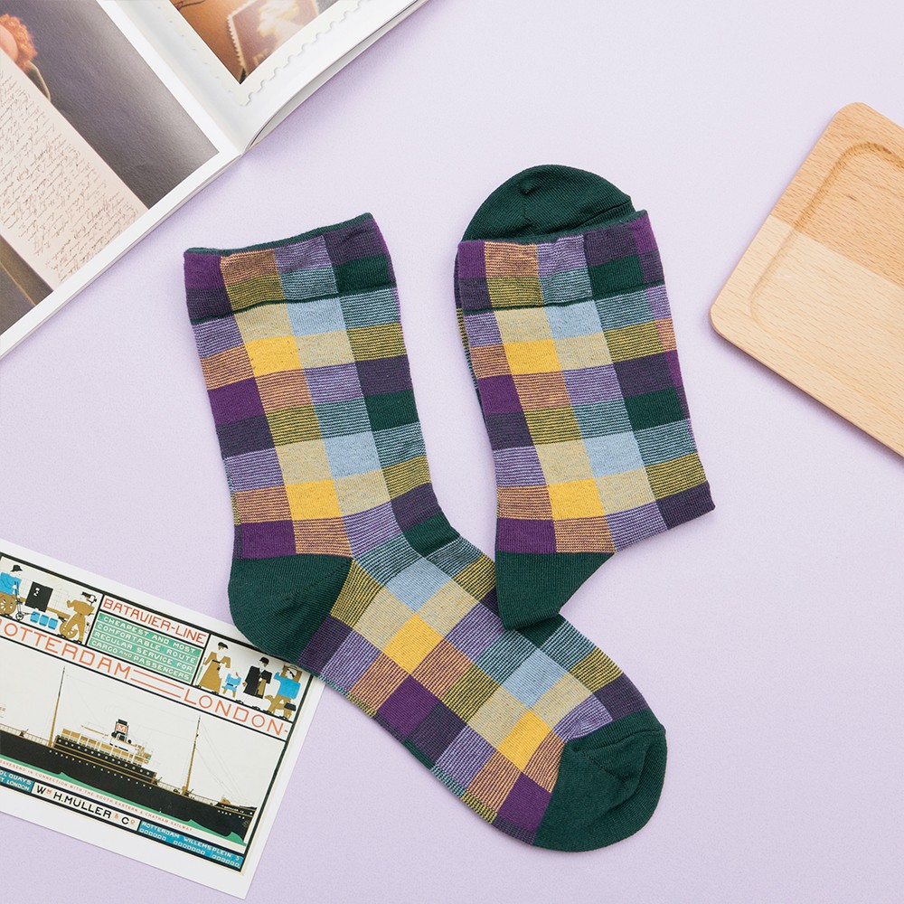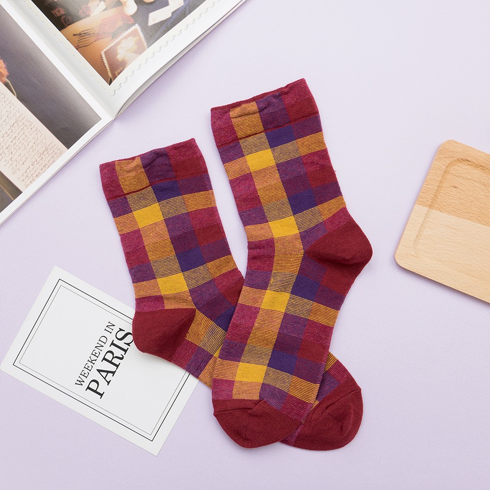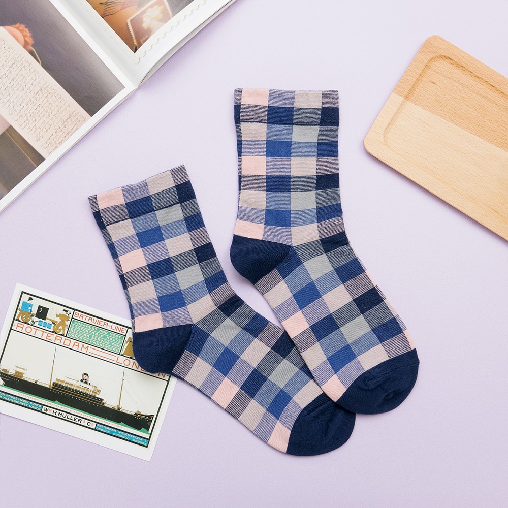 AHUA阿華有事嗎 韓國襪子 復古拼色格紋中筒襪 K0668 正韓少女襪 韓妞必備長襪 百搭純棉襪 素色襪子