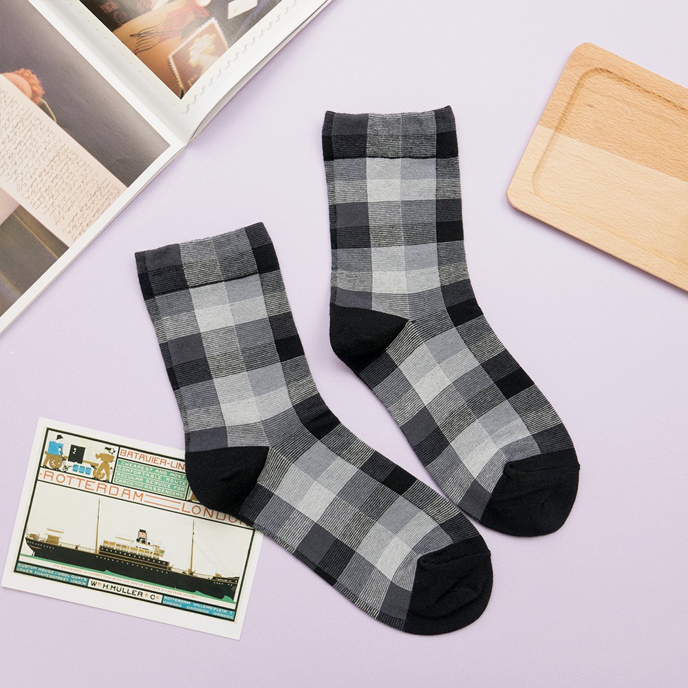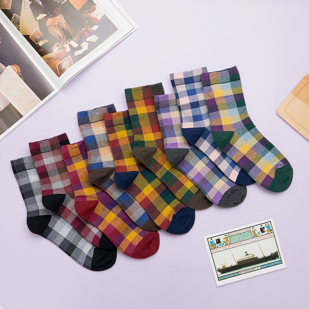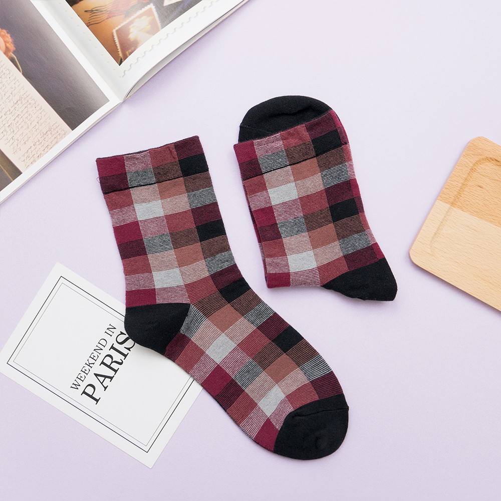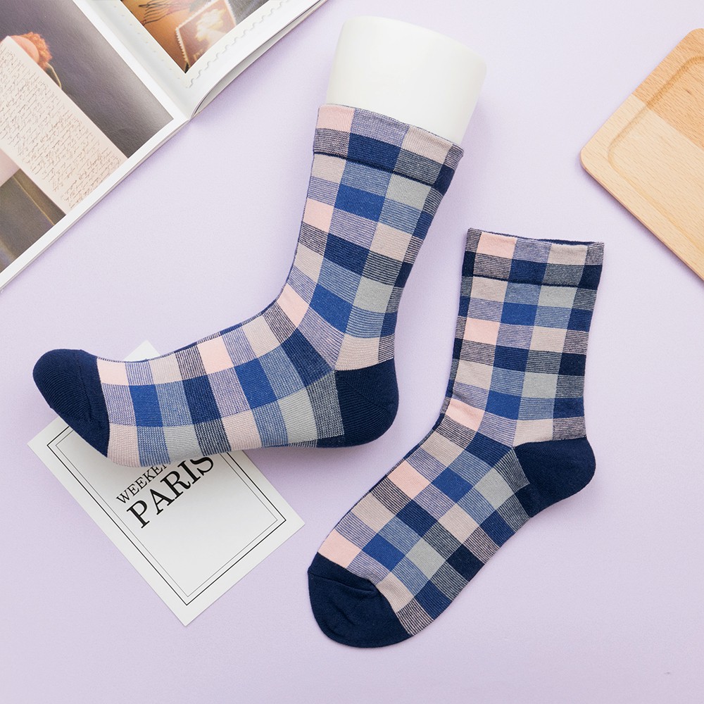 AHUA阿華有事嗎 韓國襪子 復古拼色格紋中筒襪 K0668 正韓少女襪 韓妞必備長襪 百搭純棉襪 素色襪子