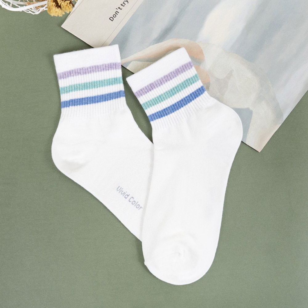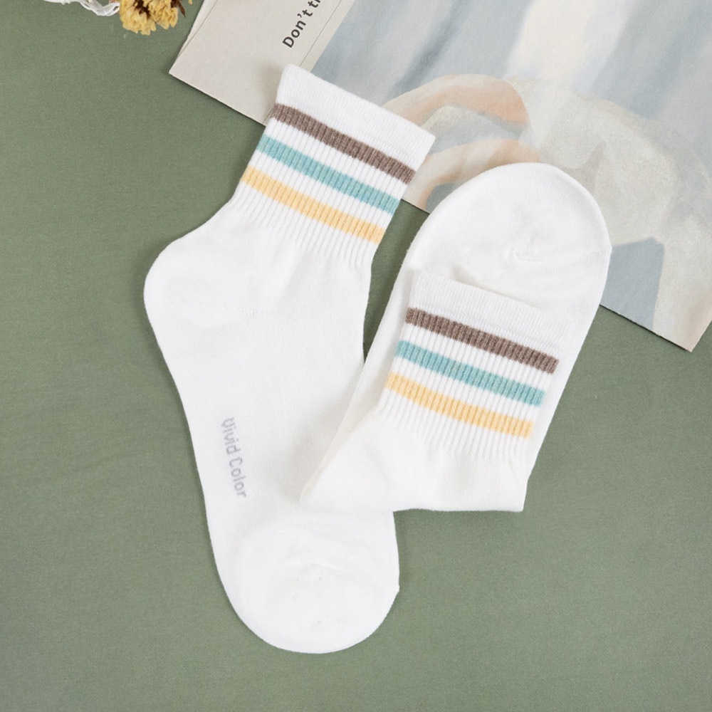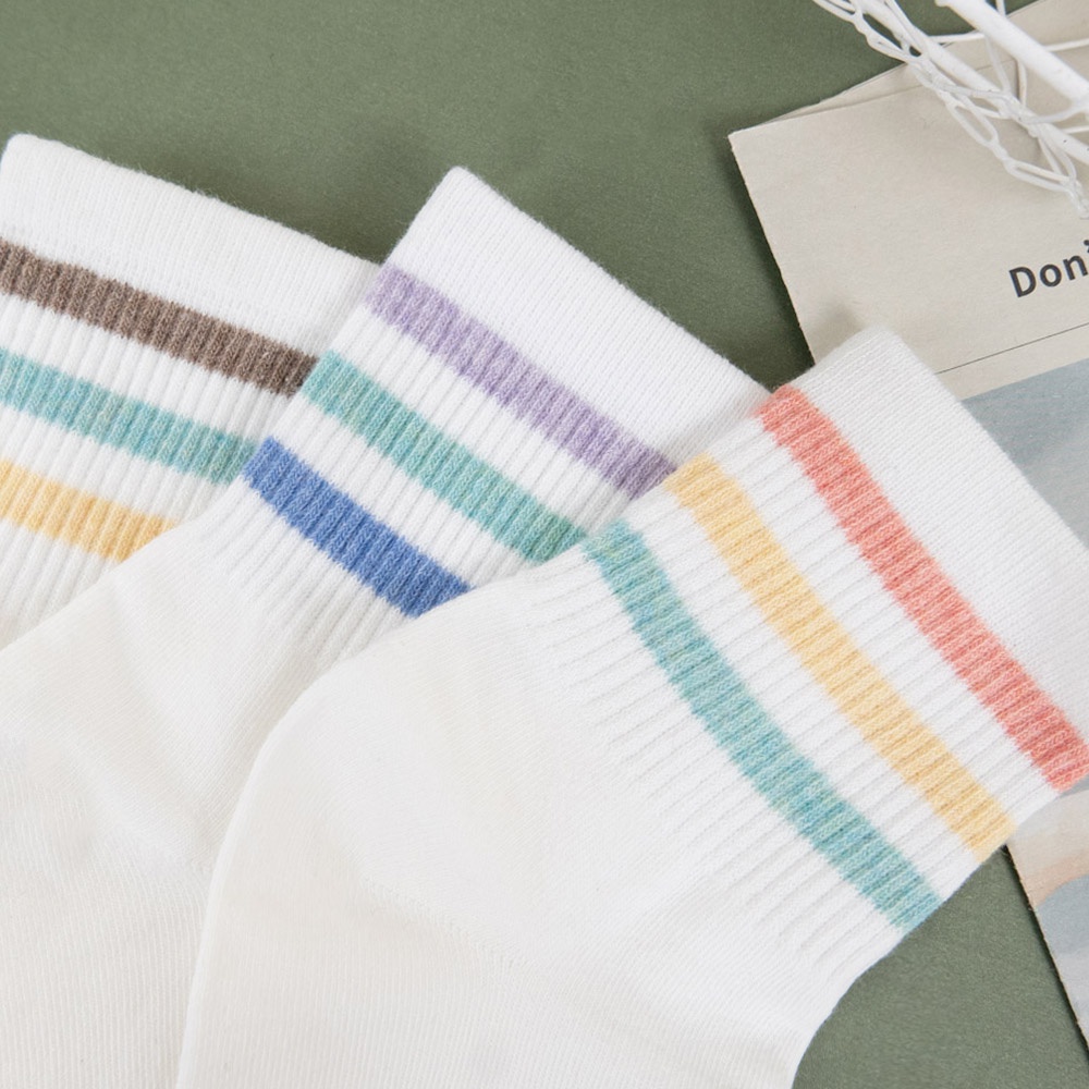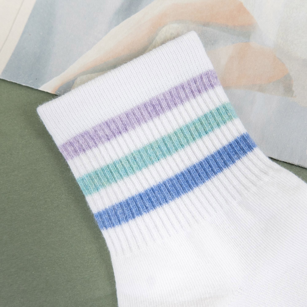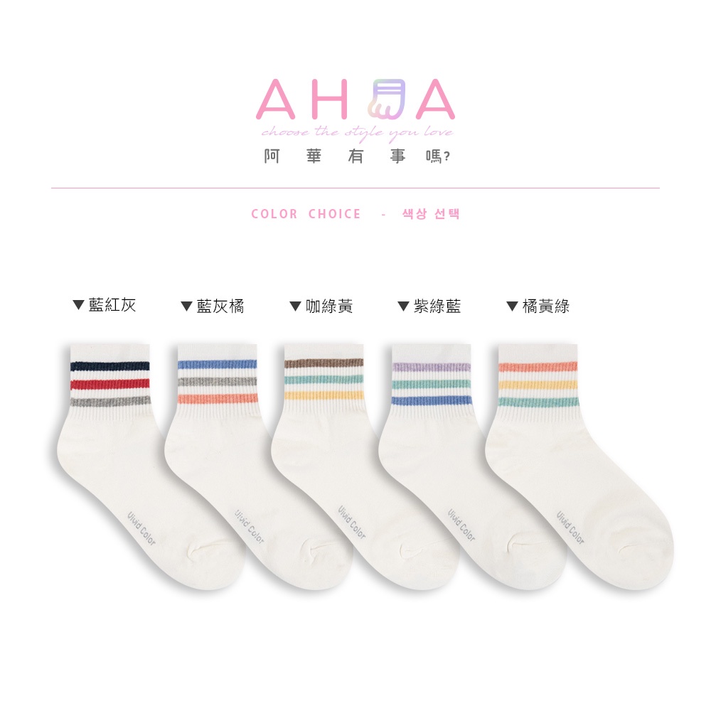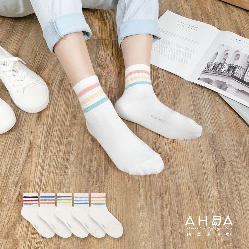 AHUA 韓國襪子 粉嫩糖果三條紋中筒襪【現貨】女襪 女生襪子 條紋襪 襪子推薦 韓國襪 純棉襪 K0108 阿華有事嗎
