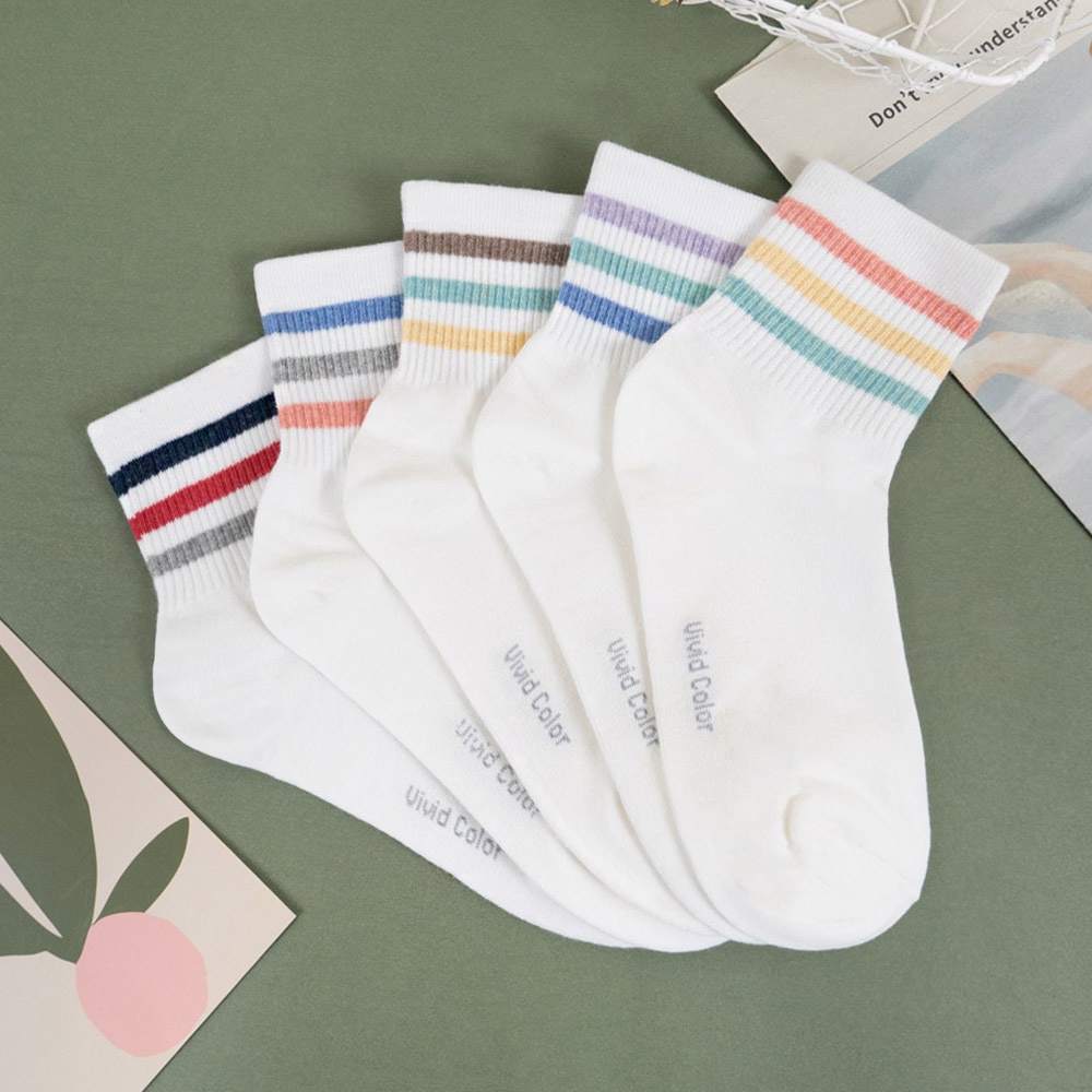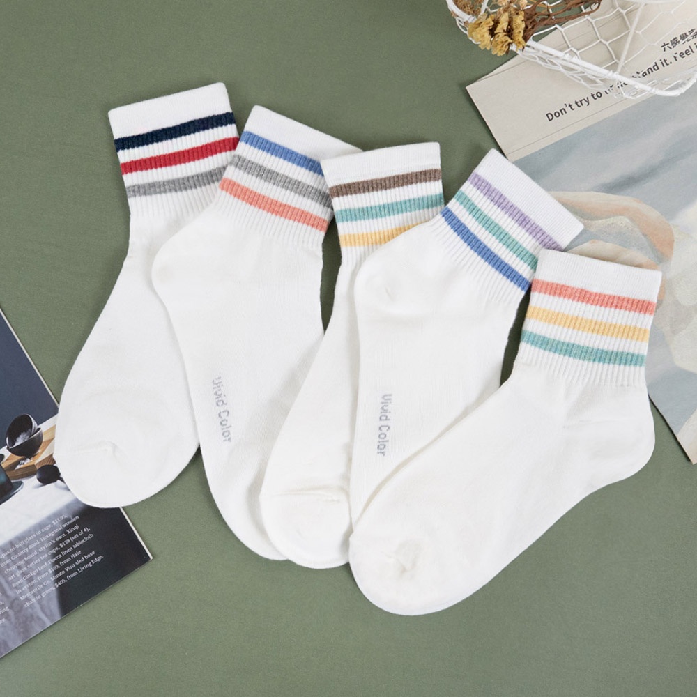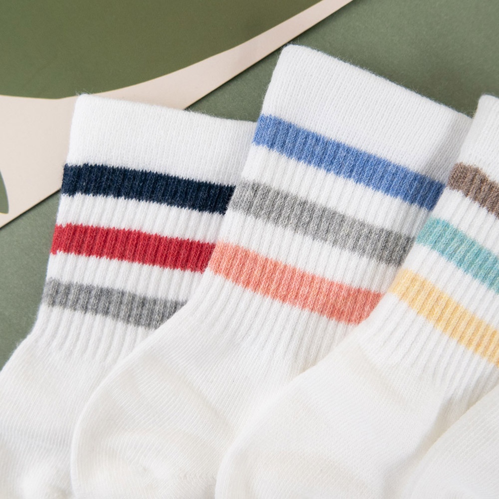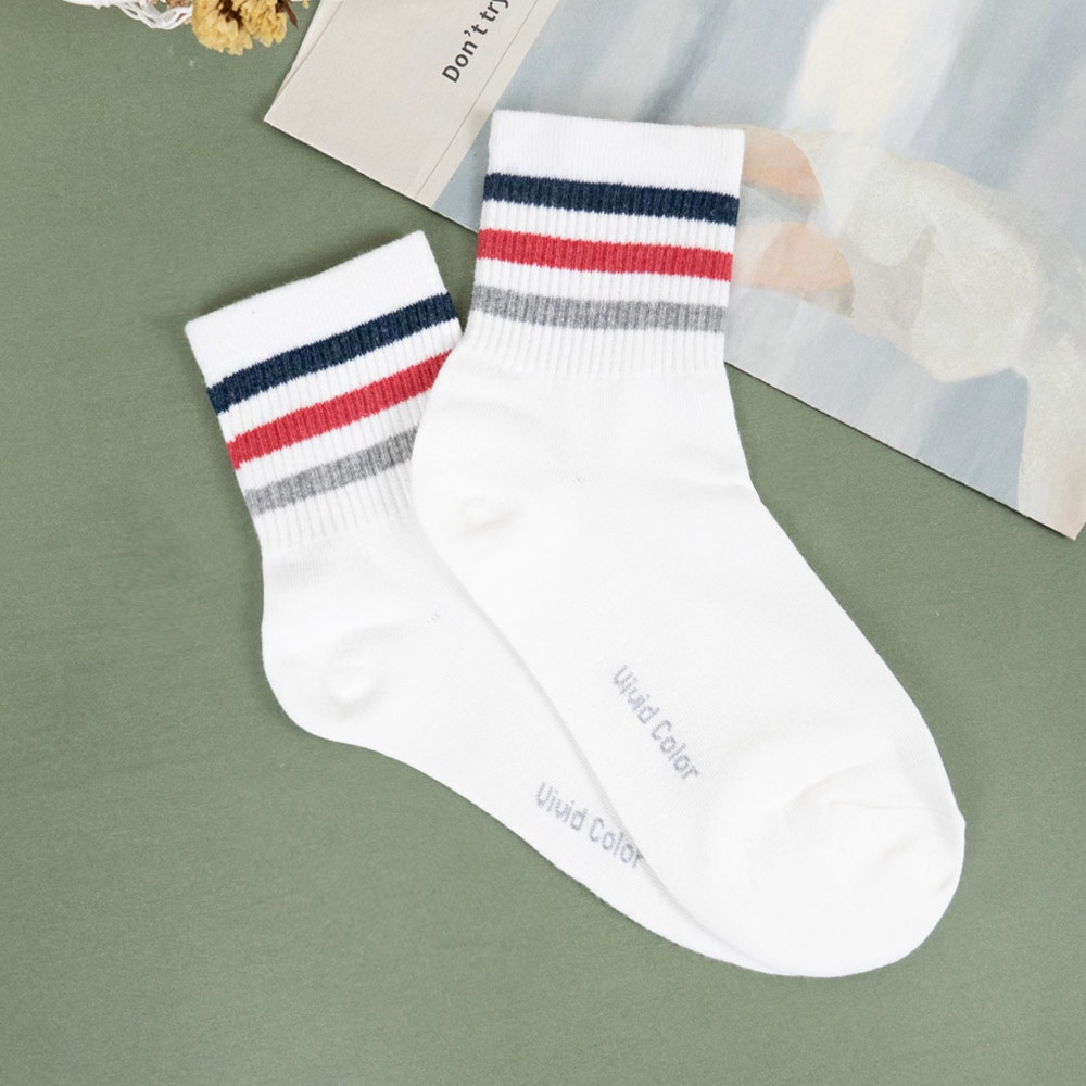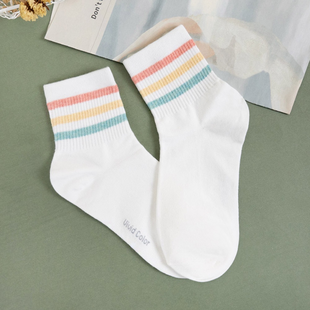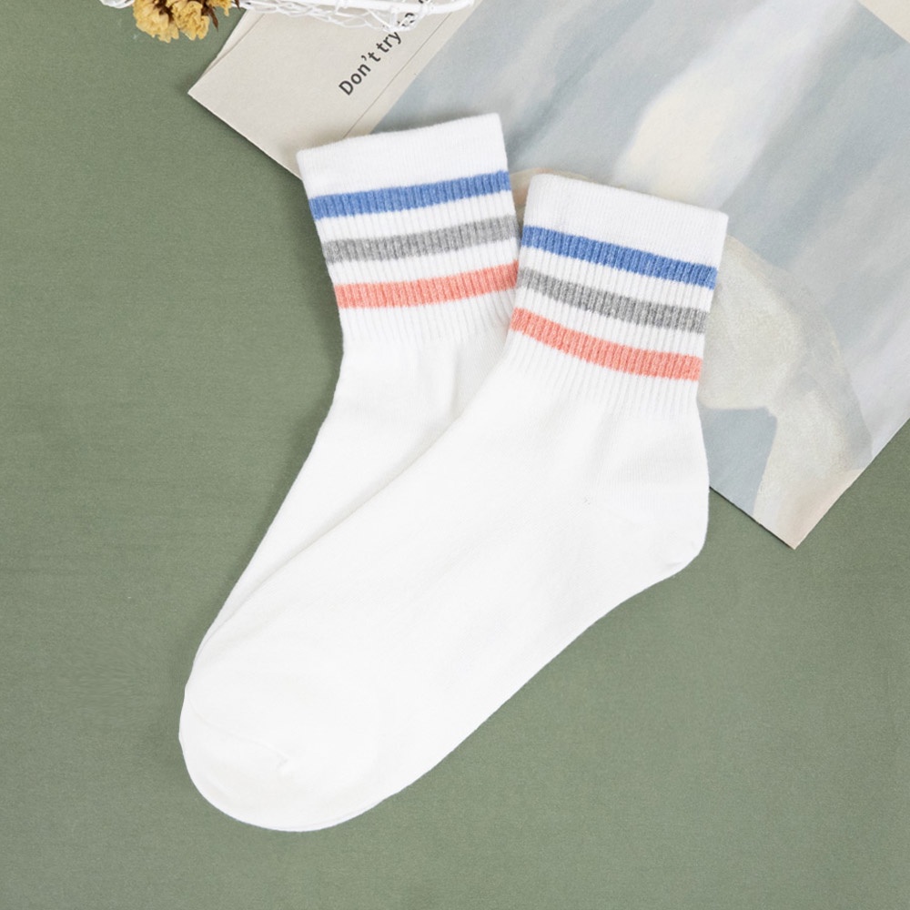 AHUA 韓國襪子 粉嫩糖果三條紋中筒襪【現貨】女襪 女生襪子 條紋襪 襪子推薦 韓國襪 純棉襪 K0108 阿華有事嗎