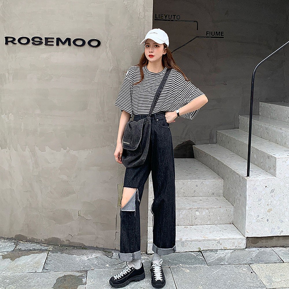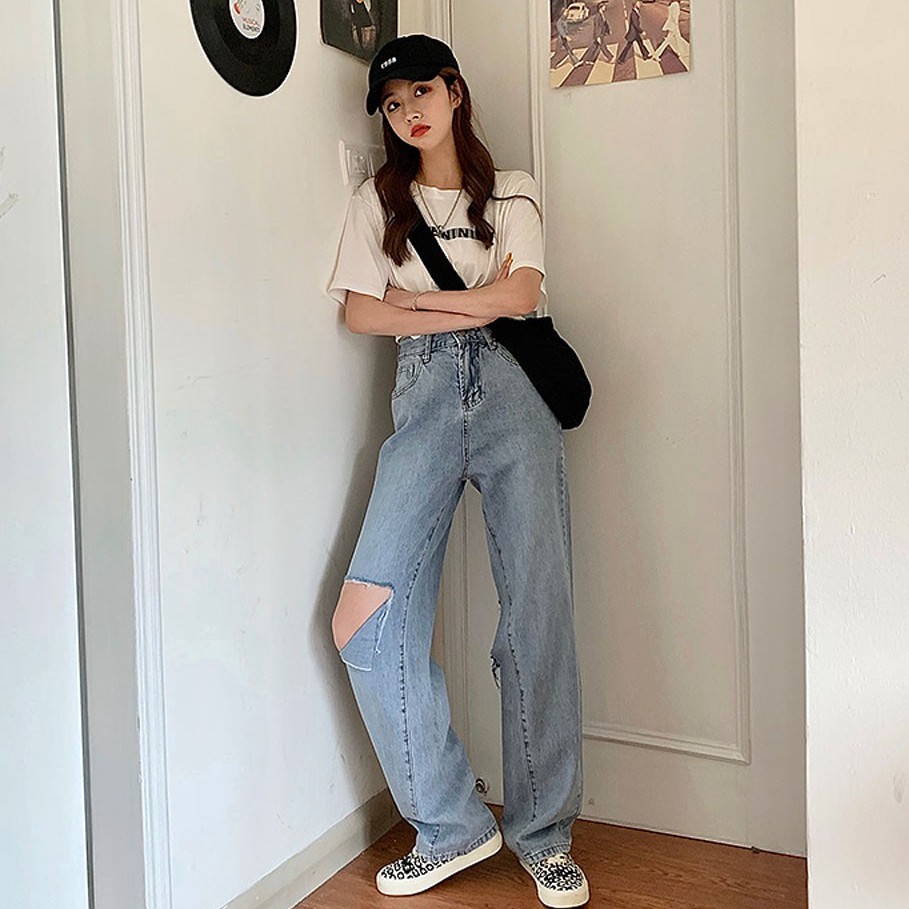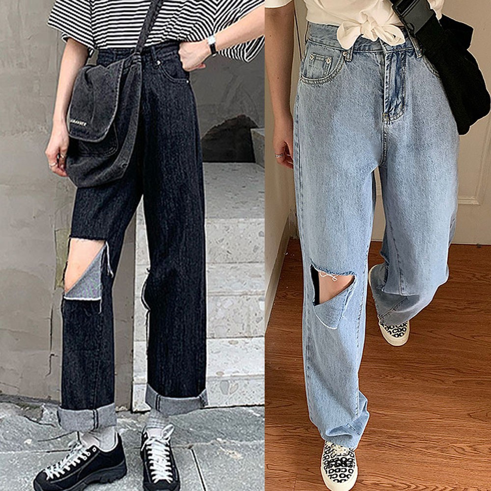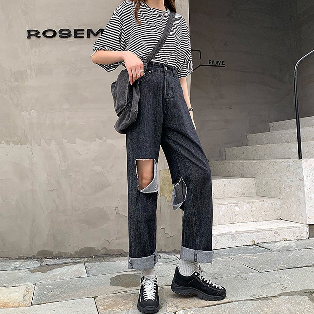 阿華有事嗎AHUA 韓系女裝 高腰直筒割破牛仔褲【C1839】韓妞必備 百搭 顯瘦 基本款 簡約 個性 刷破 長褲