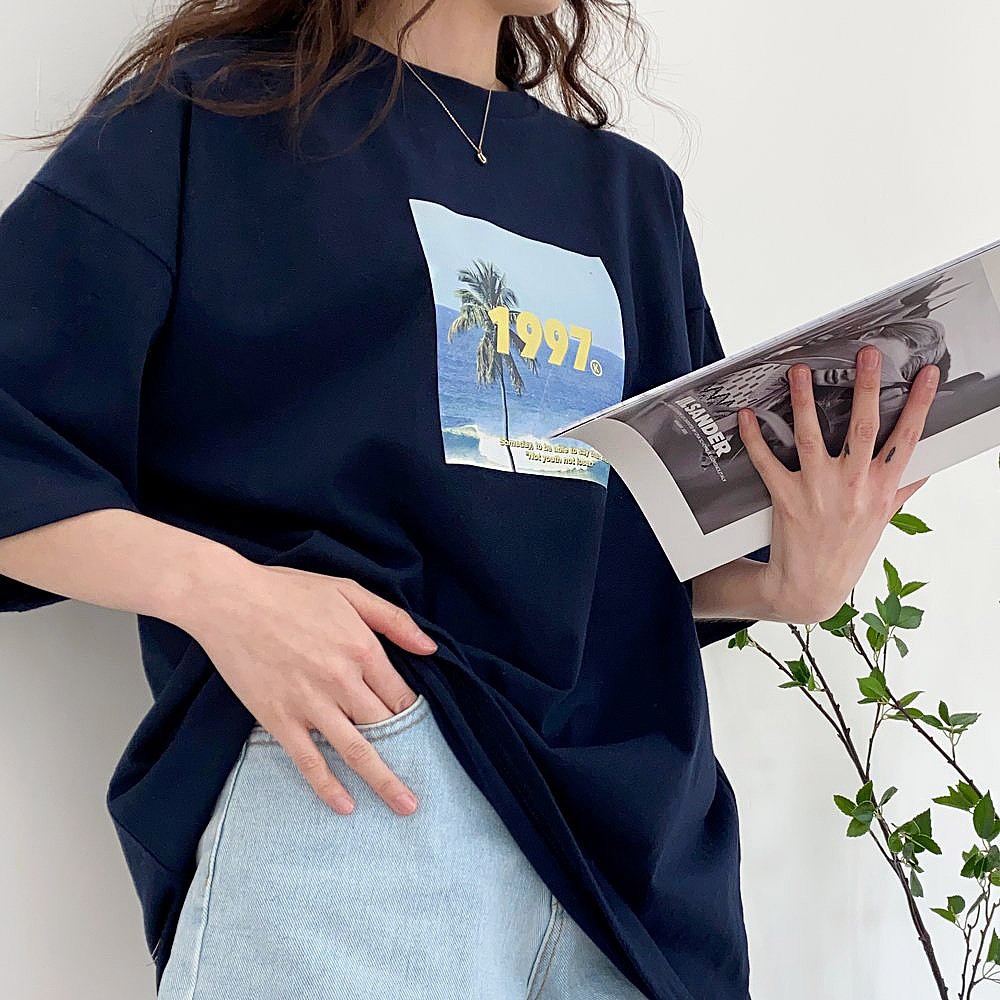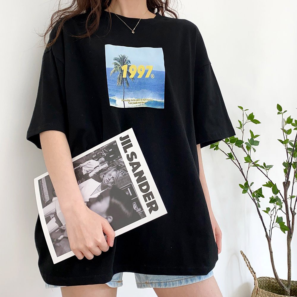 阿華有事嗎AHUA 韓國女裝 1997海邊圖像短袖T恤【C1867】 韓妞必備 百搭顯瘦基本款