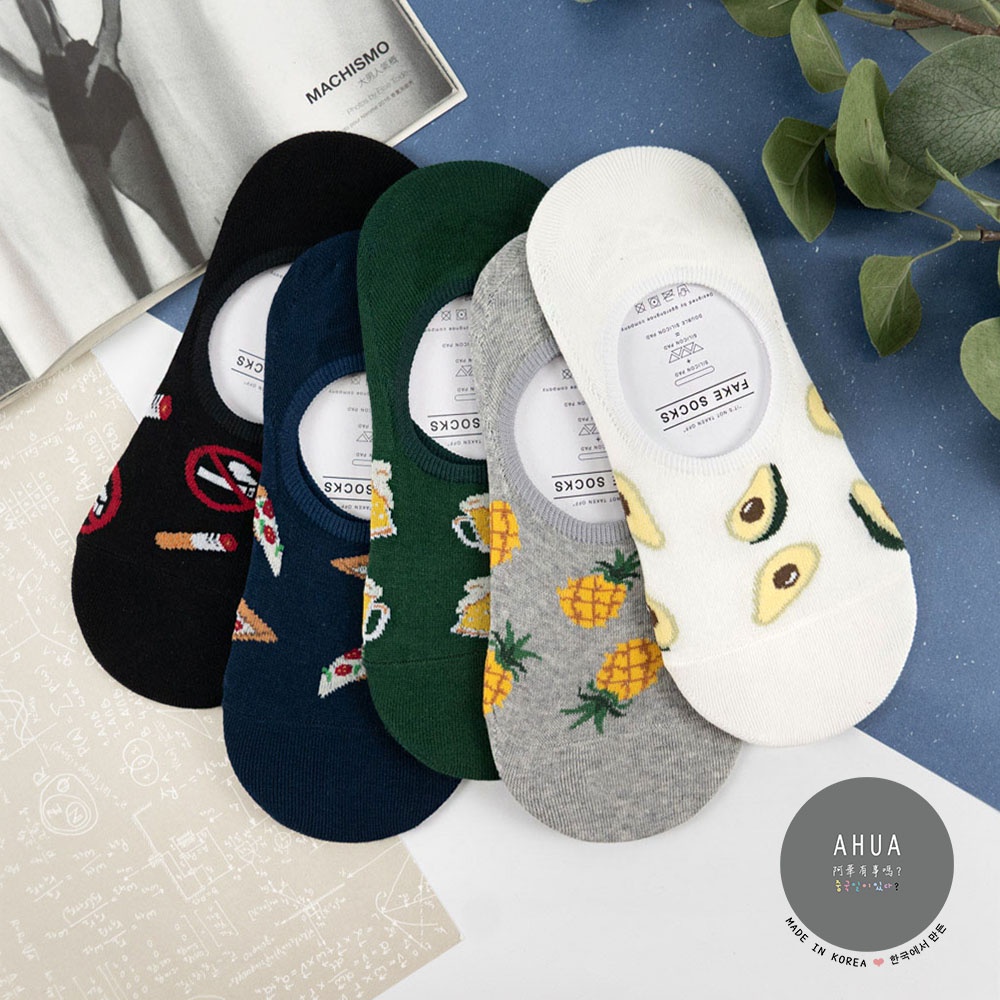 AUHA阿華有事嗎 韓國襪子 滿版食物插圖男生隱形襪 男襪【K1222】 百搭純棉襪