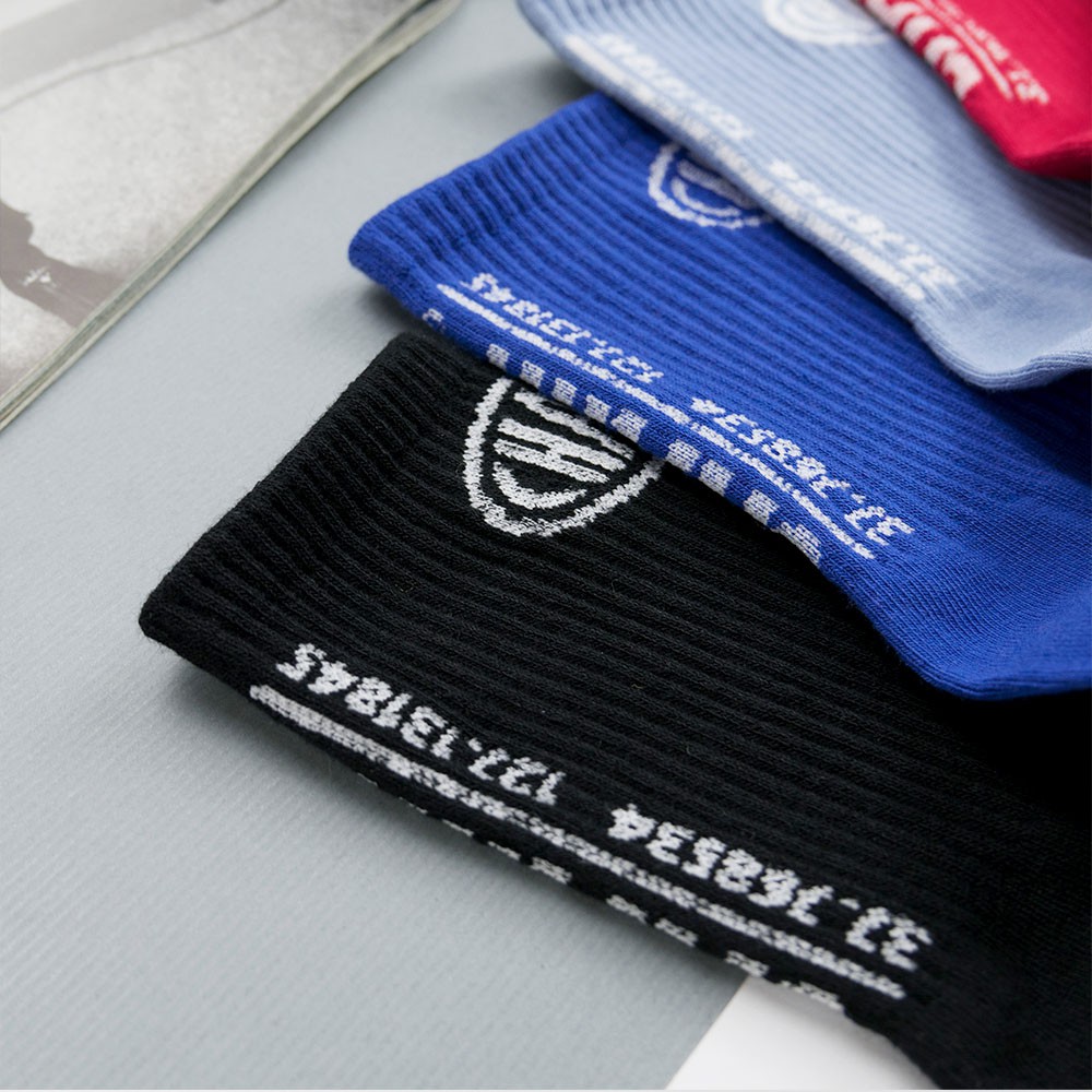 AHUA 韓國襪子 彩底標籤後跟英文中筒襪 男襪 男生襪子 正韓男襪 襪子推薦 純棉襪 素色襪子 K0736 阿華有事嗎