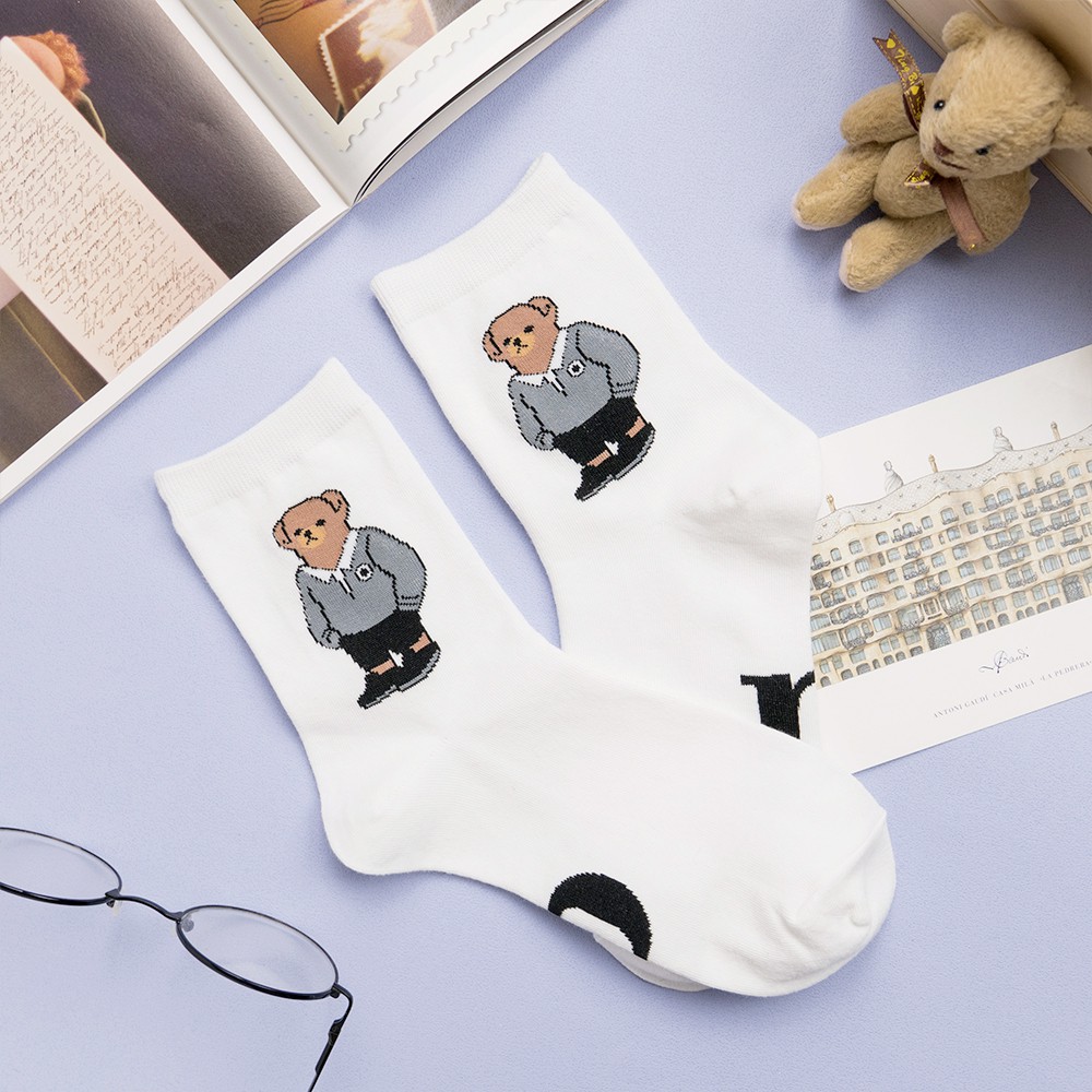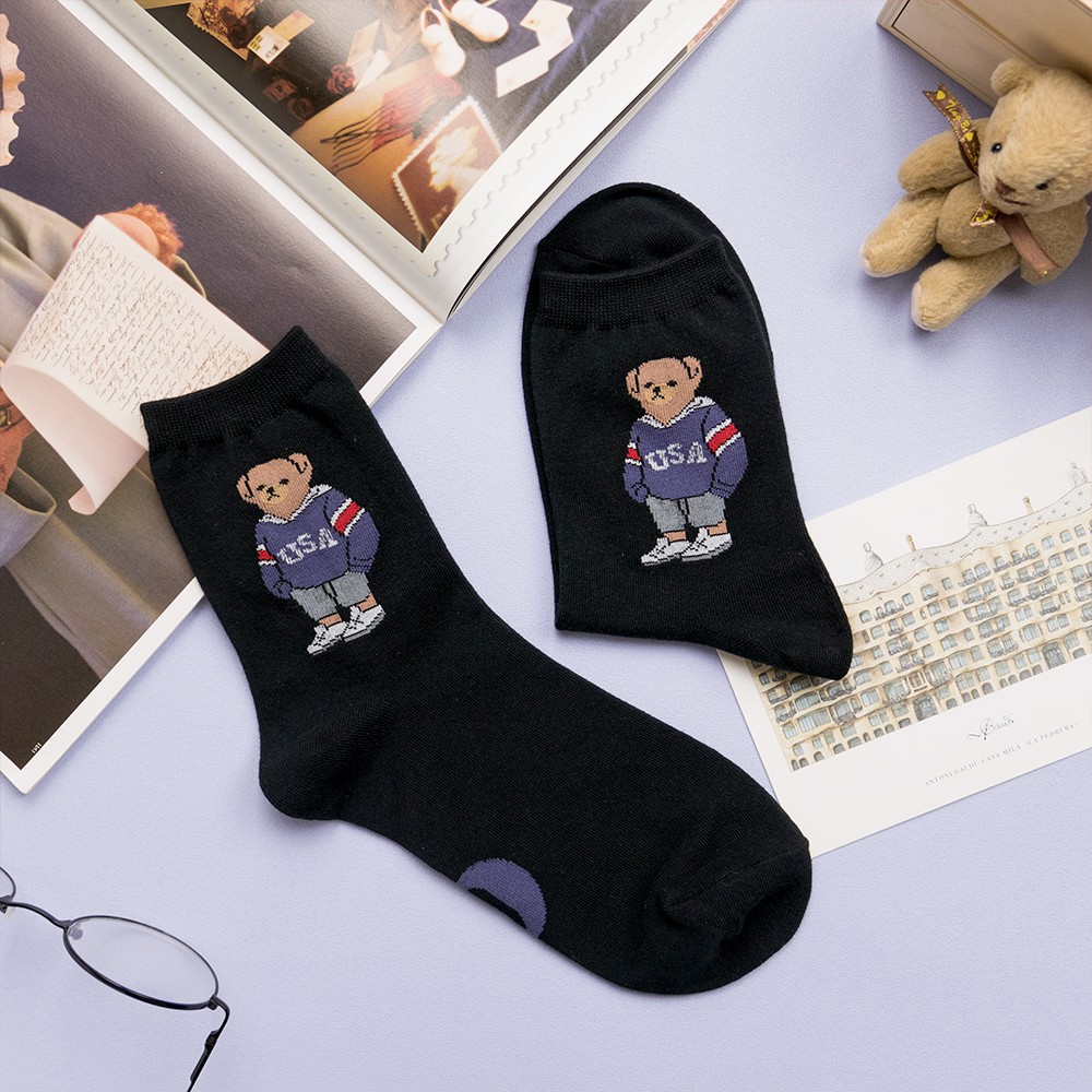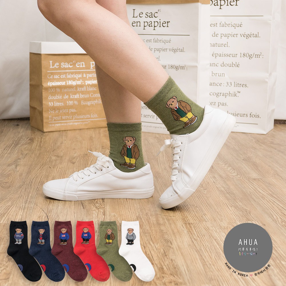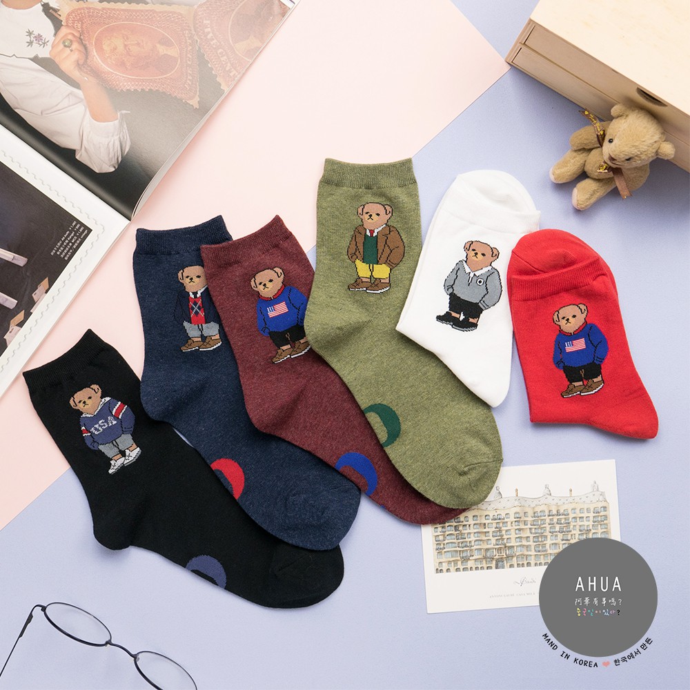 AHUA阿華有事嗎 韓國襪子 全身美國小熊中筒襪 K0723 正韓少女襪 韓妞必備卡通襪 百搭純棉襪 素色襪子