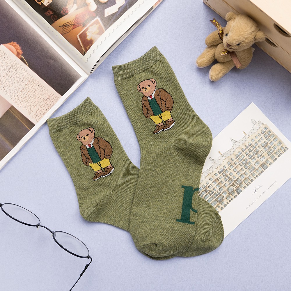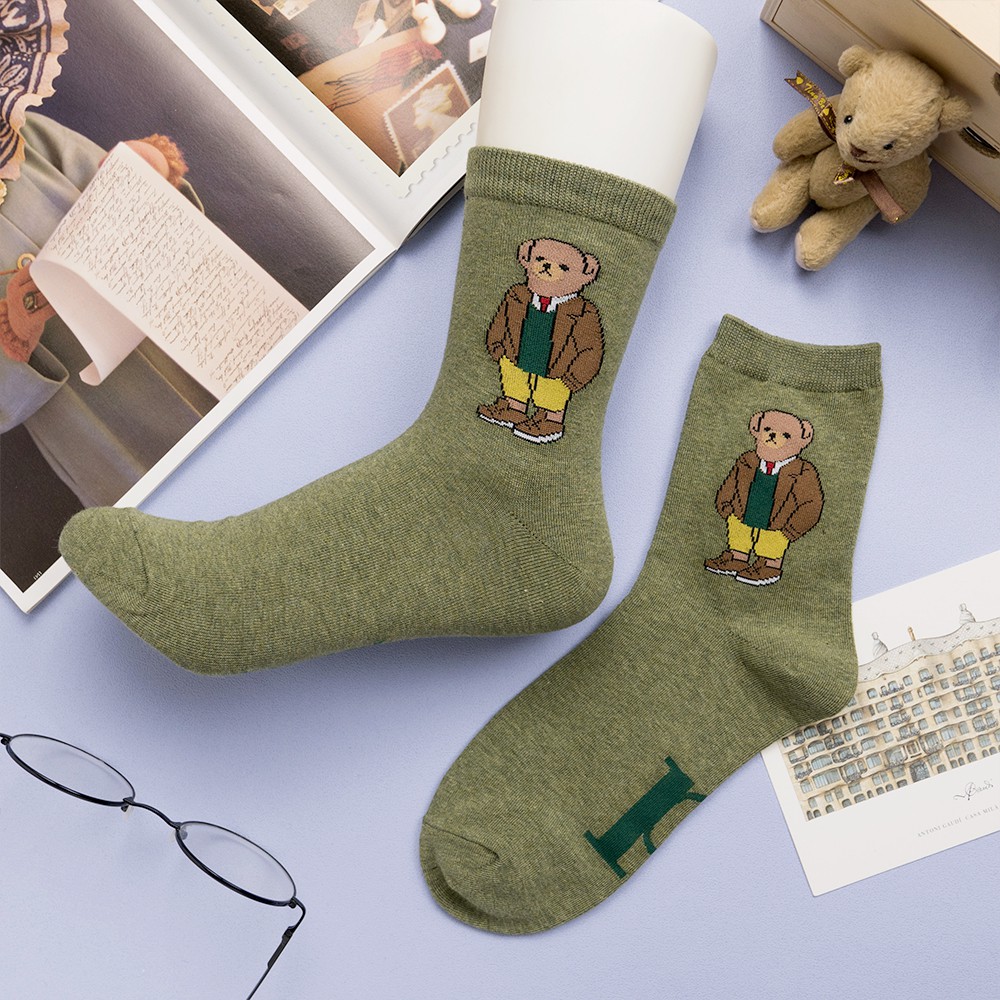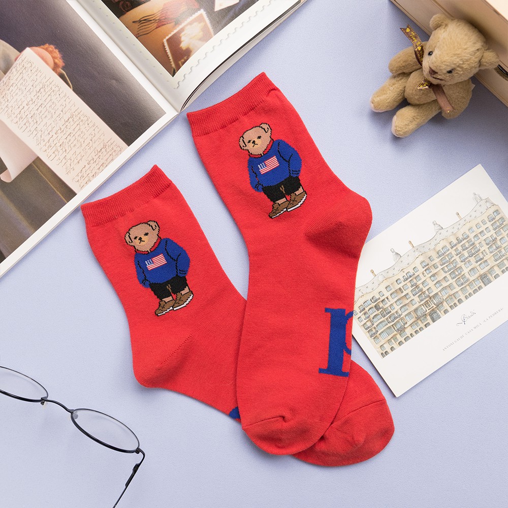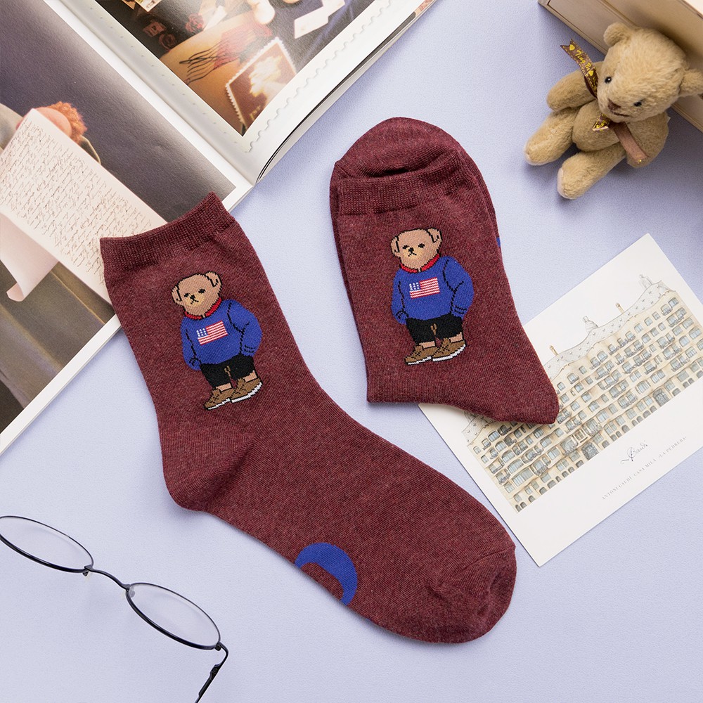 AHUA阿華有事嗎 韓國襪子 全身美國小熊中筒襪 K0723 正韓少女襪 韓妞必備卡通襪 百搭純棉襪 素色襪子