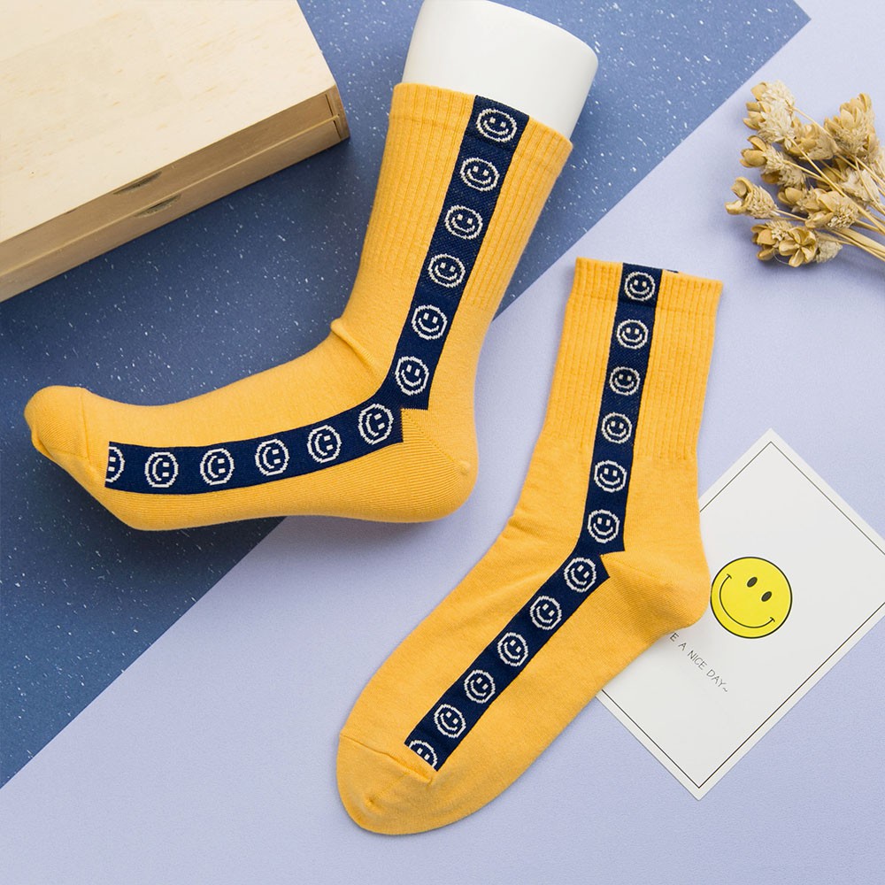 AHUA阿華有事嗎 韓國襪子 側邊直條笑臉中筒襪 K0741 正韓少女襪 韓妞必備長襪 百搭純棉襪 素色襪子【新品優惠】