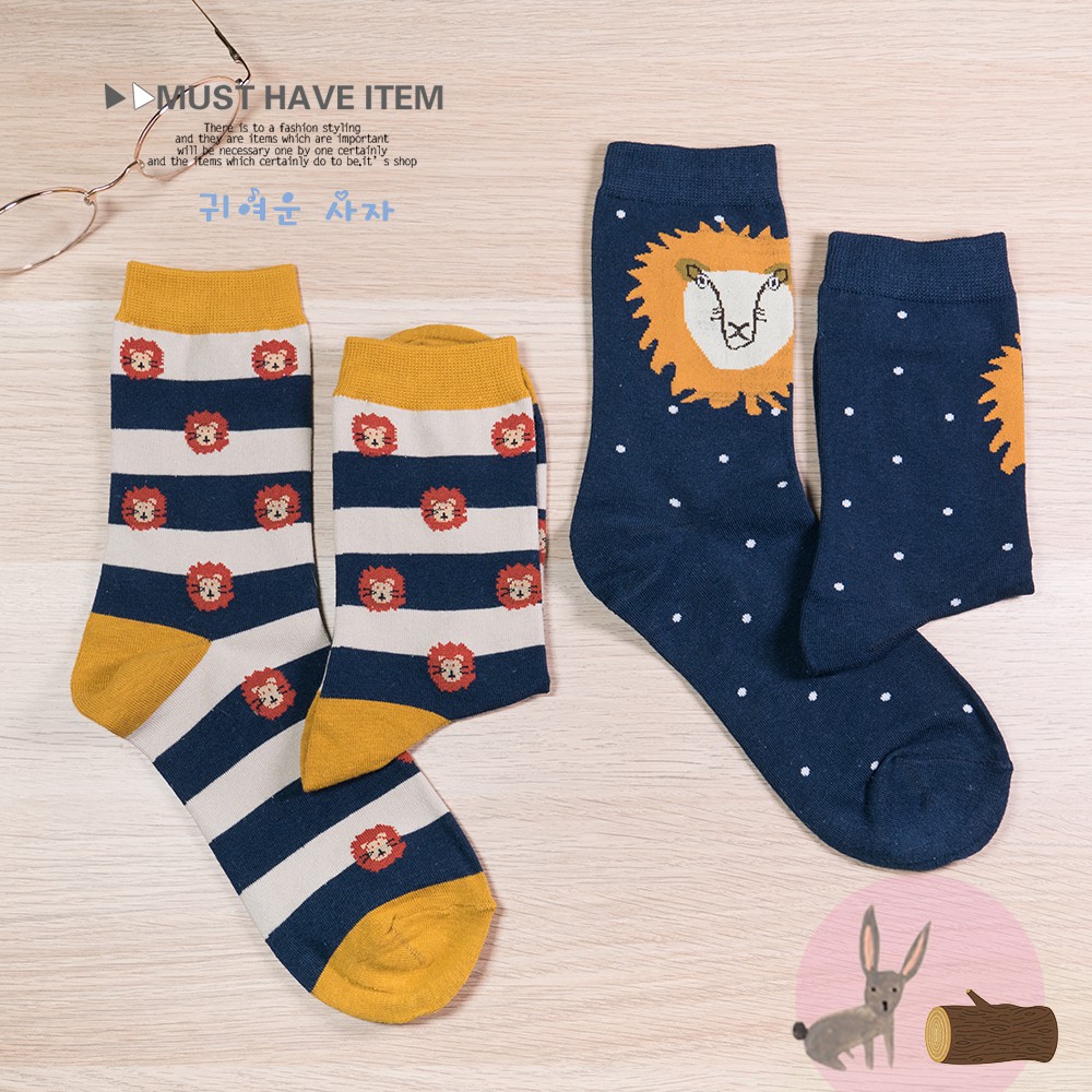 AHUA阿華有事嗎 日系襪子 可愛獅子圖案中筒襪 S0224 好穿好搭配 韓妞必備長襪 姊妹情侶 宅配免運
