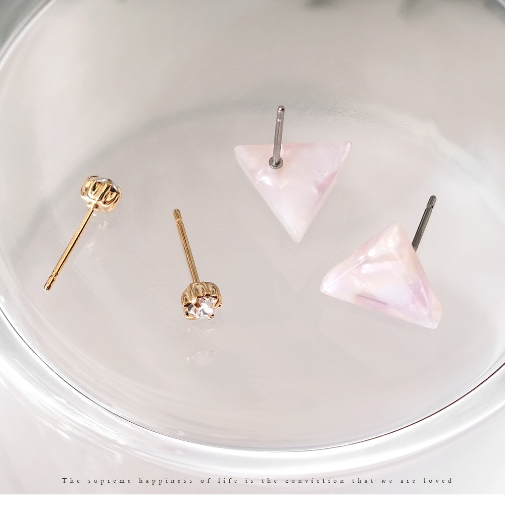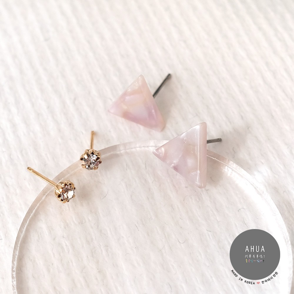 AHUA阿華有事嗎 正韓耳環 三角大理石耳環4入組【A0079】韓國飾品 Ins風 時尚 簡約 多入組 鑲鑽 耳針耳環