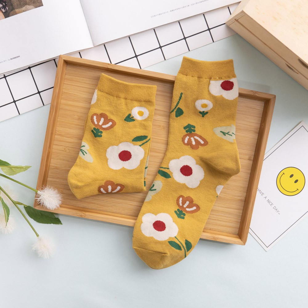阿華有事嗎AUHA 韓國襪子 古著小花樹葉中筒襪 K0876 正韓少女襪 韓妞必備長襪 百搭純棉襪