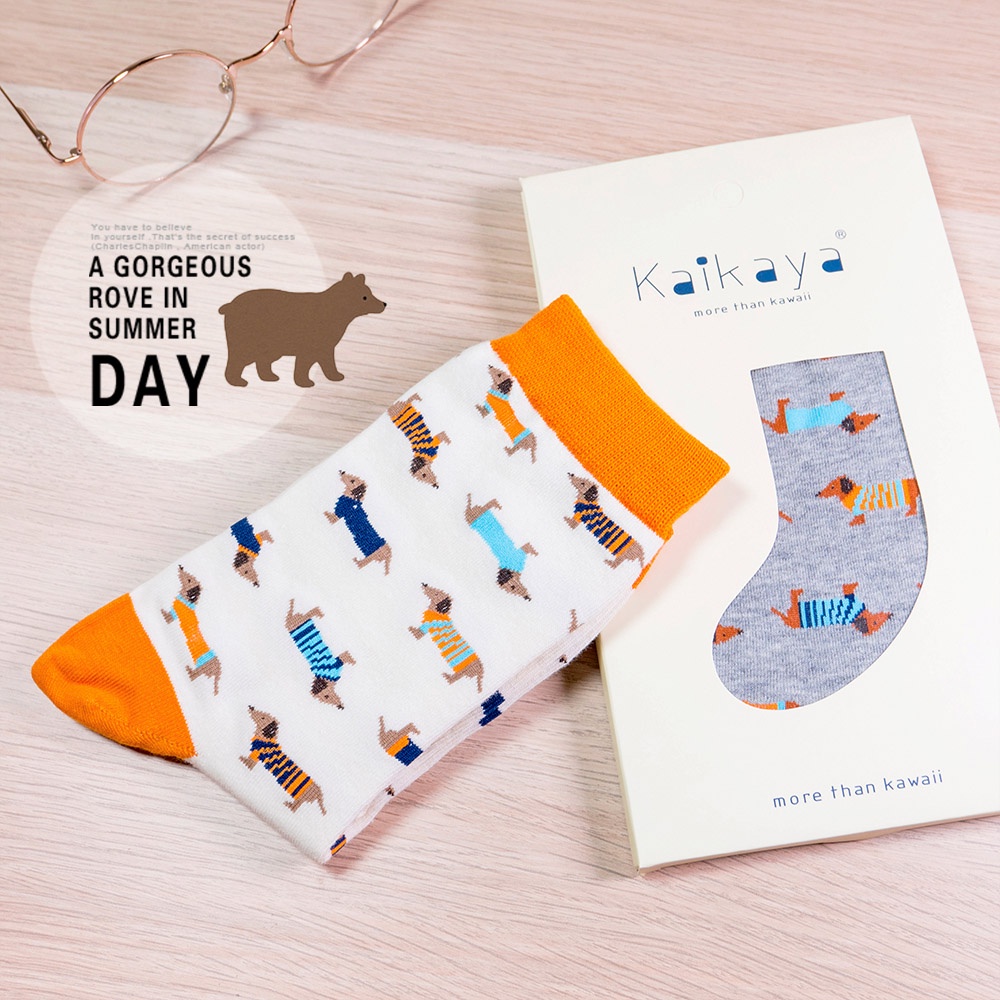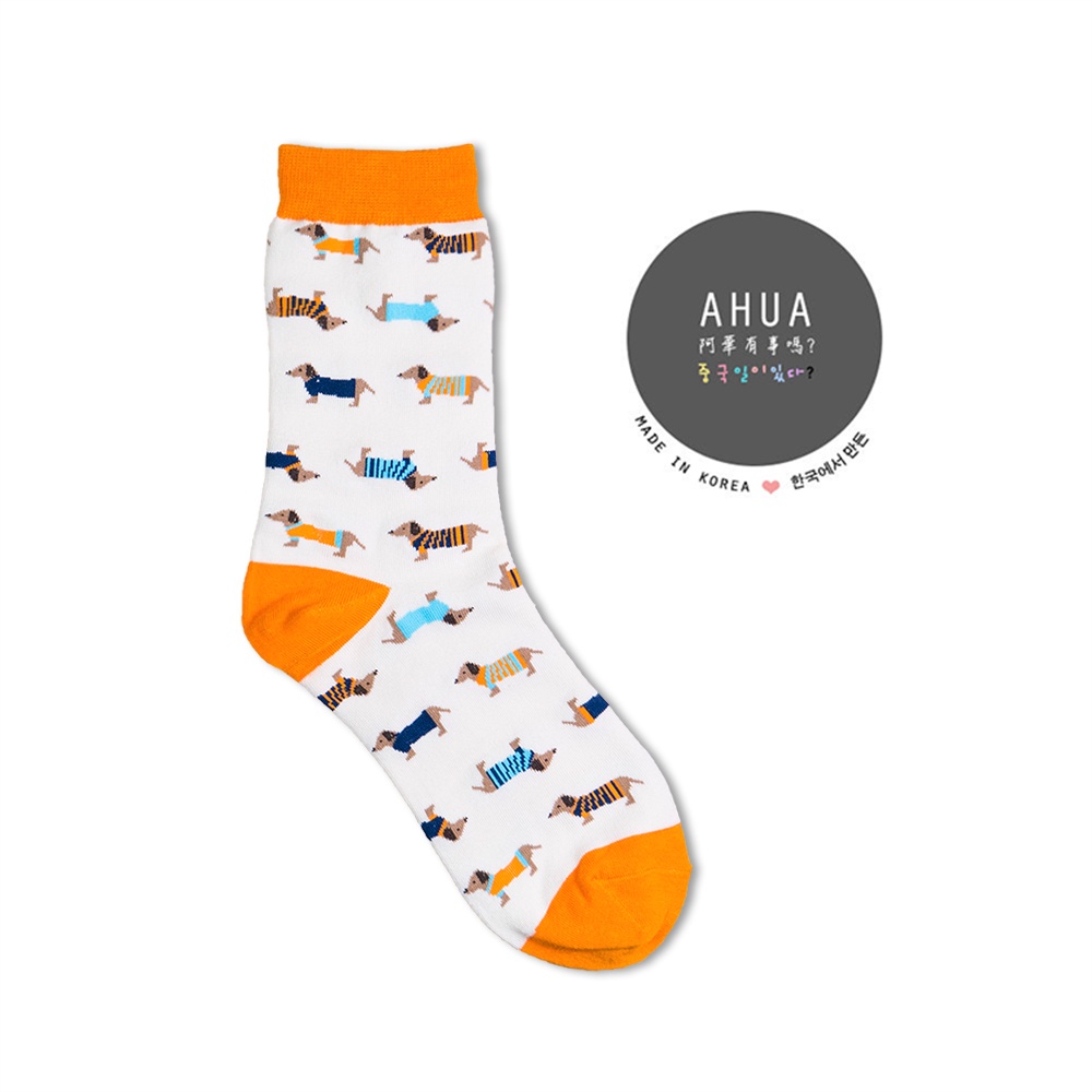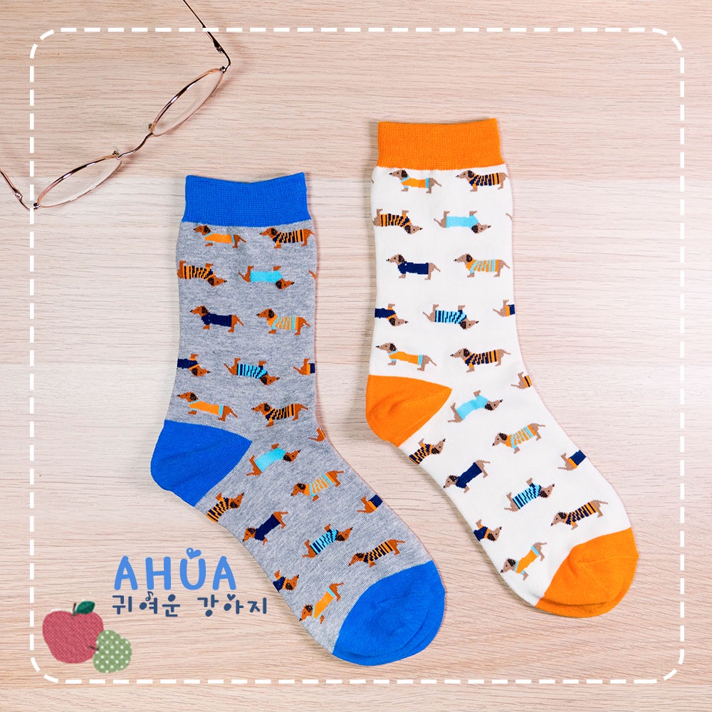 AHUA阿華有事嗎 日系襪子 可愛穿衣臘腸狗圖案中筒襪 S0229 日本風格穿搭 長襪 韓妞必備 姊妹情侶 免運