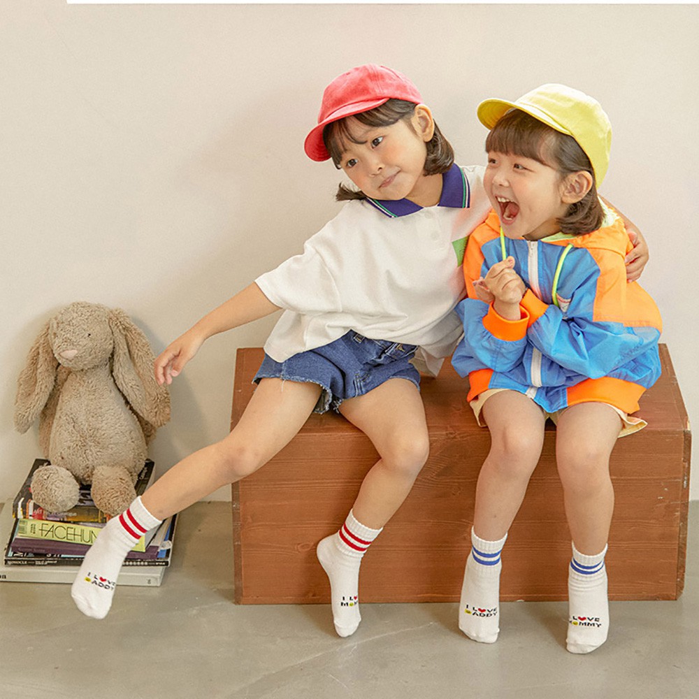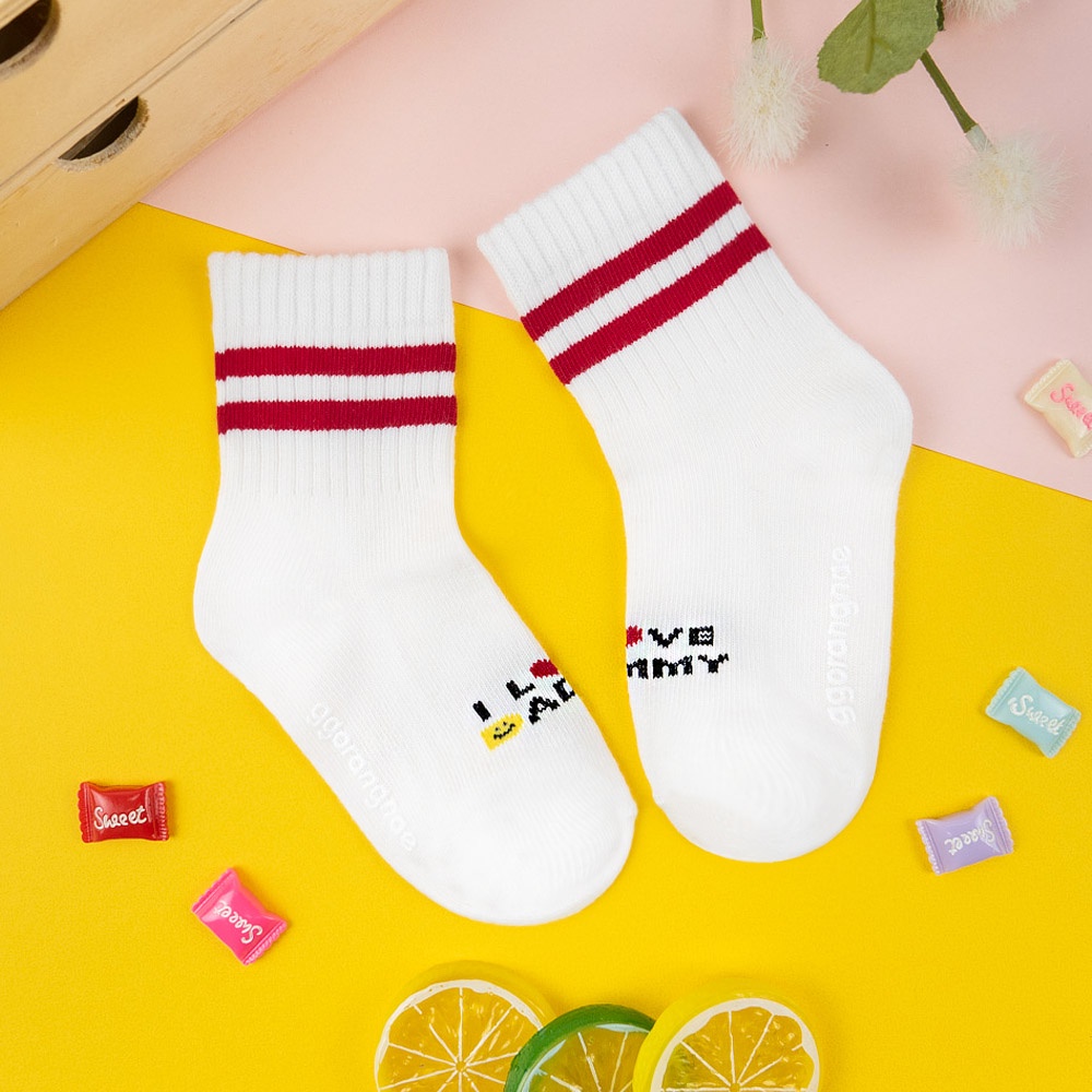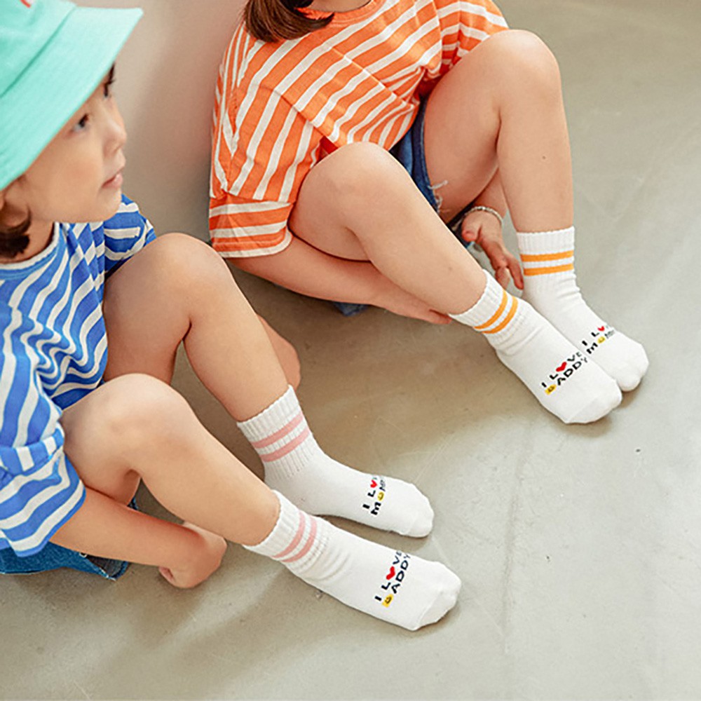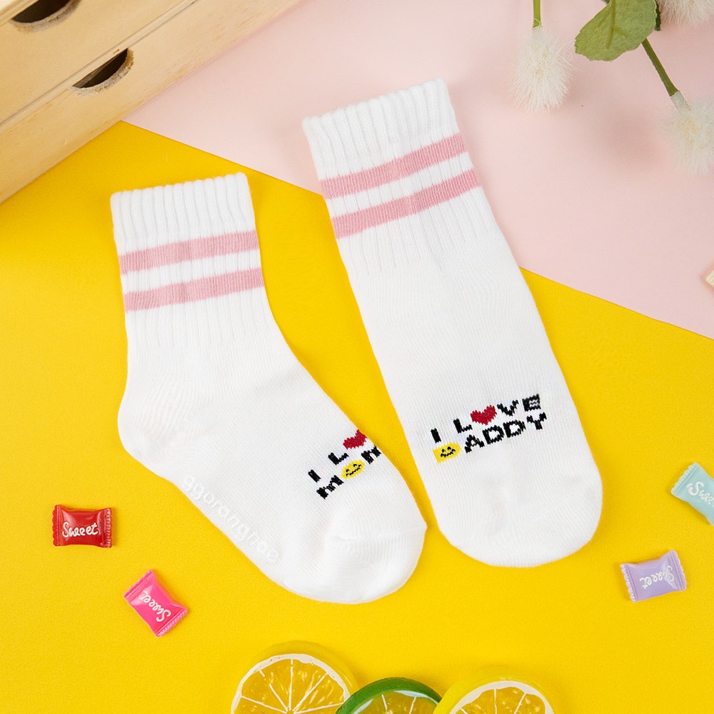 AHUA阿華有事嗎 韓國童襪 I love mommy daddy中筒AB襪 KCD0026 孩童上學必備 百搭純棉襪