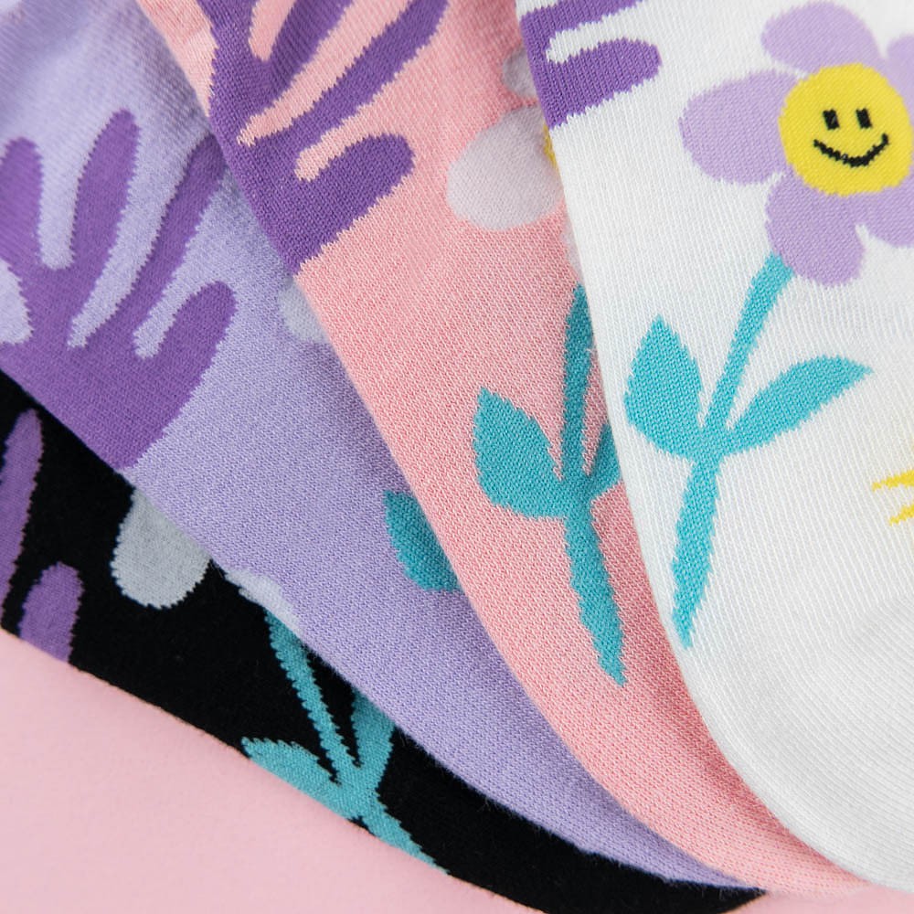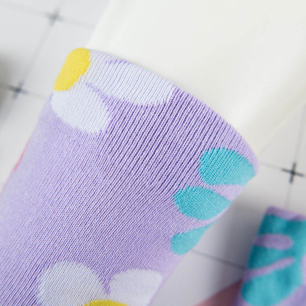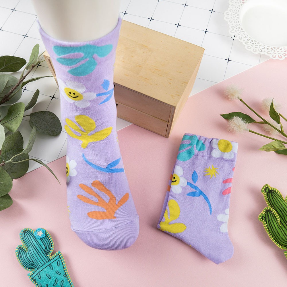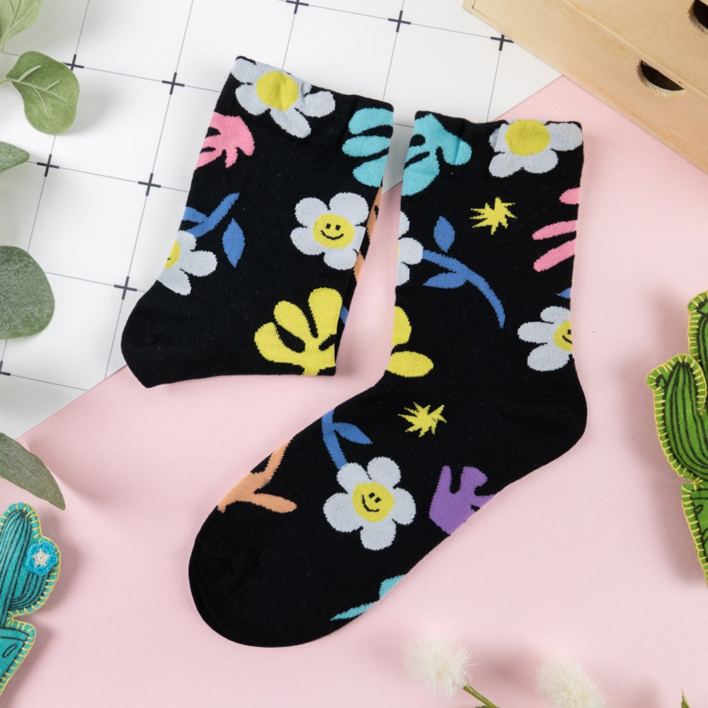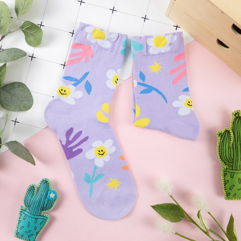 阿華有事嗎AUHA 韓國襪子 滿版繽紛微笑花朵中筒襪 K1089 少女襪 韓妞必備長襪 百搭純棉襪