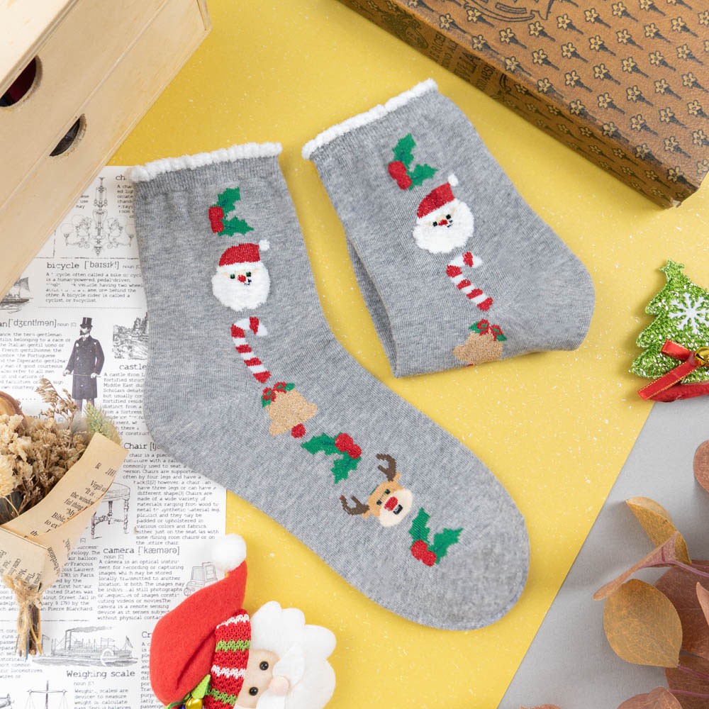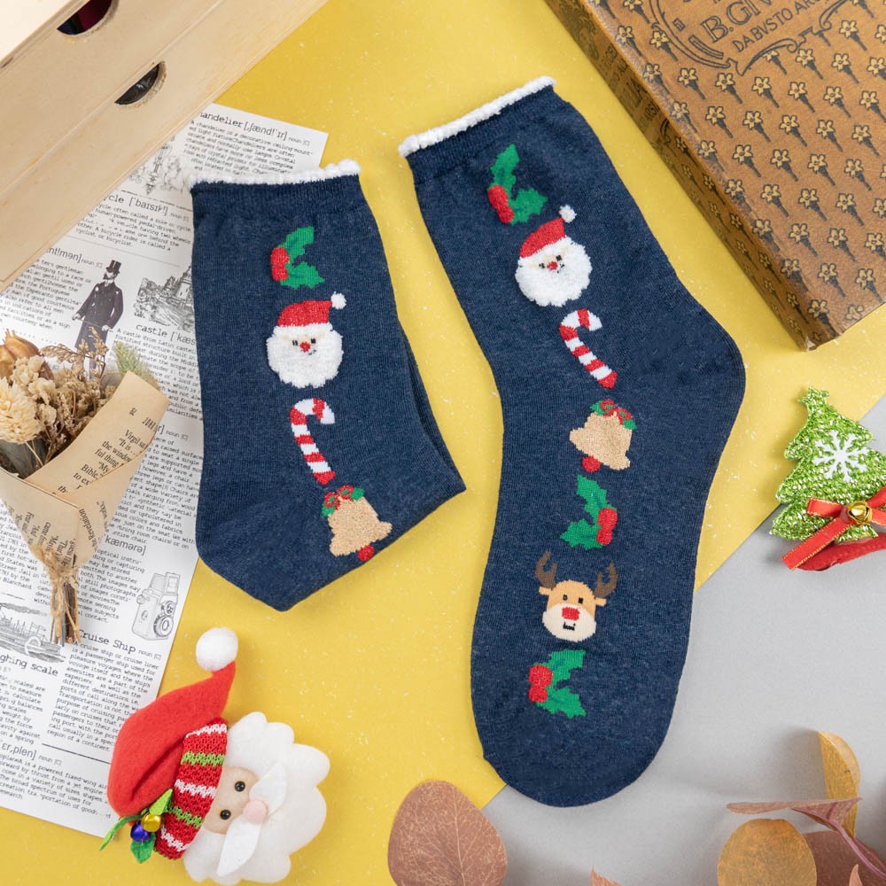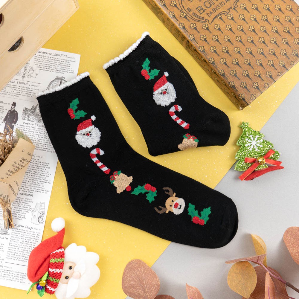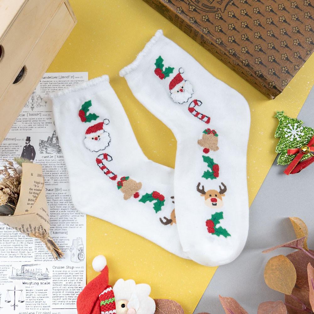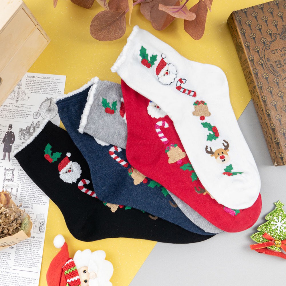 阿華有事嗎AUHA 韓國襪子 聖誕毛毛襪口金蔥中筒襪 K0975 少女襪 韓妞必備長襪 百搭純棉襪