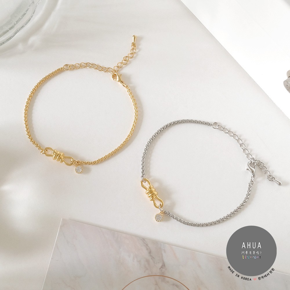 阿華有事嗎 AUHA 韓國飾品 撞色扭結鋯鑽手鍊【A0653】正韓 Ins風 氣質 百搭 簡約 韓妞必備 可調節 手環