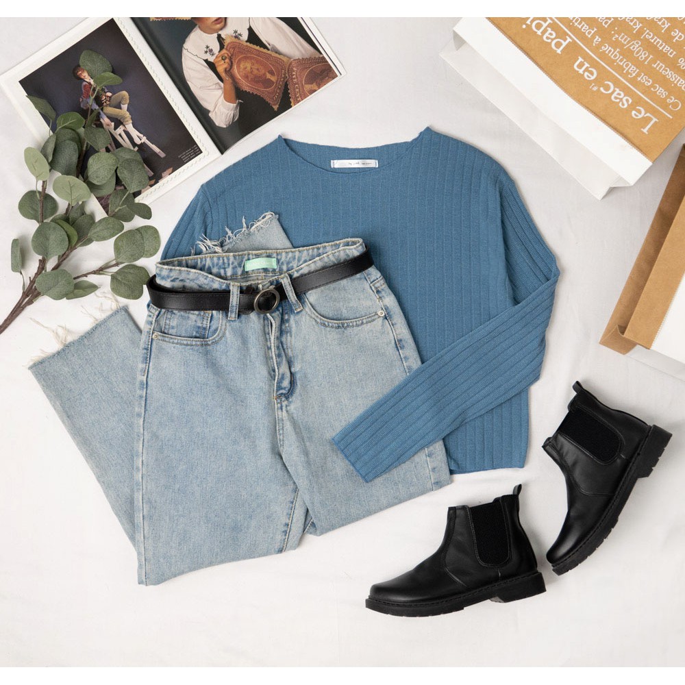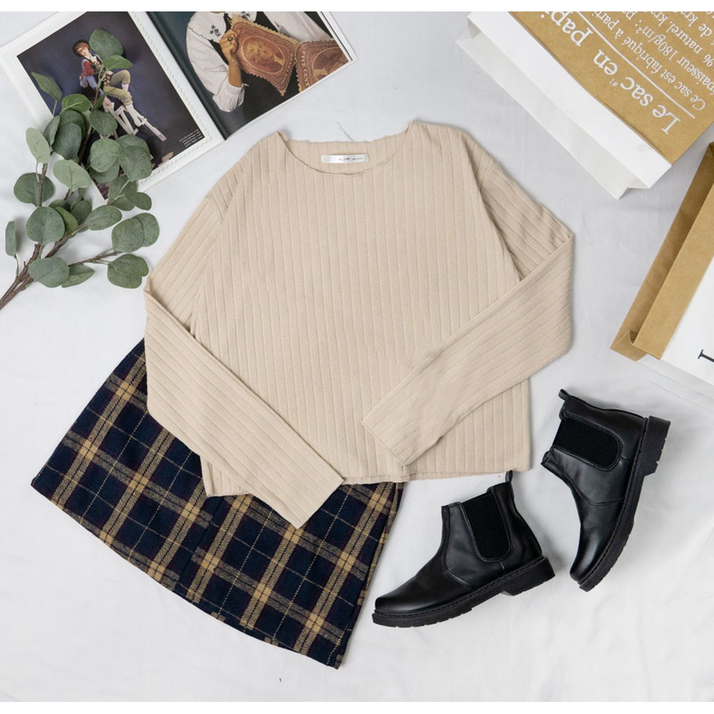 阿華有事嗎AUHA 韓國女裝 寬領素色針織長袖上衣 C1383 正韓直送 韓妞必備 百搭顯瘦基本款