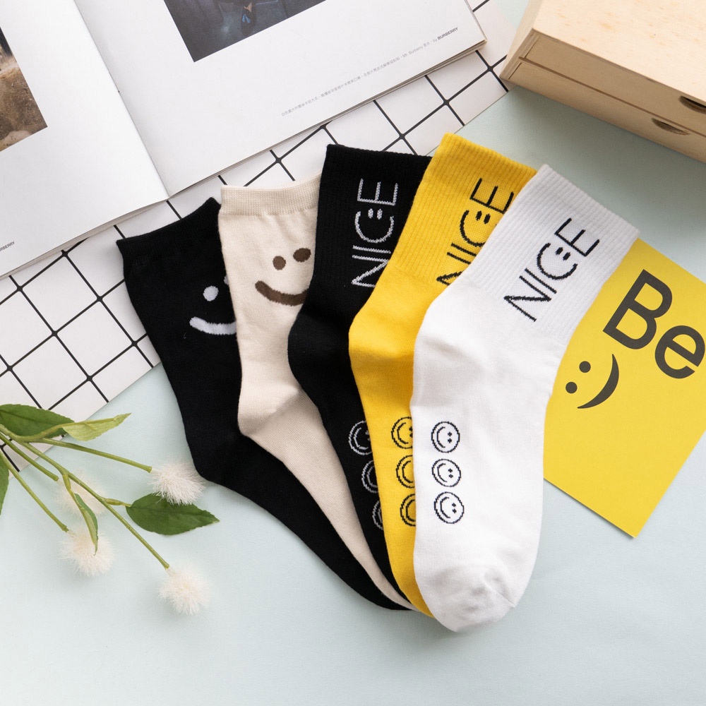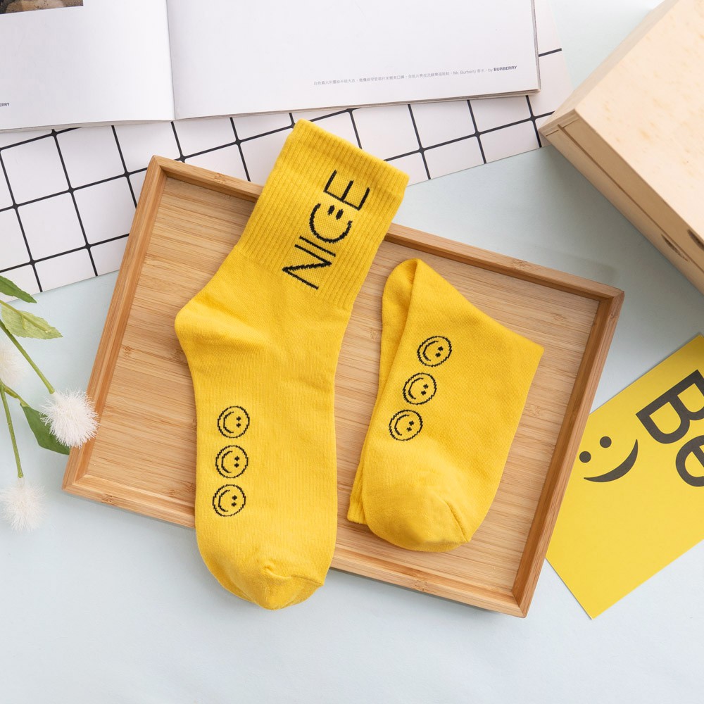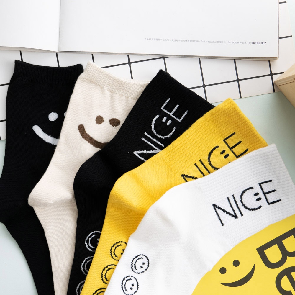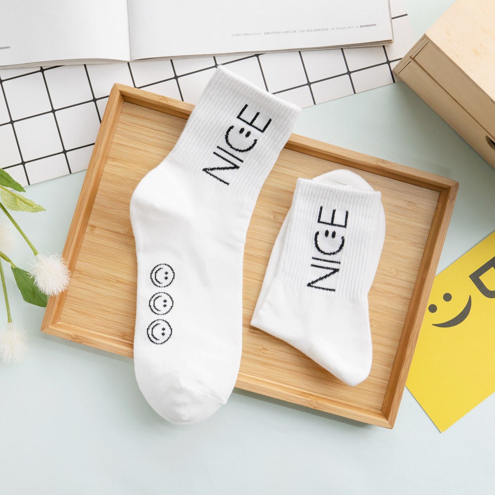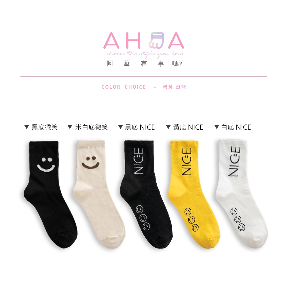 阿華有事嗎AUHA 韓國襪子 素色NICE微笑中筒襪 K0880 正韓少女襪 韓妞必備長襪 百搭純棉襪