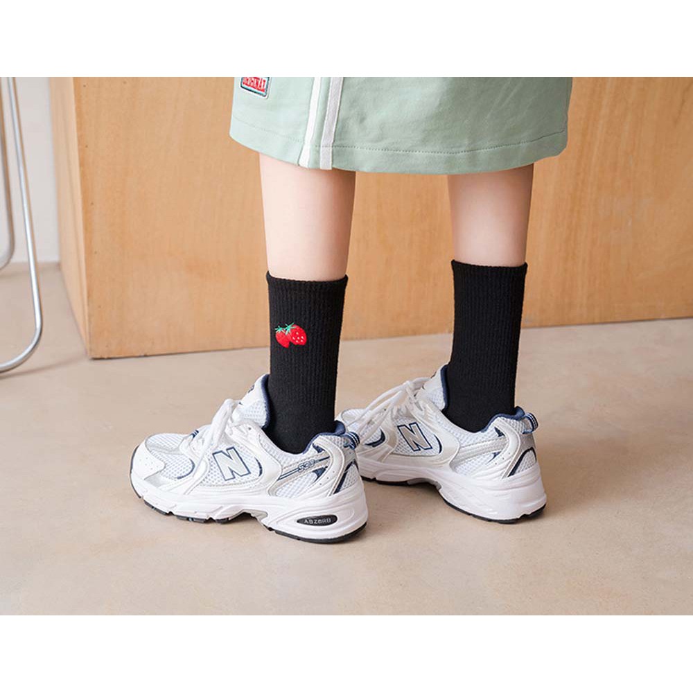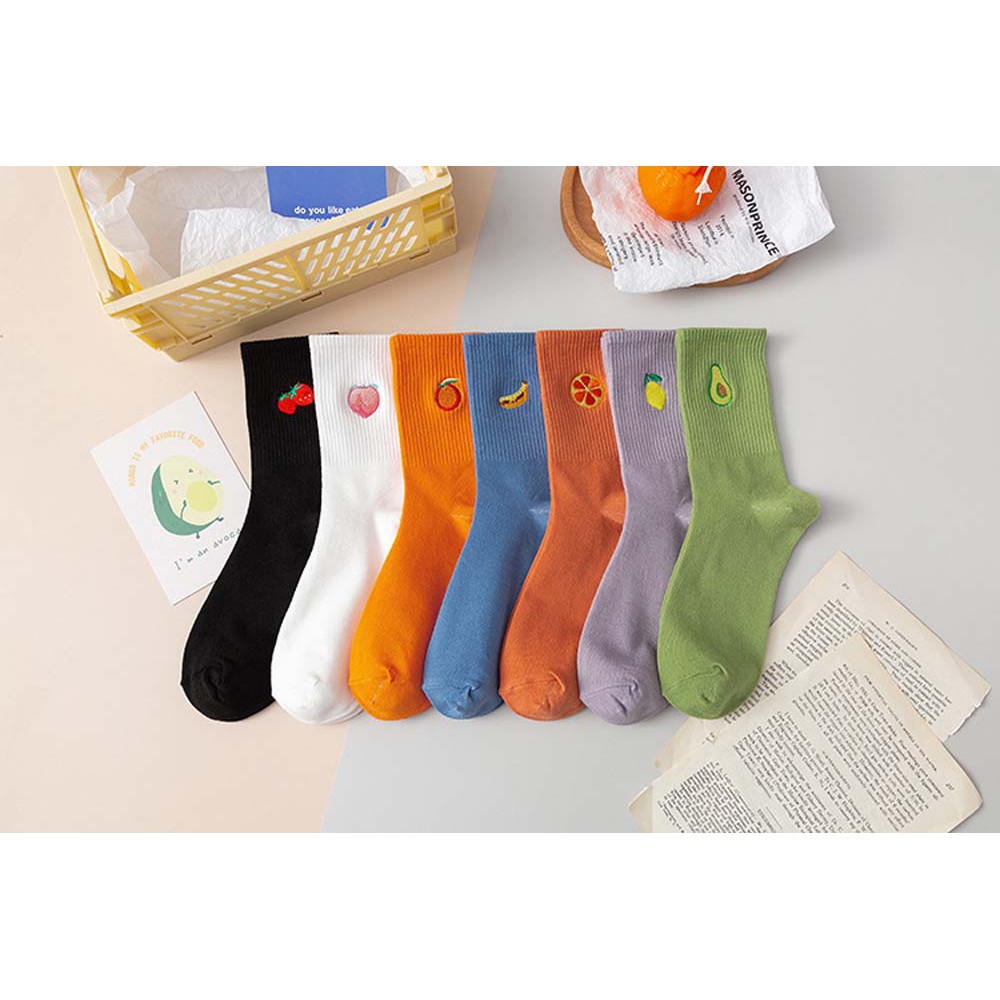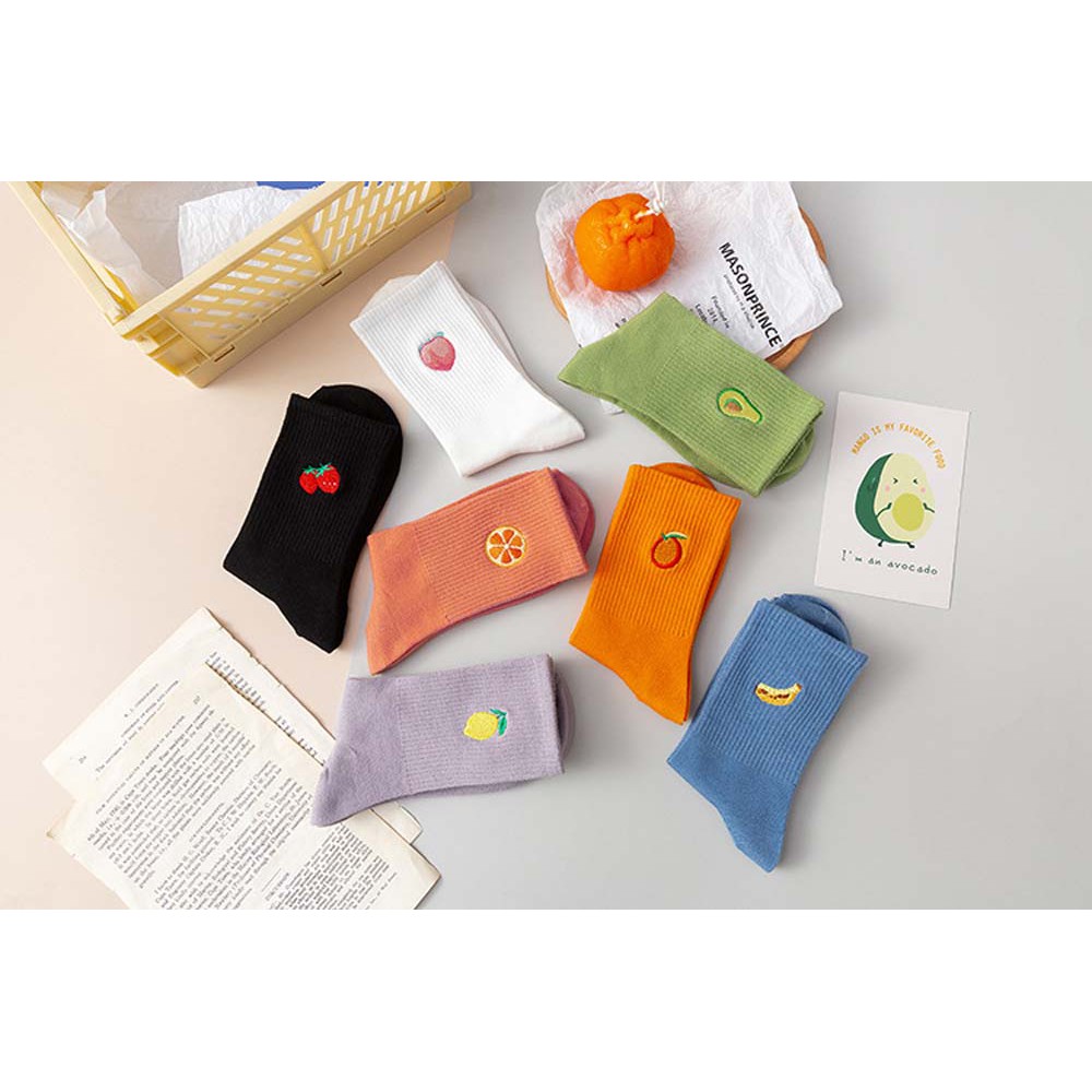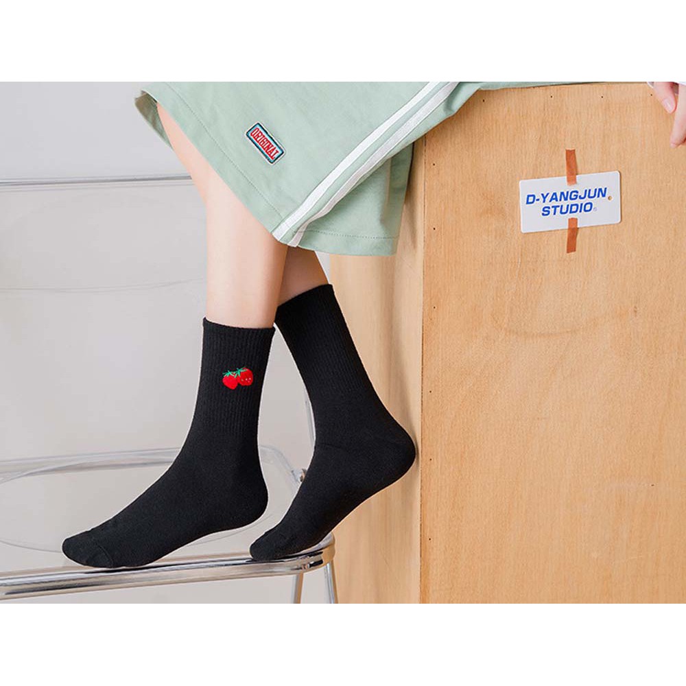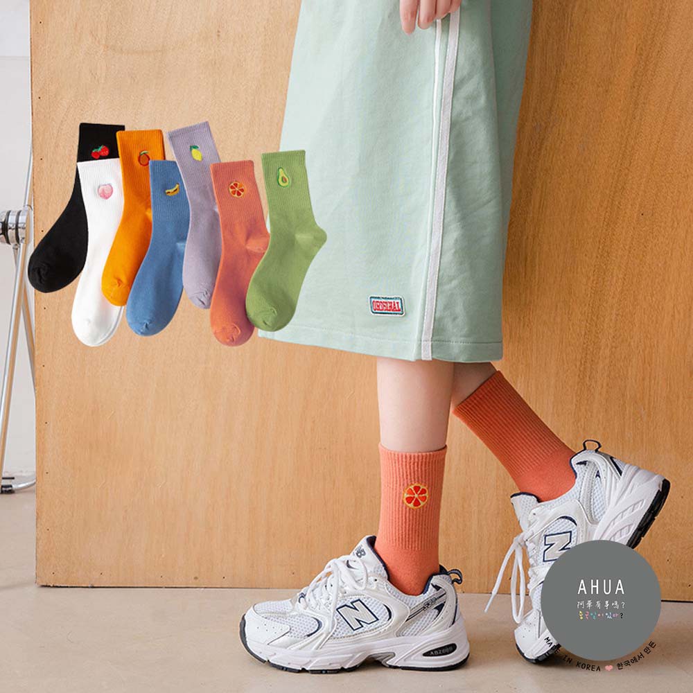 阿華有事嗎AHUA 日系襪子 刺繡水果系列中筒襪 S0360 少女襪 韓妞必備中筒襪 百搭純棉襪