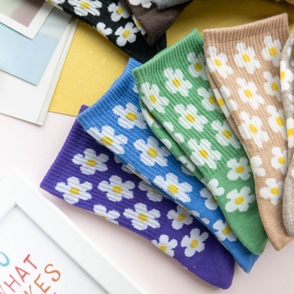 阿華有事嗎AUHA 韓國襪子 滿版白色小花中筒襪 K0930 少女襪 韓妞必備長襪 百搭純棉襪
