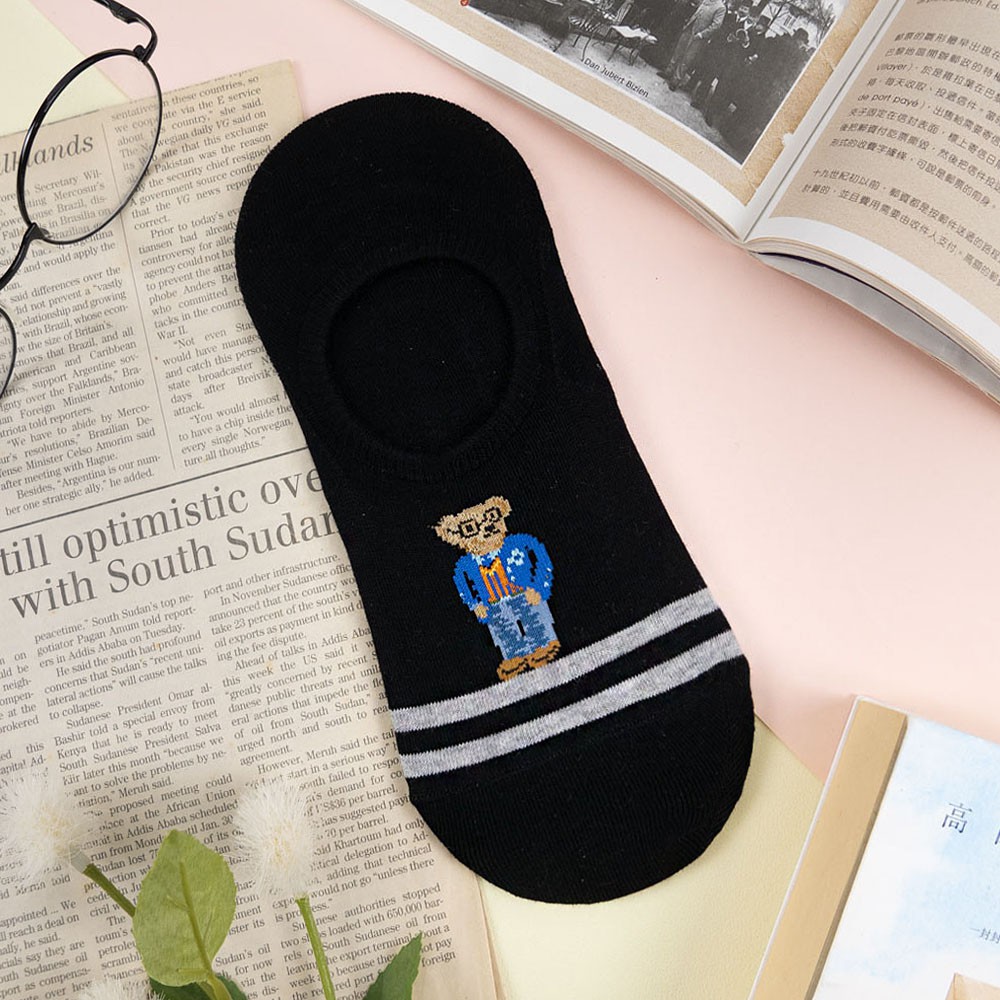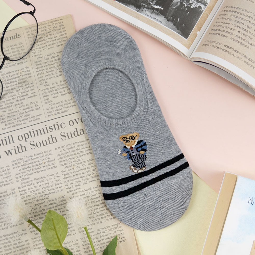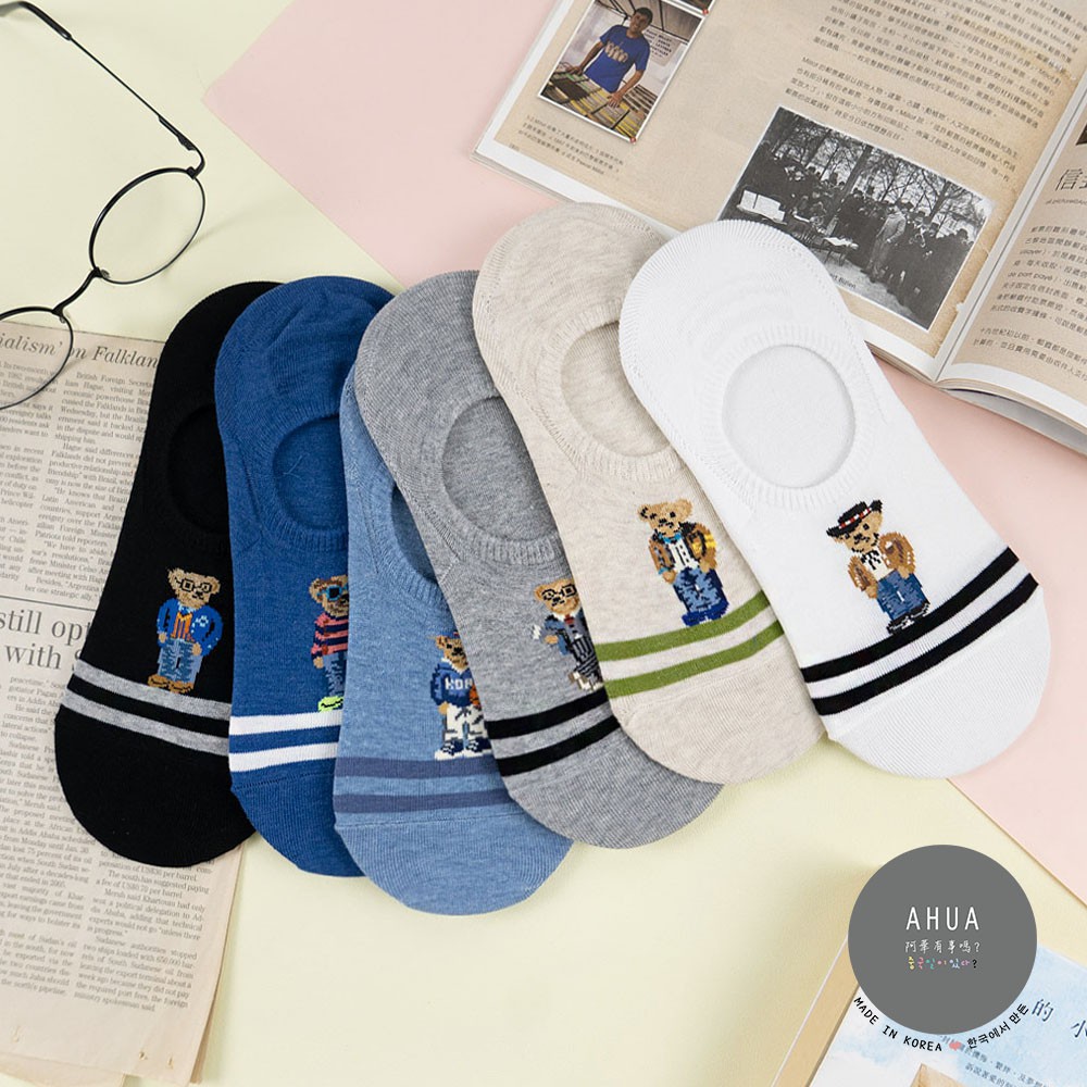 阿華有事嗎AUHA 韓國襪子 穿衣泰迪熊熊雙條纹男隱形襪 男襪【K1180】型男必備 百搭純棉襪