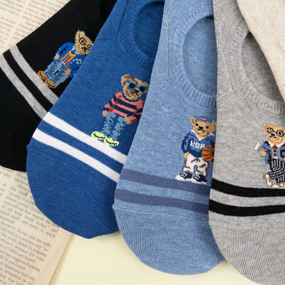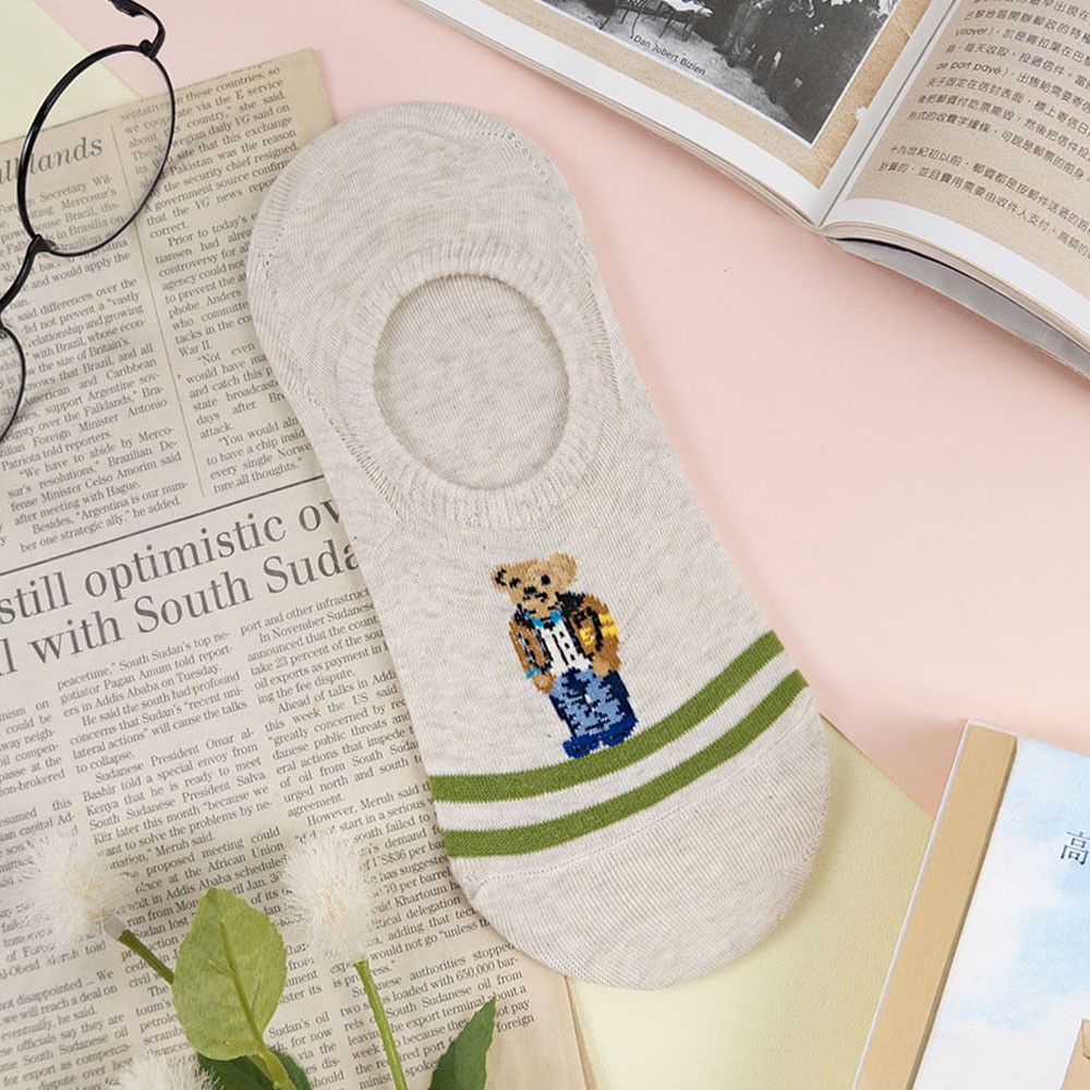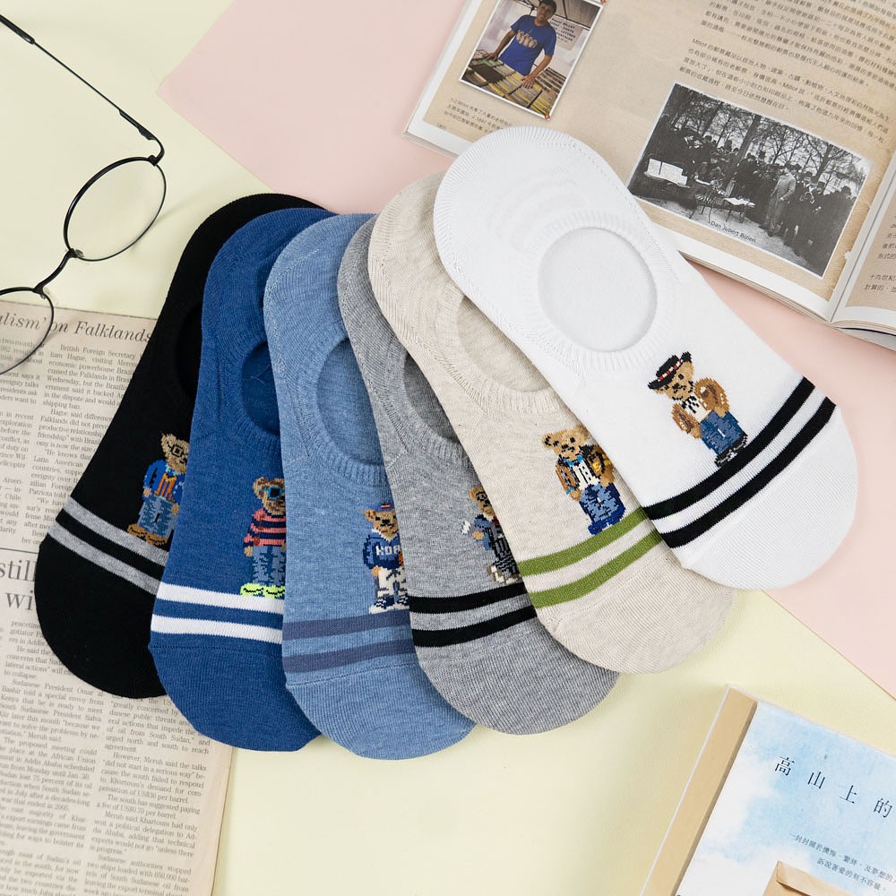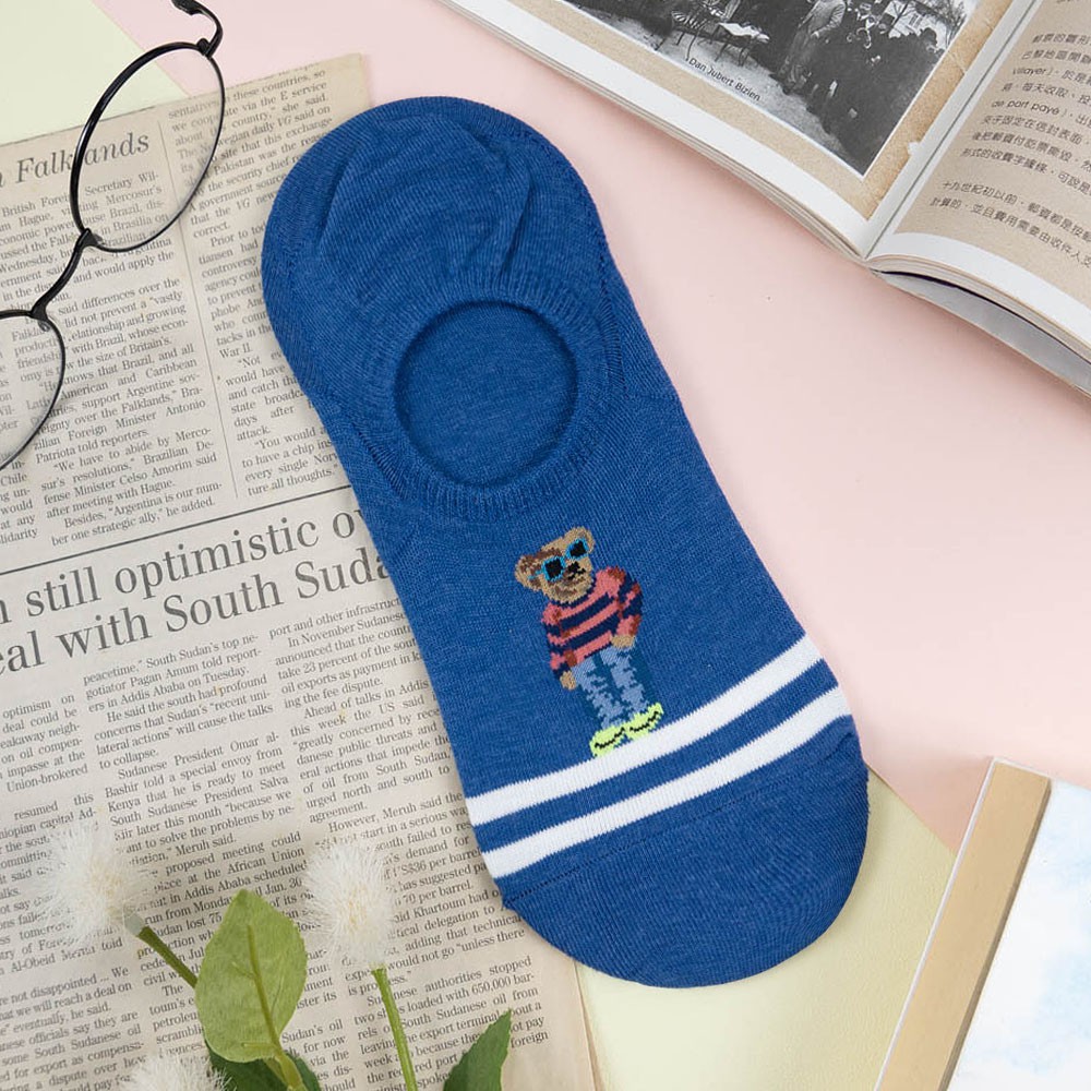 阿華有事嗎AUHA 韓國襪子 穿衣泰迪熊熊雙條纹男隱形襪 男襪【K1180】型男必備 百搭純棉襪