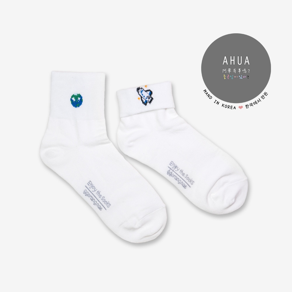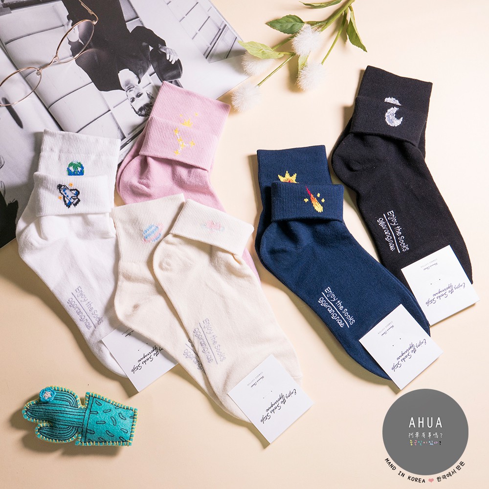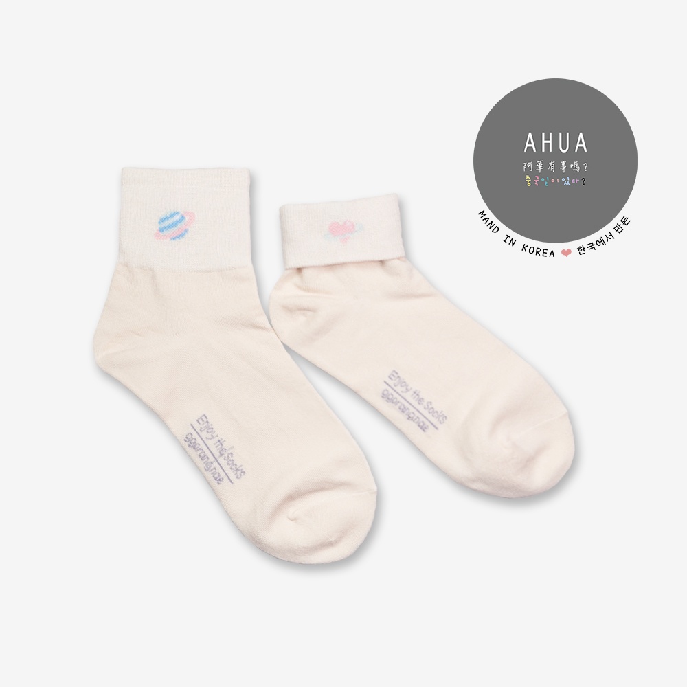 AHUA阿華有事嗎 韓國襪子 卡通行星圖案反摺中筒襪 AB襪 K0205 正韓少女襪 韓妞必備長襪 韓系百搭