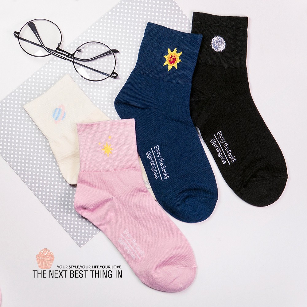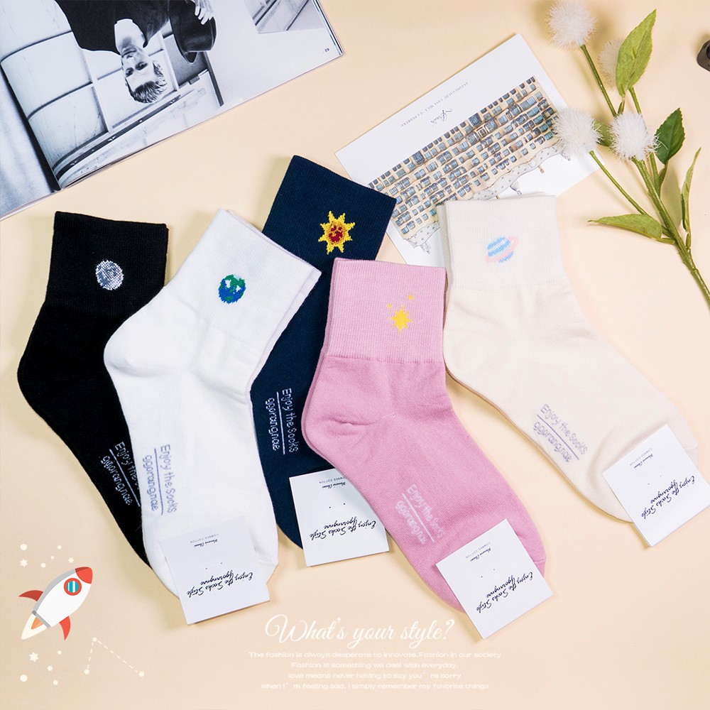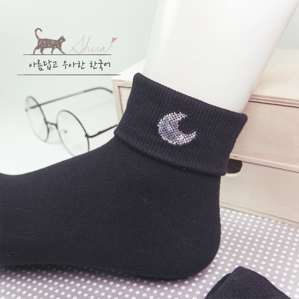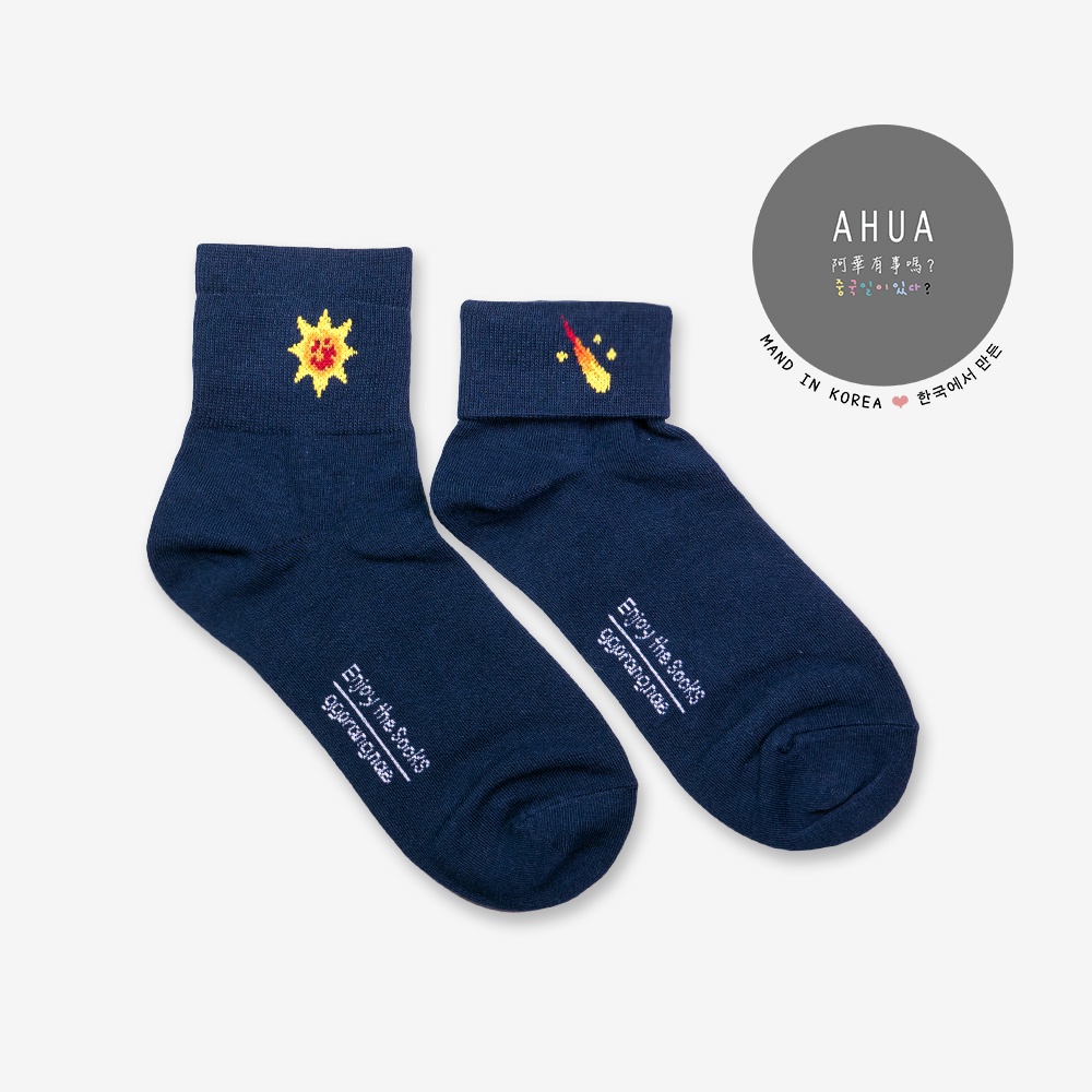 AHUA阿華有事嗎 韓國襪子 卡通行星圖案反摺中筒襪 AB襪 K0205 正韓少女襪 韓妞必備長襪 韓系百搭