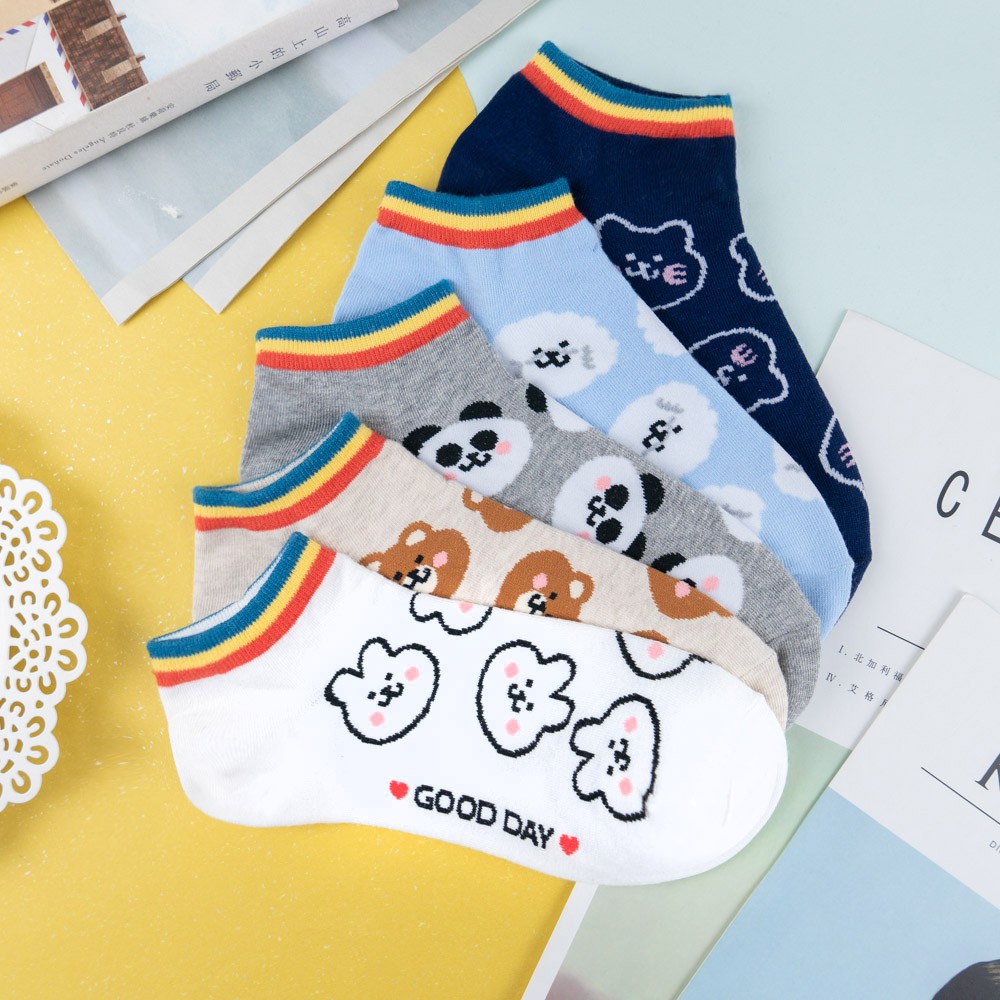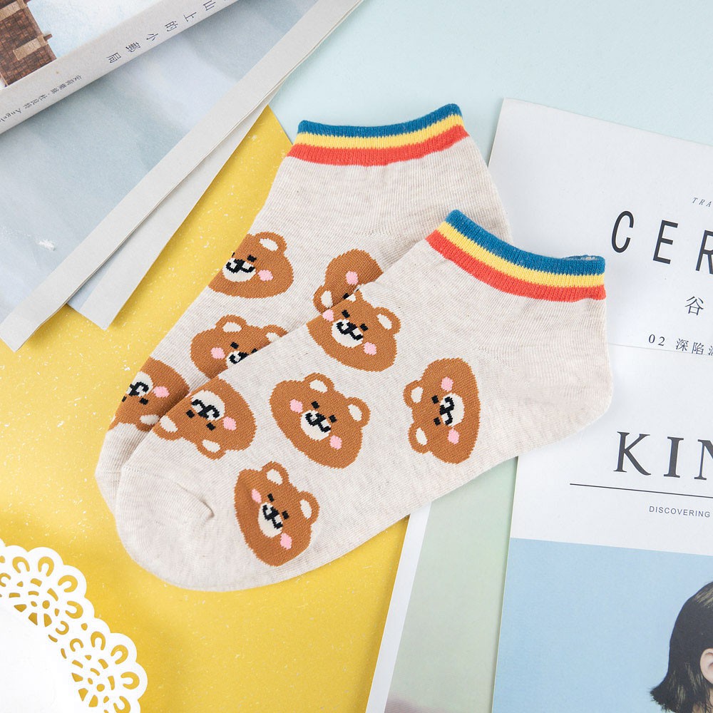 阿華有事嗎AUHA 韓國襪子 彩色襪口滿版動物中短襪【K1108】 少女襪 韓妞必備長襪 百搭純棉襪