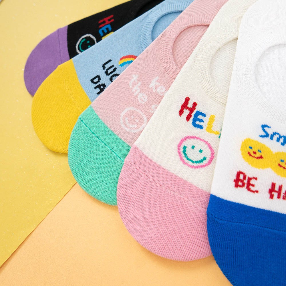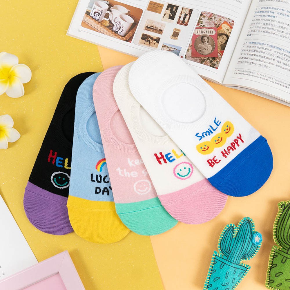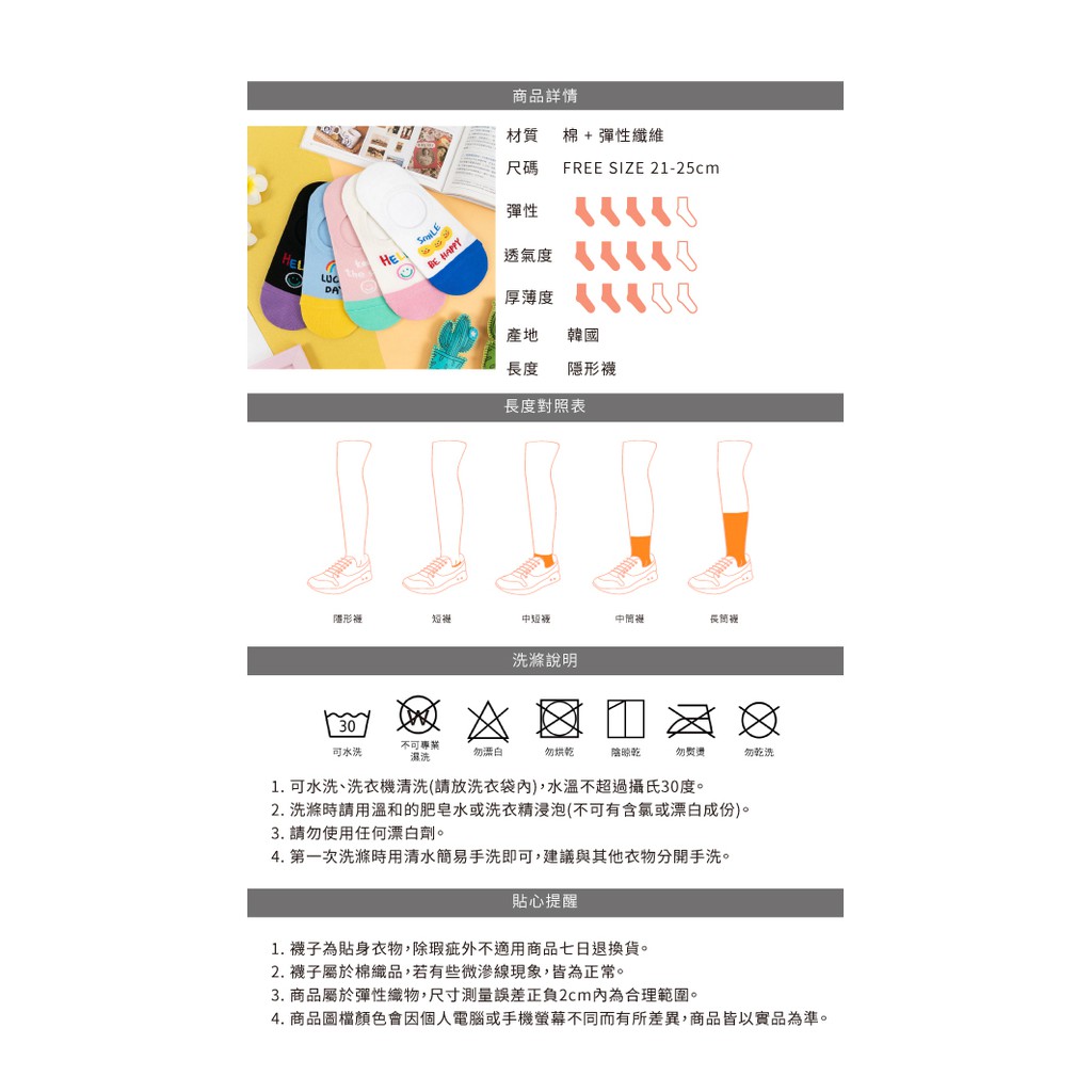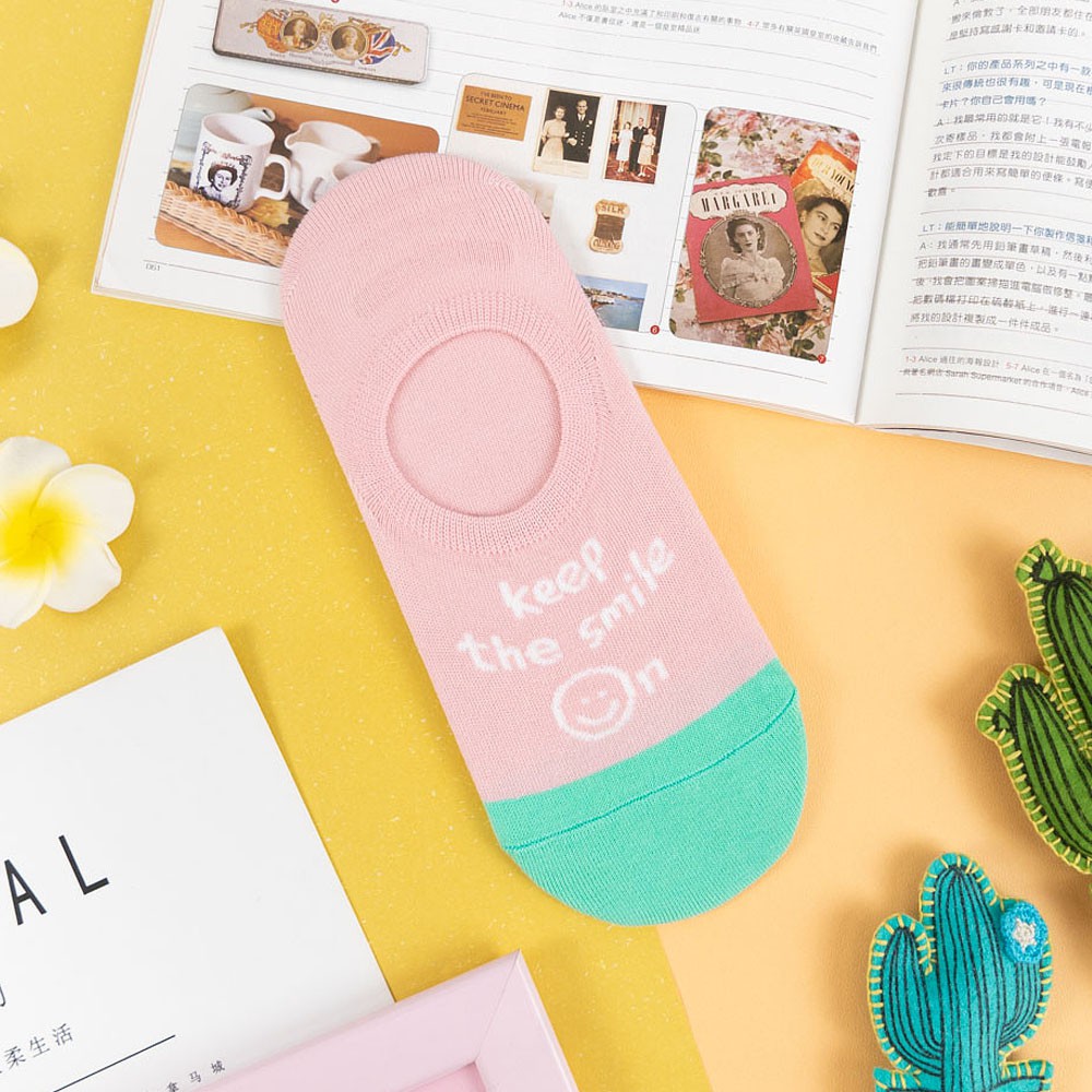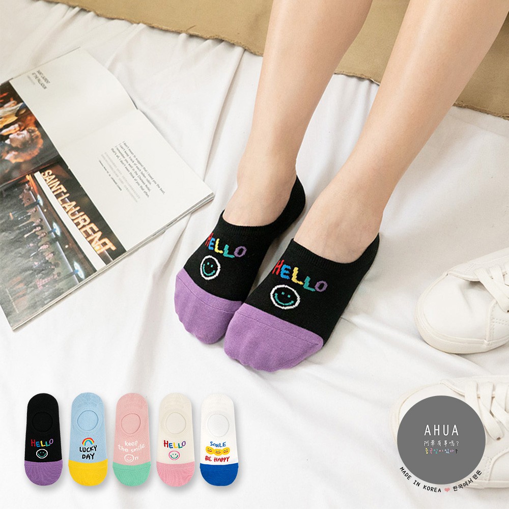 阿華有事嗎AUHA 韓國襪子 彩色微笑英文隱形襪 【K1146】 少女襪 韓妞必備長襪 百搭純棉襪