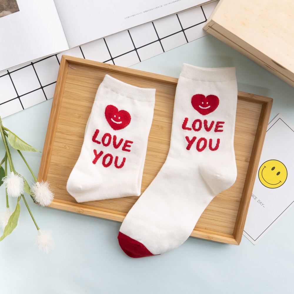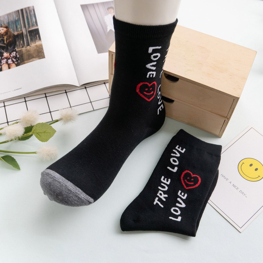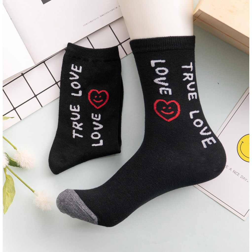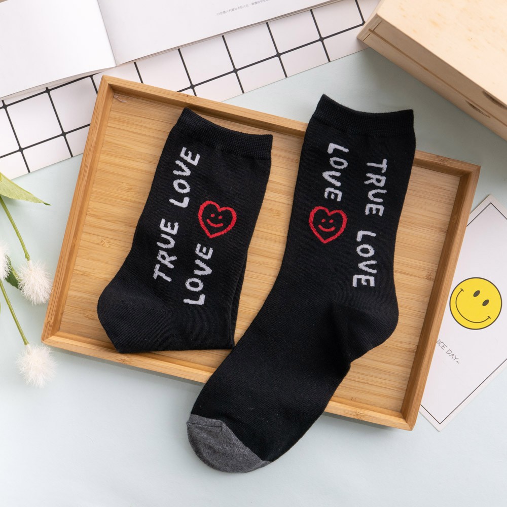 阿華有事嗎AUHA 韓國襪子 簡約微笑英文中筒襪 K0877 正韓少女襪 韓妞必備長襪 百搭純棉襪