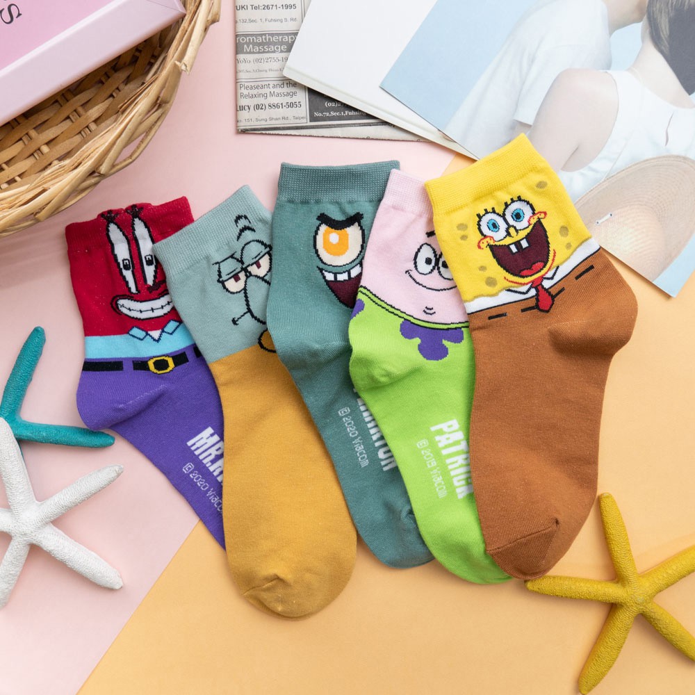 阿華有事嗎AUHA 韓國襪子 全版海綿寶寶中筒襪 K0912 少女襪 韓妞必備長襪 百搭純棉襪