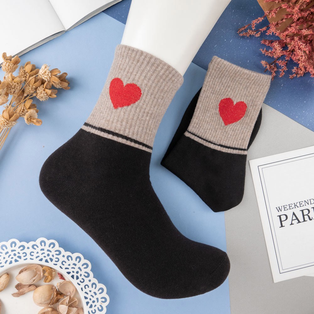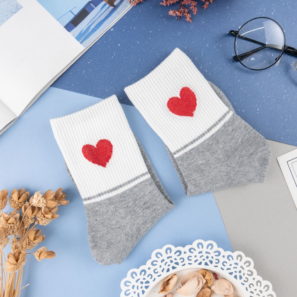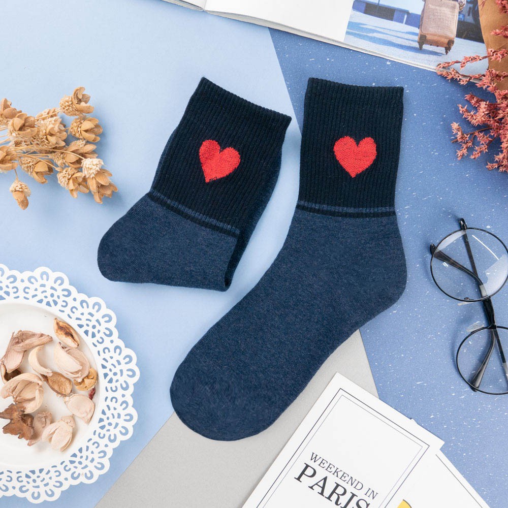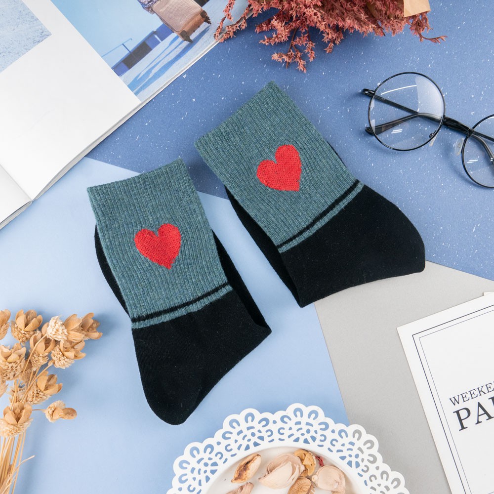 阿華有事嗎AUHA 韓國襪子 拼色愛心中筒襪 K0955 少女襪 韓妞必備長襪 百搭純棉襪