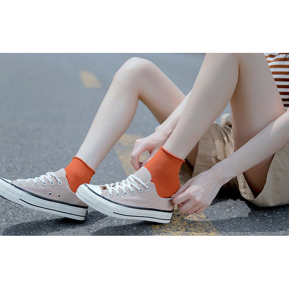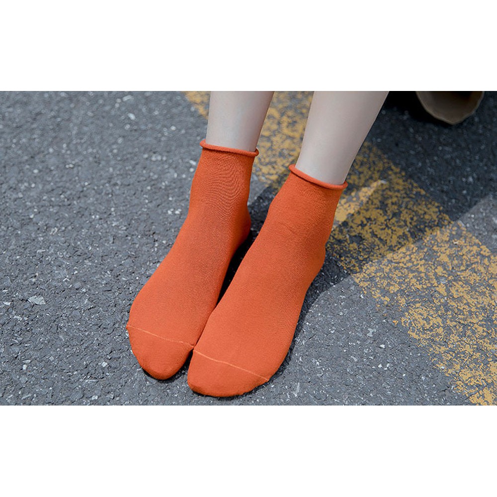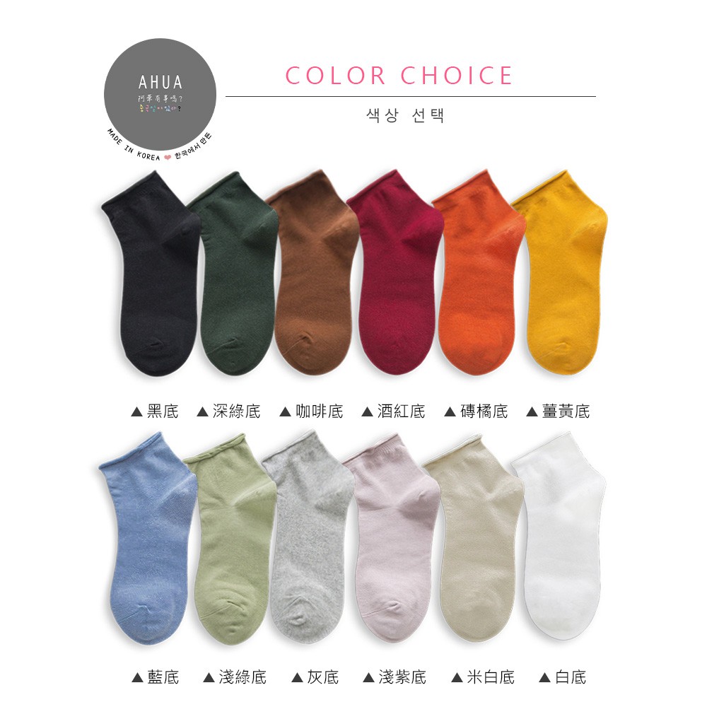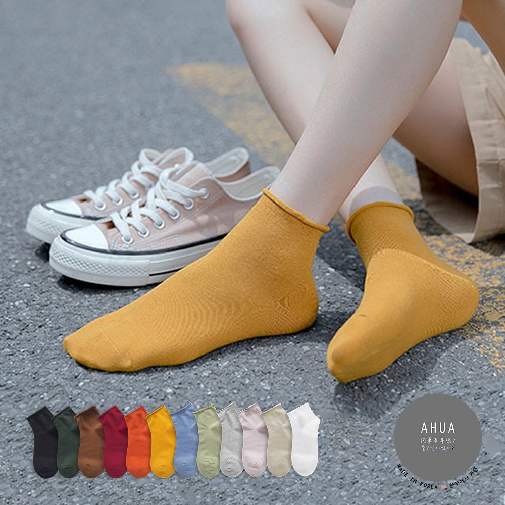 阿華有事嗎AHUA 日系襪子 無痕捲邊素色中筒襪 S0369 少女襪 韓妞必備長襪 百搭純棉襪