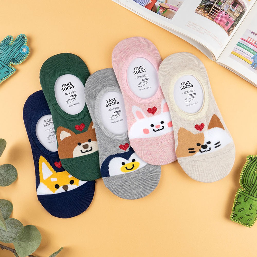 阿華有事嗎AUHA 韓國襪子 動物半臉金蔥愛心隱形襪 K1064 少女襪 韓妞必備長襪 百搭純棉襪
