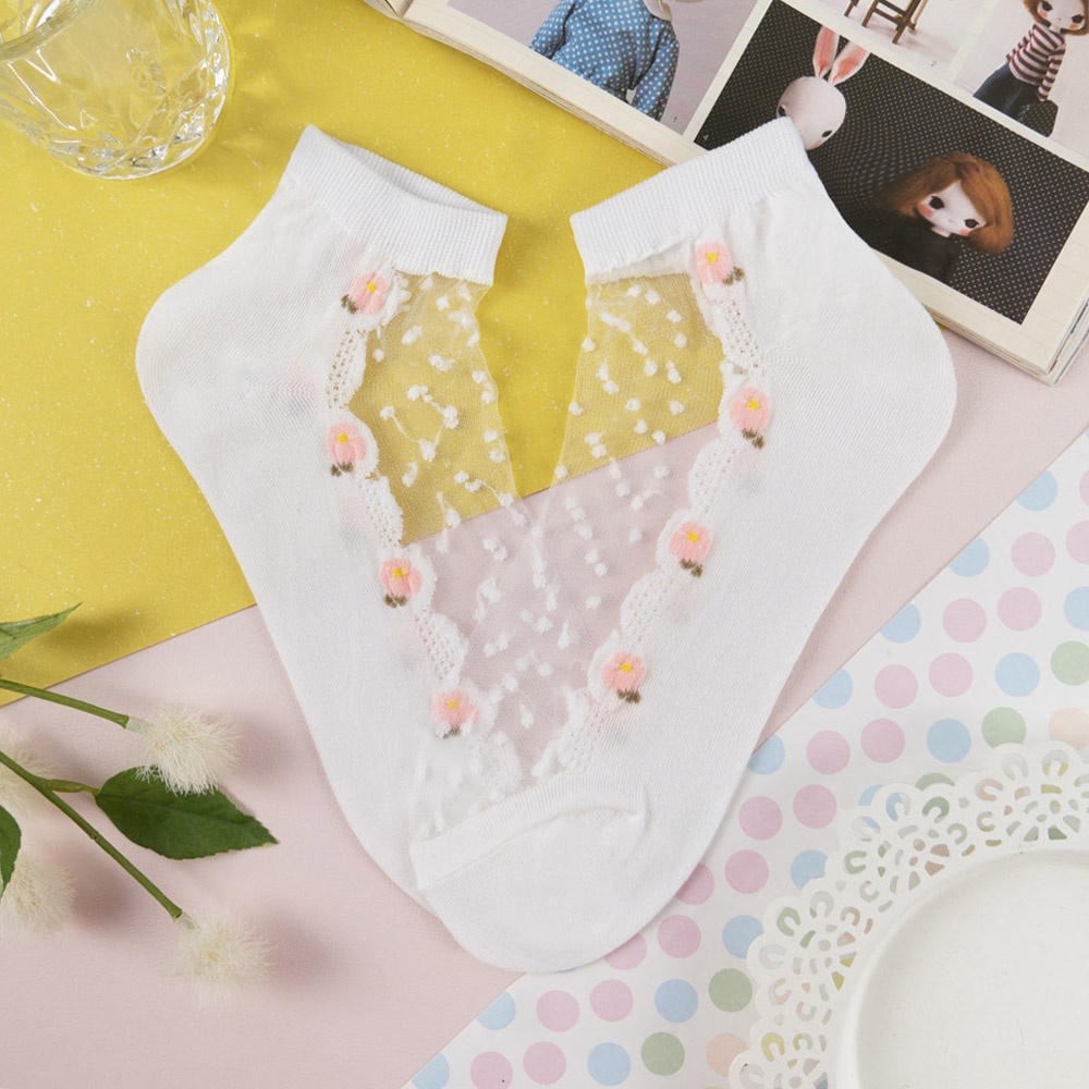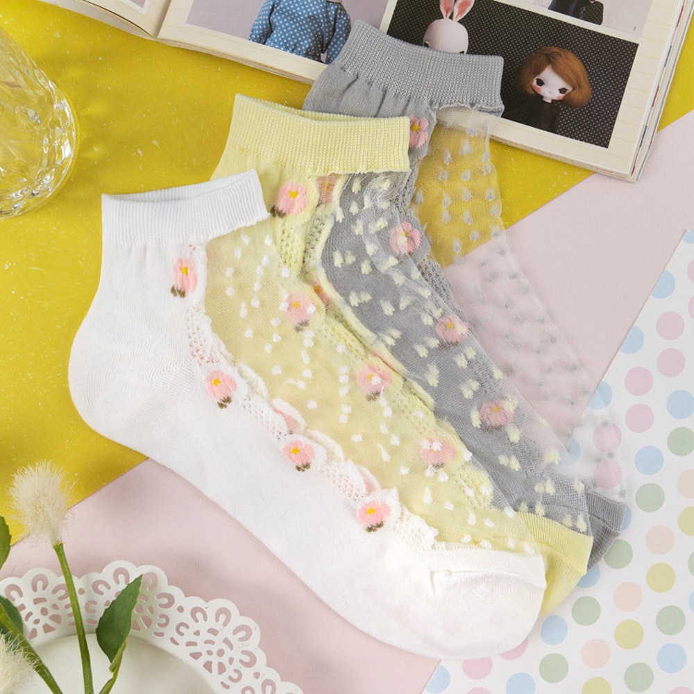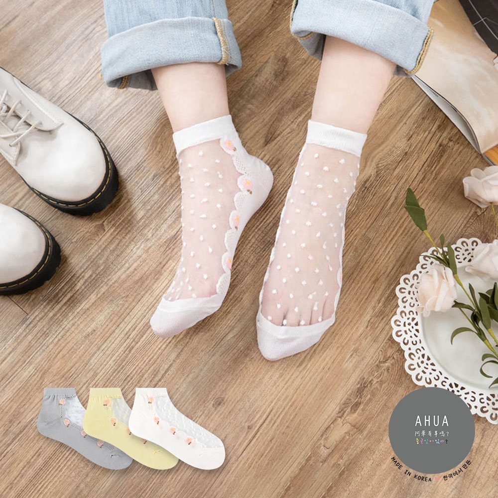 AUHA阿華有事嗎 韓國襪子 透膚立體點點花朵中短襪【K1235】少女襪 韓妞必備 百搭純棉襪