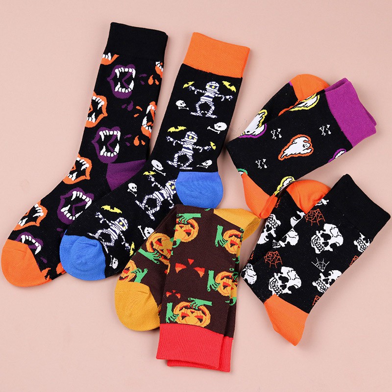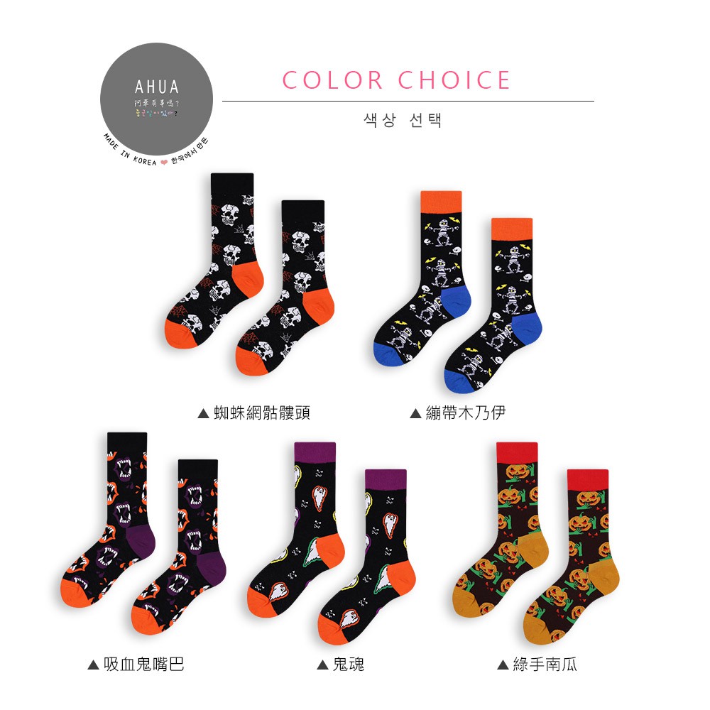 阿華有事嗎AHUA 日系襪子 滿版搞怪萬聖節中筒襪 S0368 少女襪 韓妞必備長襪 百搭純棉襪