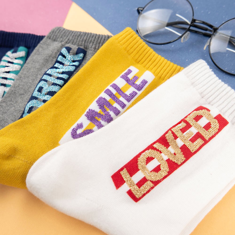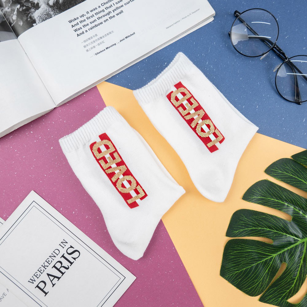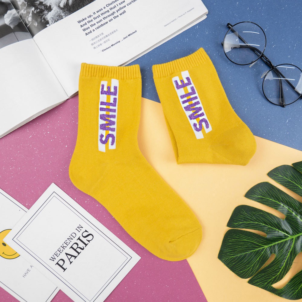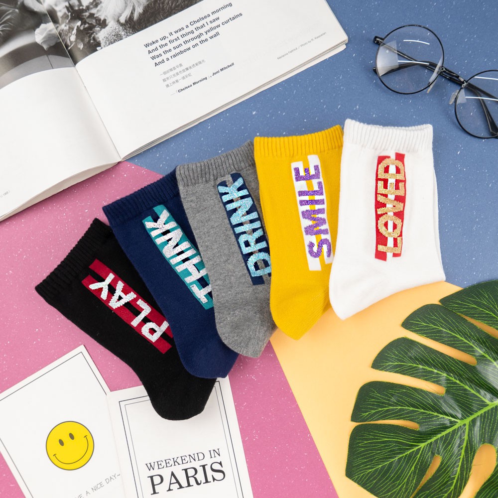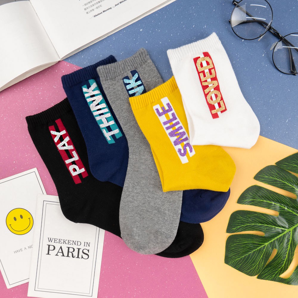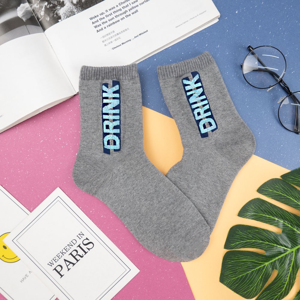 阿華有事嗎AUHA 韓國襪子 側邊金蔥英文中筒襪 K0970 少女襪 韓妞必備長襪 百搭純棉襪