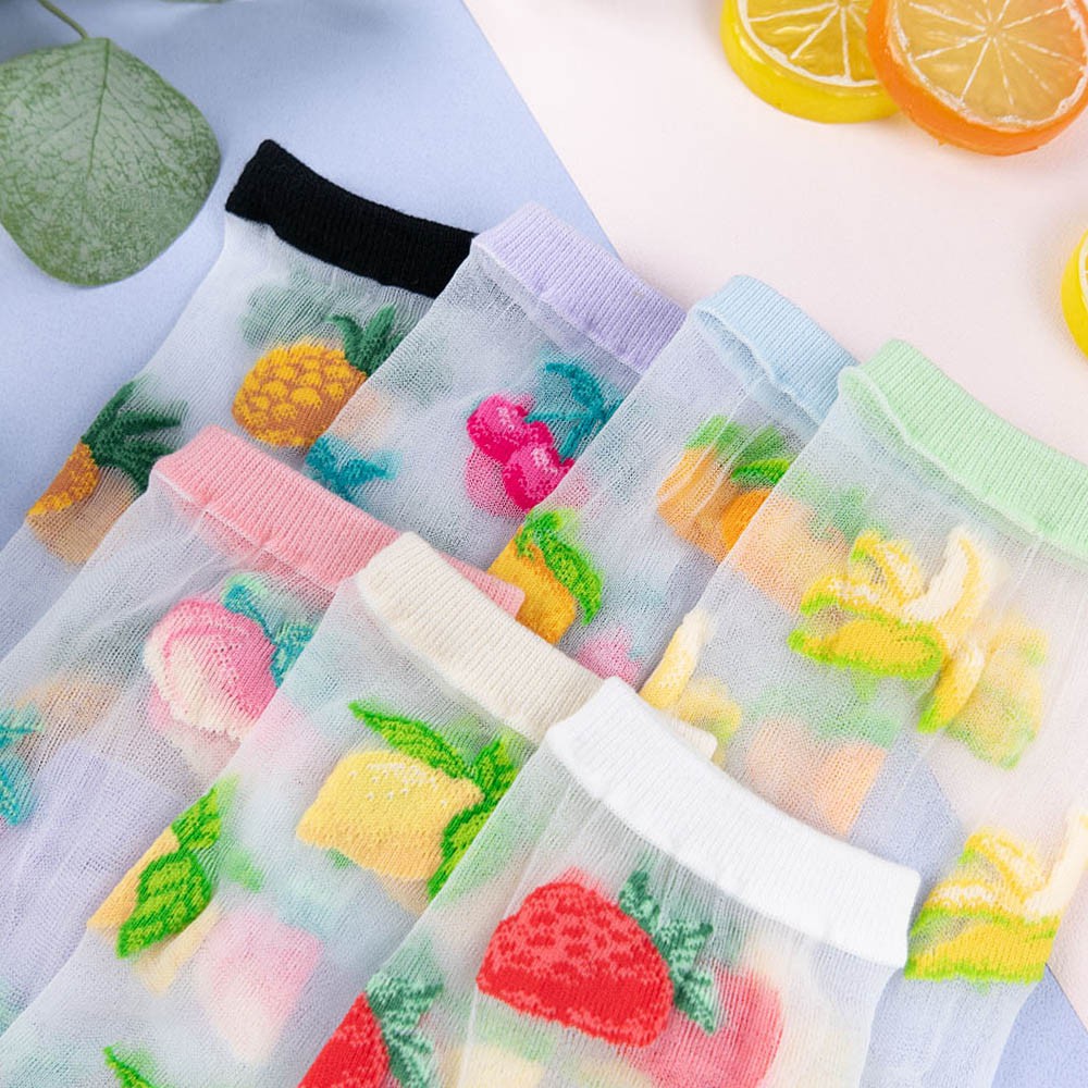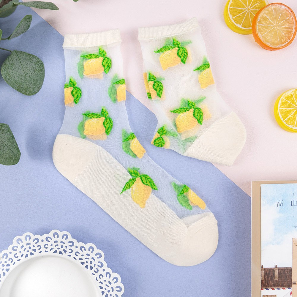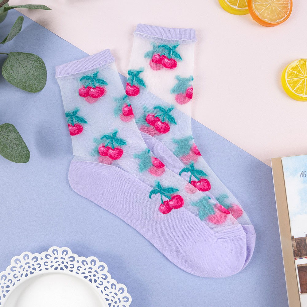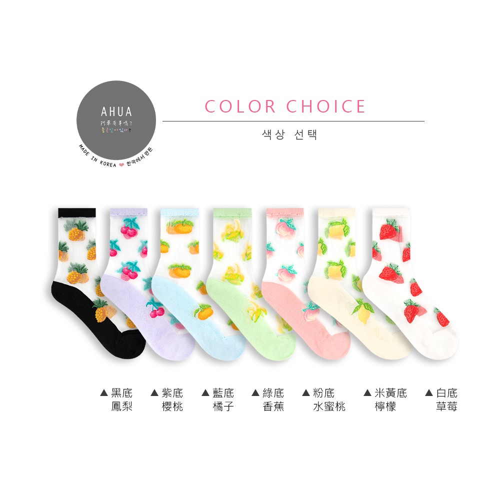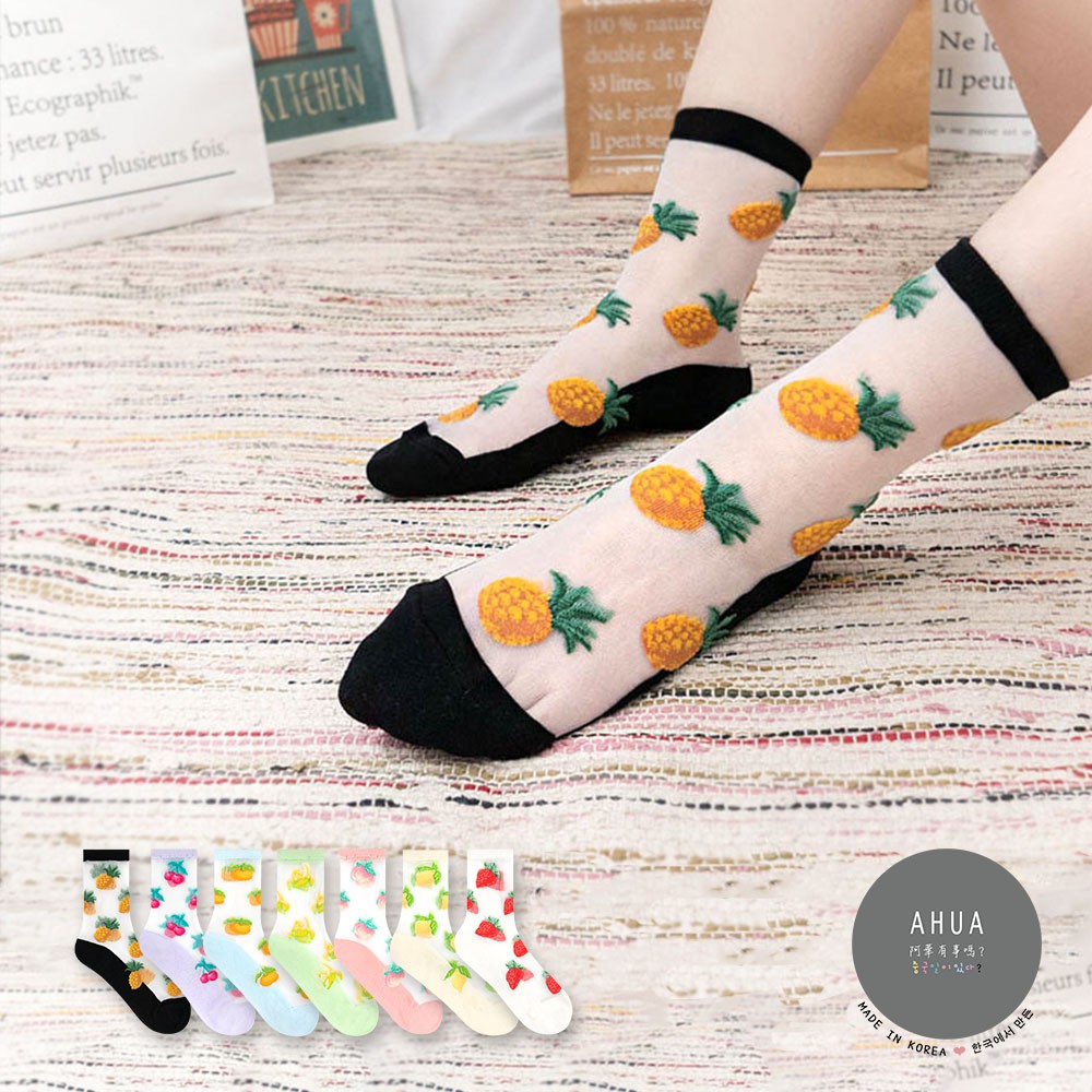 阿華有事嗎AUHA 韓國襪子 透膚滿版水果中筒襪【K1123】 少女襪 韓妞必備長襪 百搭純棉襪