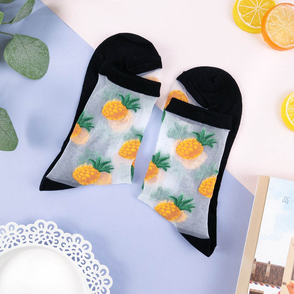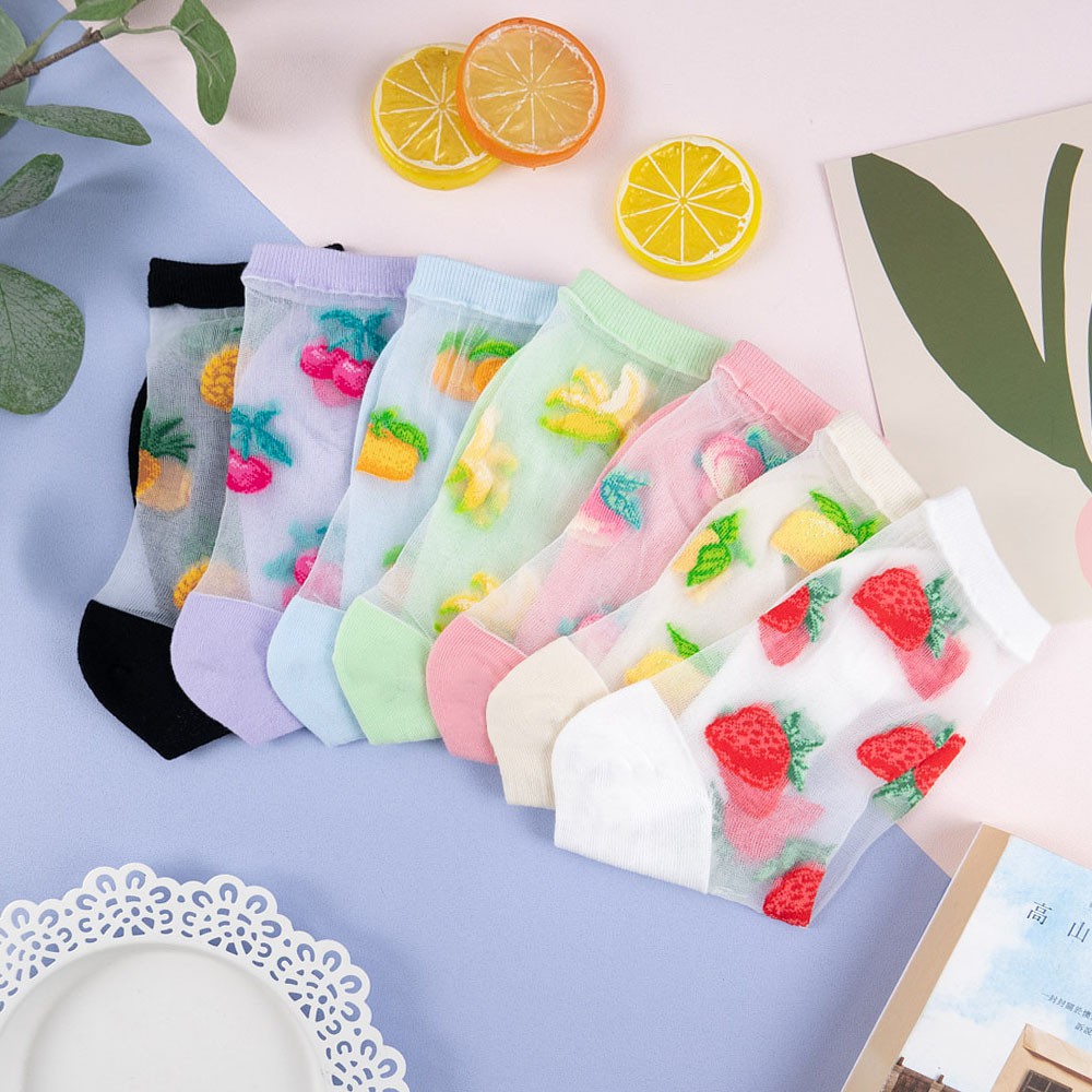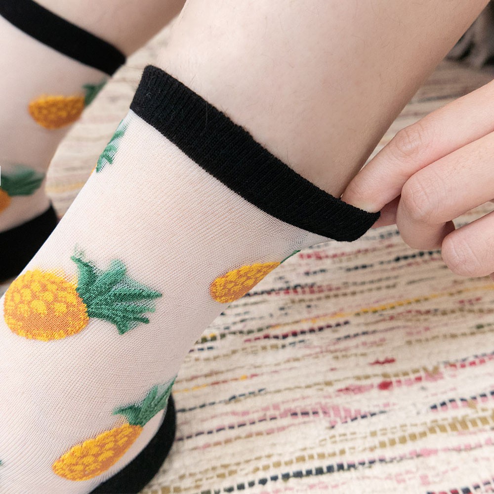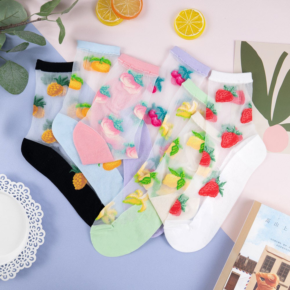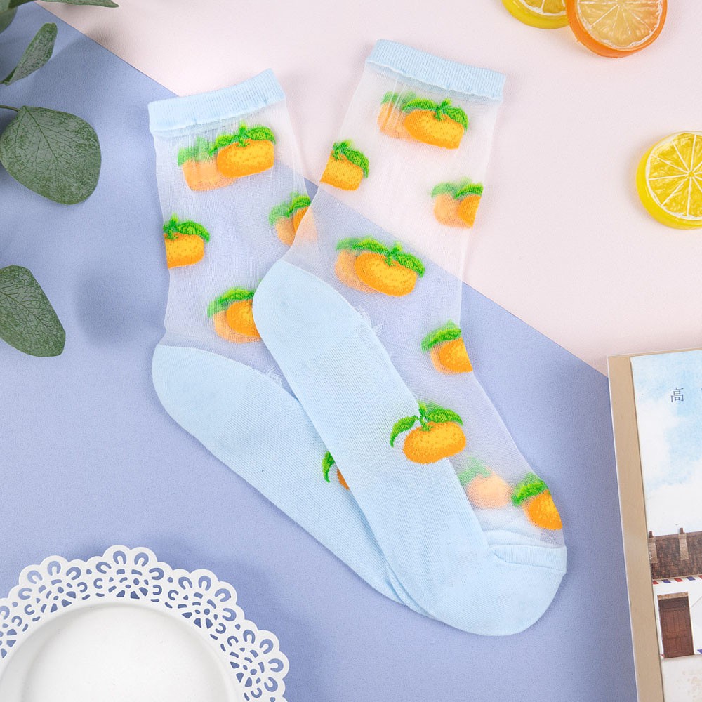 阿華有事嗎AUHA 韓國襪子 透膚滿版水果中筒襪【K1123】 少女襪 韓妞必備長襪 百搭純棉襪