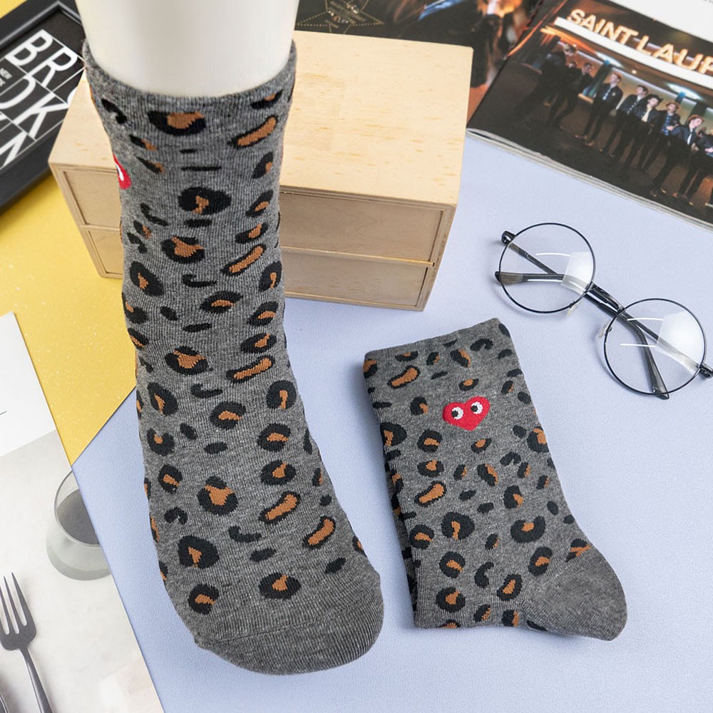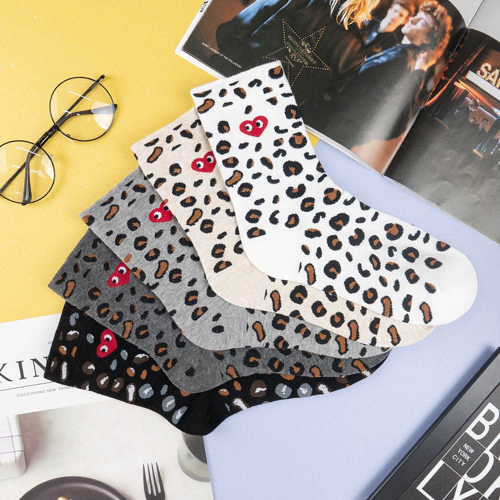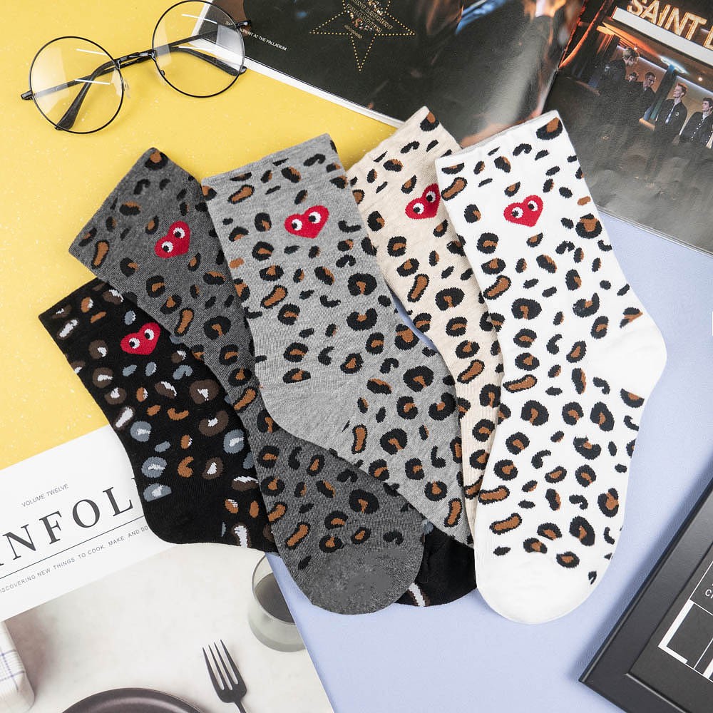 阿華有事嗎AUHA 韓國襪子 豹紋愛心眼睛中筒襪 K0983 少女襪 韓妞必備長襪 百搭純棉襪