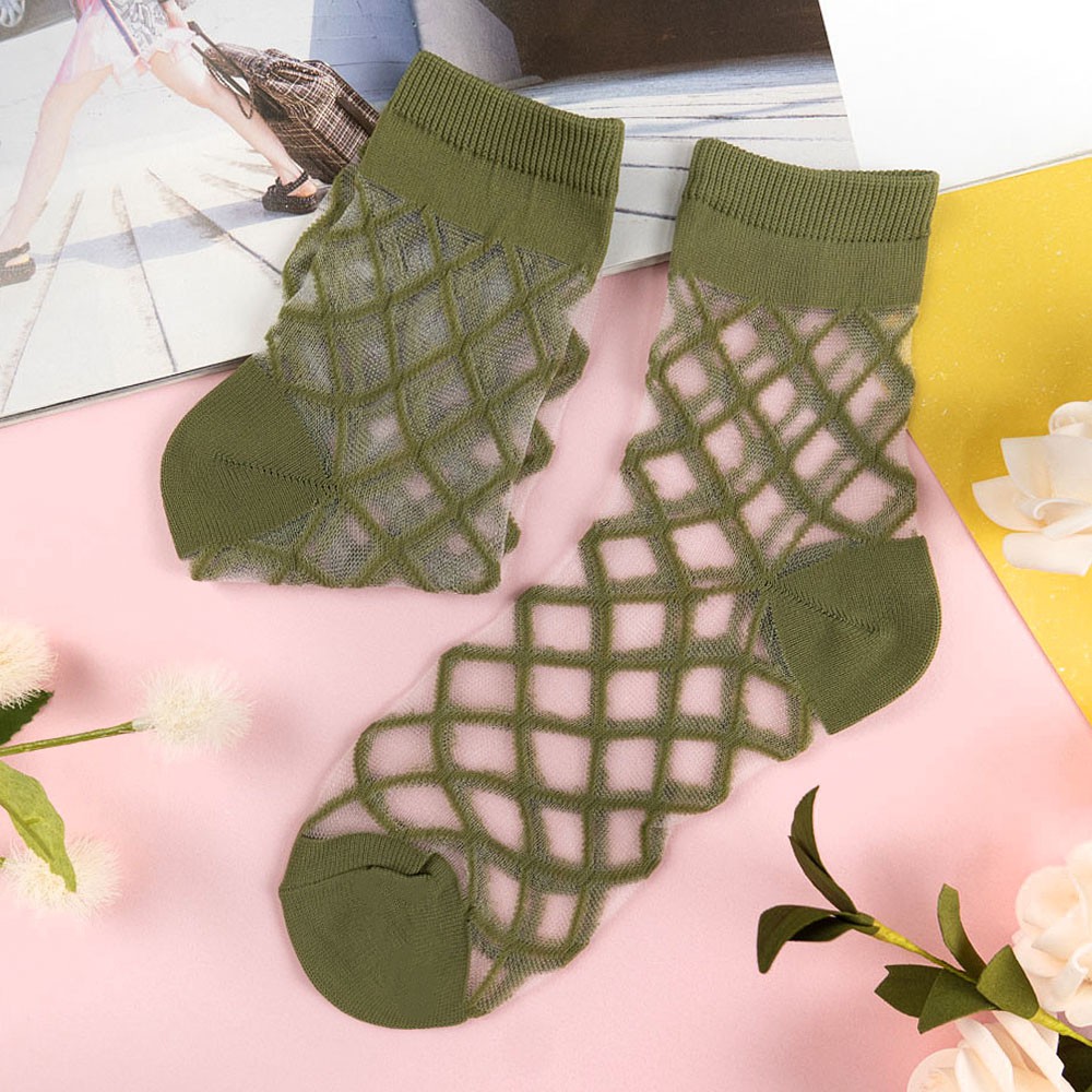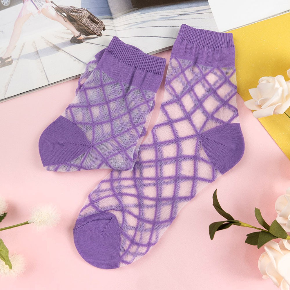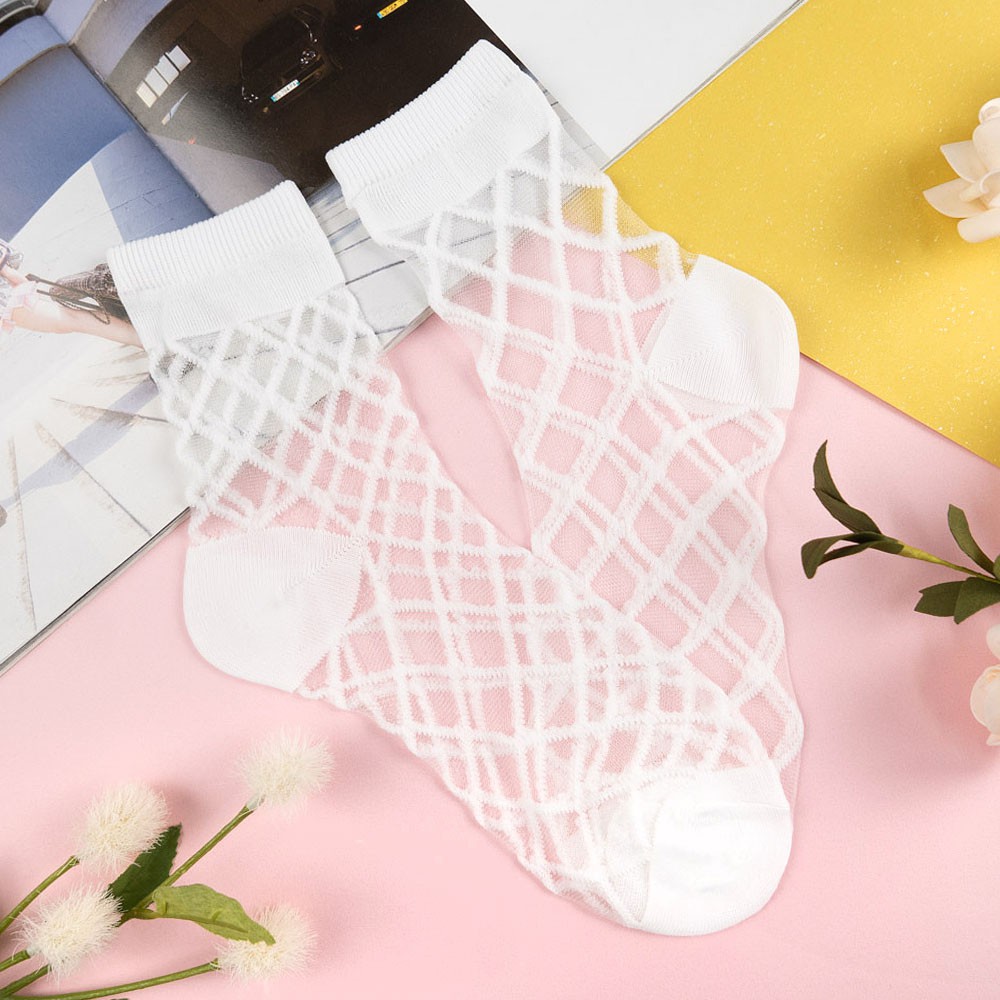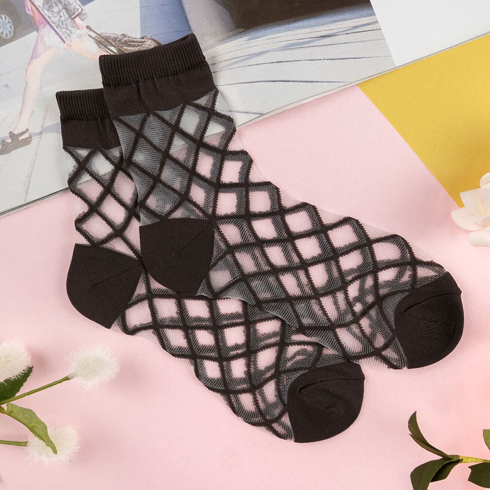 阿華有事嗎AUHA 韓國襪子 透膚菱形格紋中筒襪【K1161】 少女襪 韓妞必備長襪 百搭純棉襪