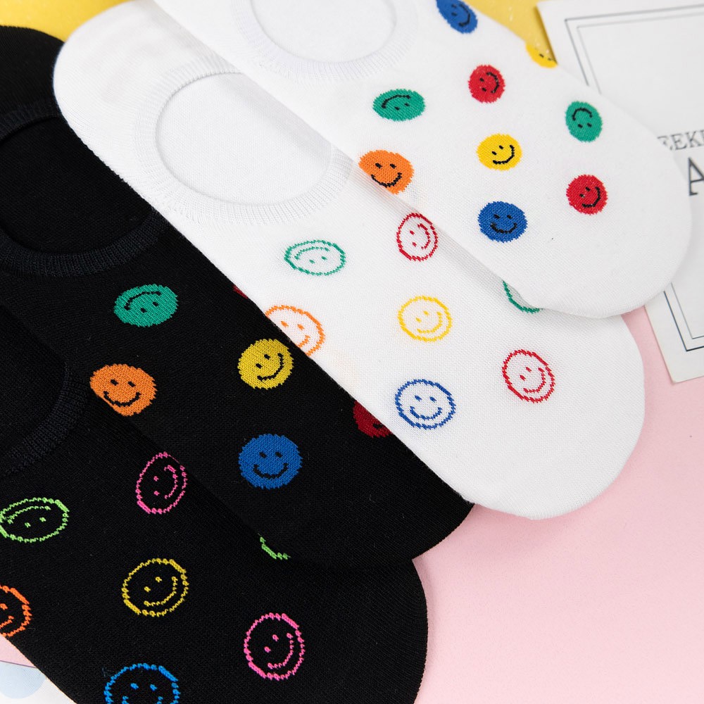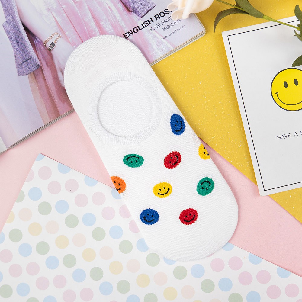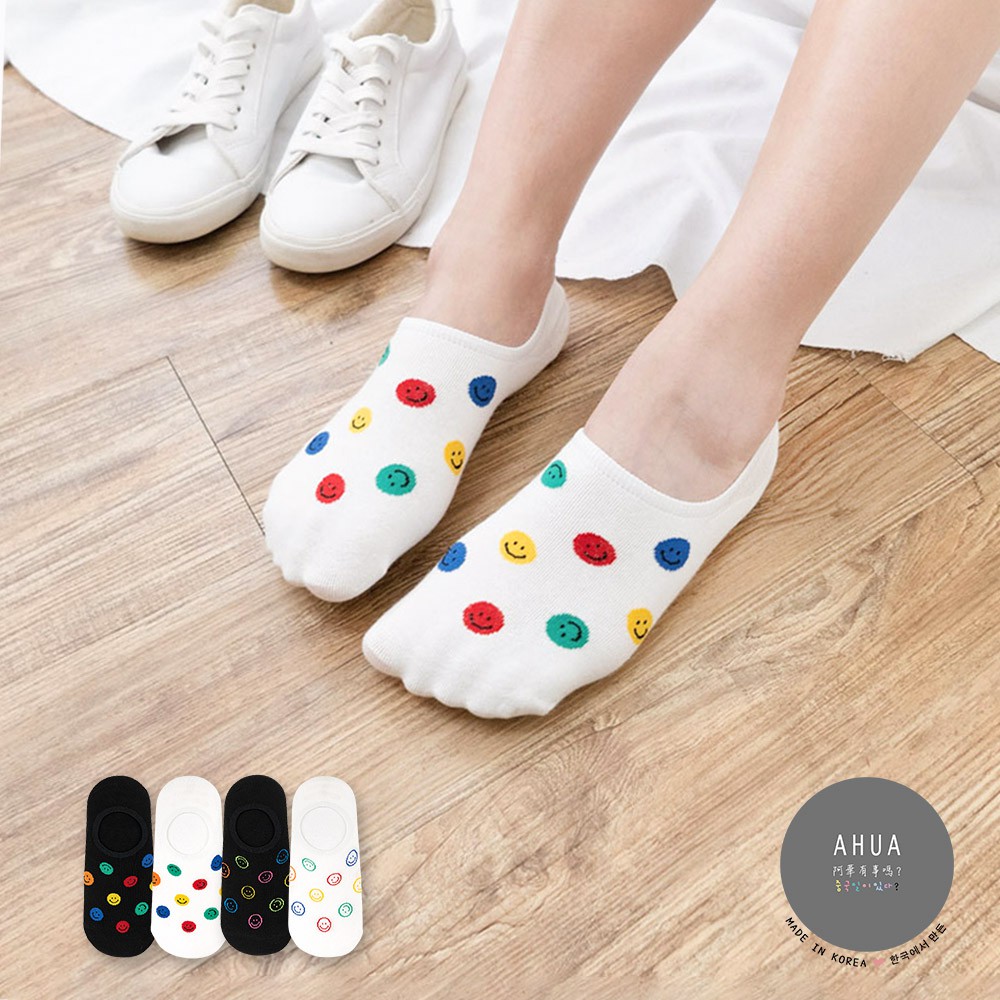 阿華有事嗎AUHA 韓國襪子 滿版彩色笑臉隱形襪 【K1162】 少女襪 韓妞必備長襪 百搭純棉襪