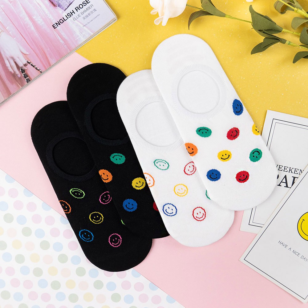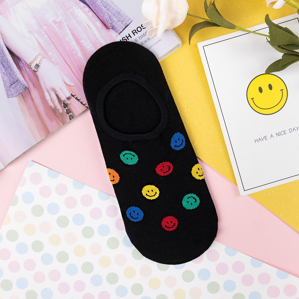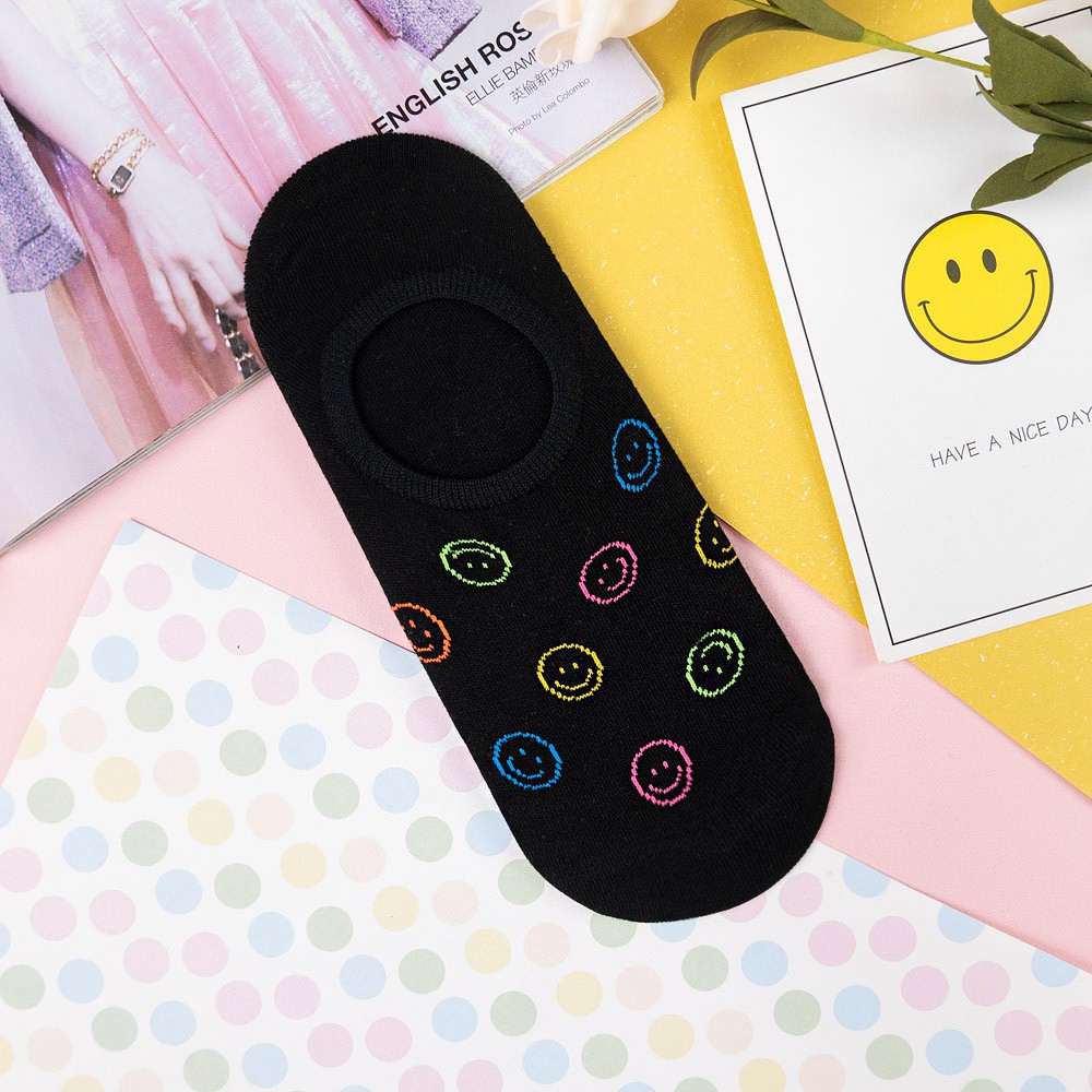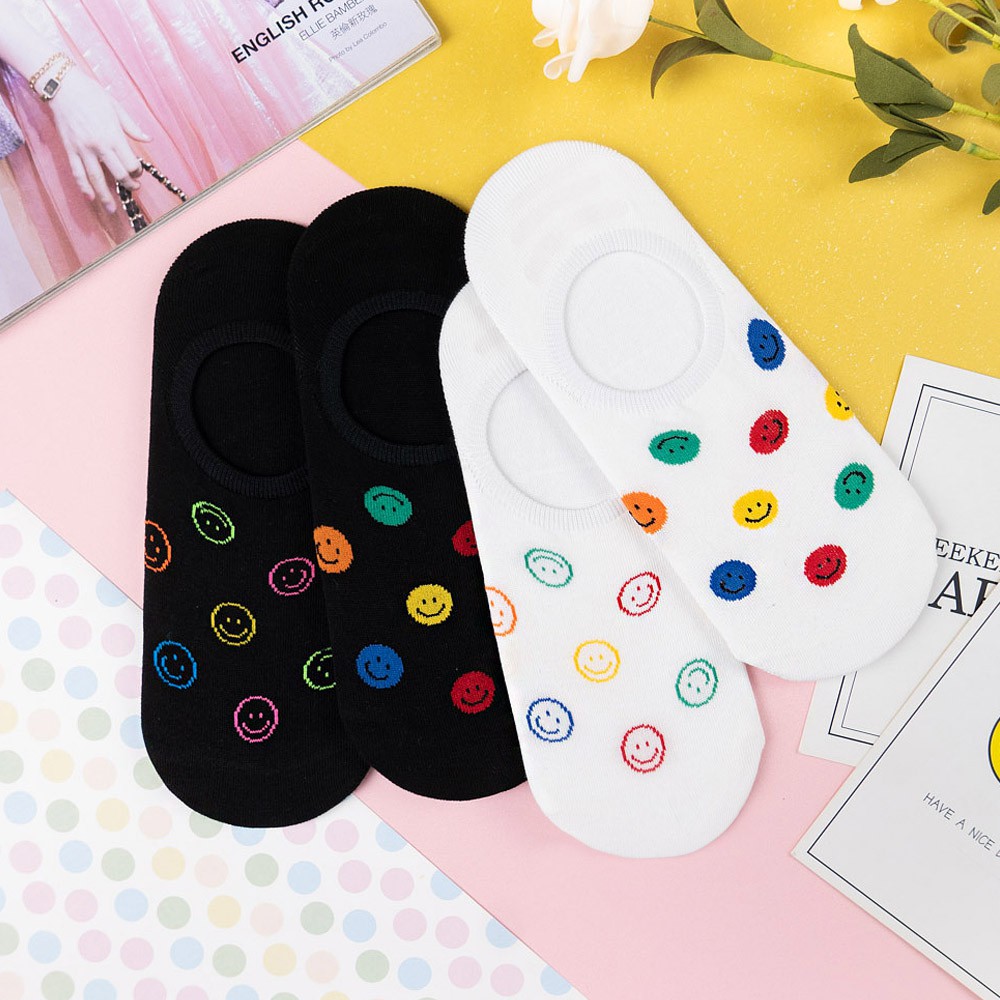 阿華有事嗎AUHA 韓國襪子 滿版彩色笑臉隱形襪 【K1162】 少女襪 韓妞必備長襪 百搭純棉襪