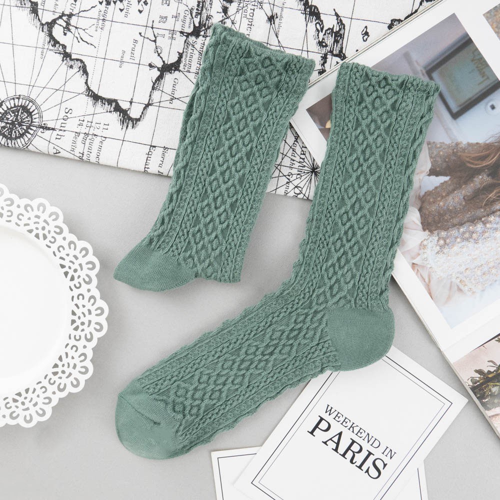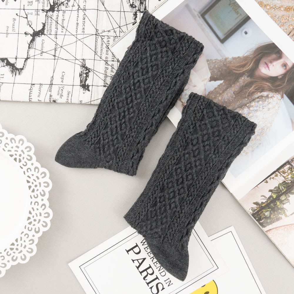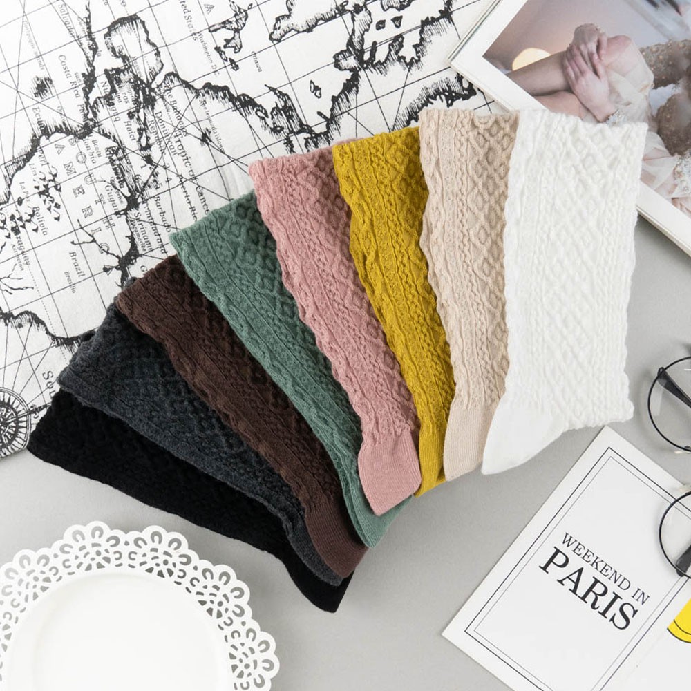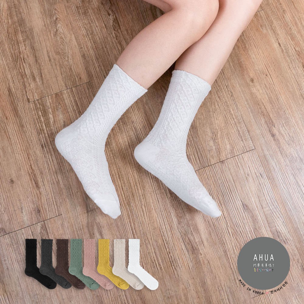 阿華有事嗎AUHA 韓國襪子 秋冬立體古典紋路中筒襪 K0966 少女襪 韓妞必備長襪 百搭純棉襪