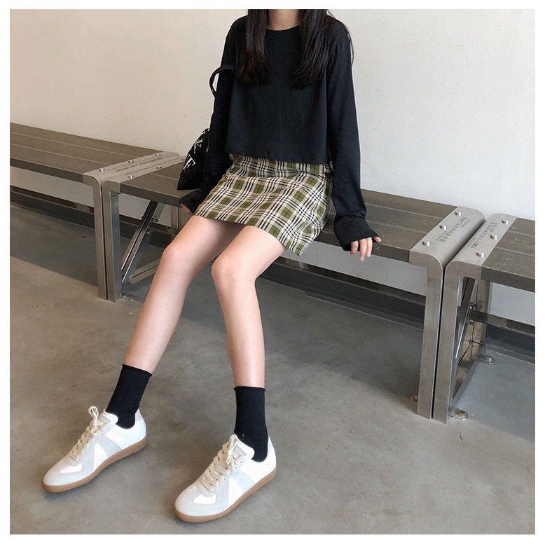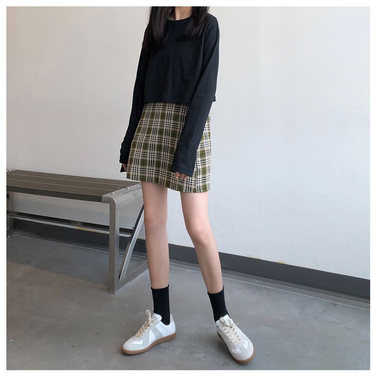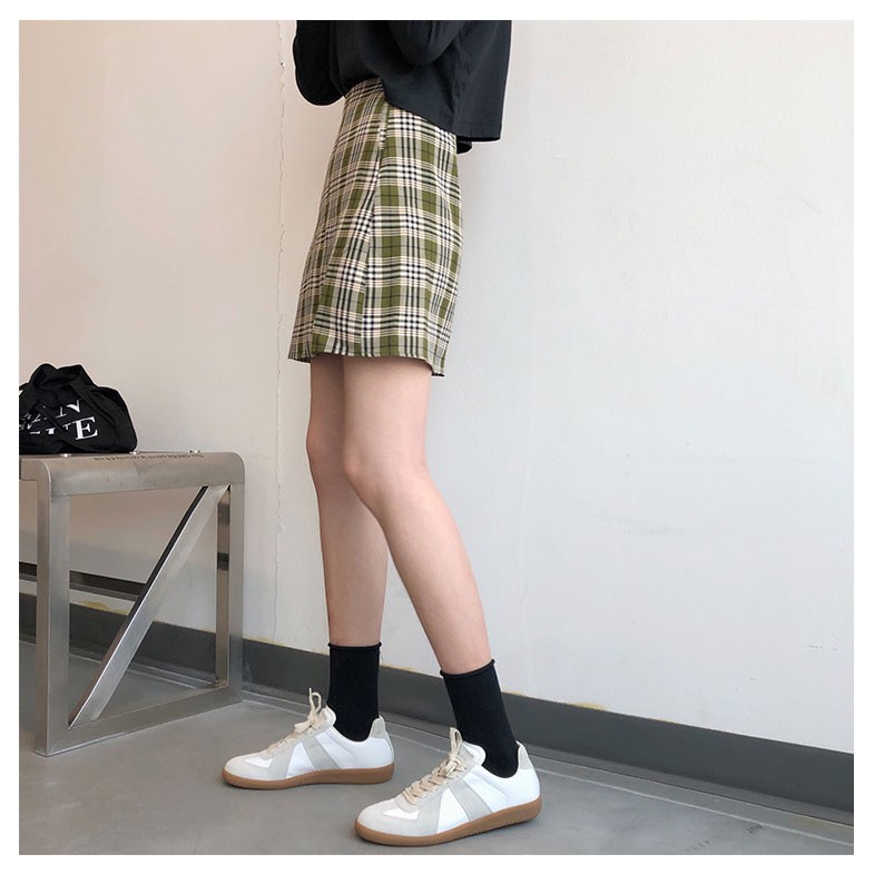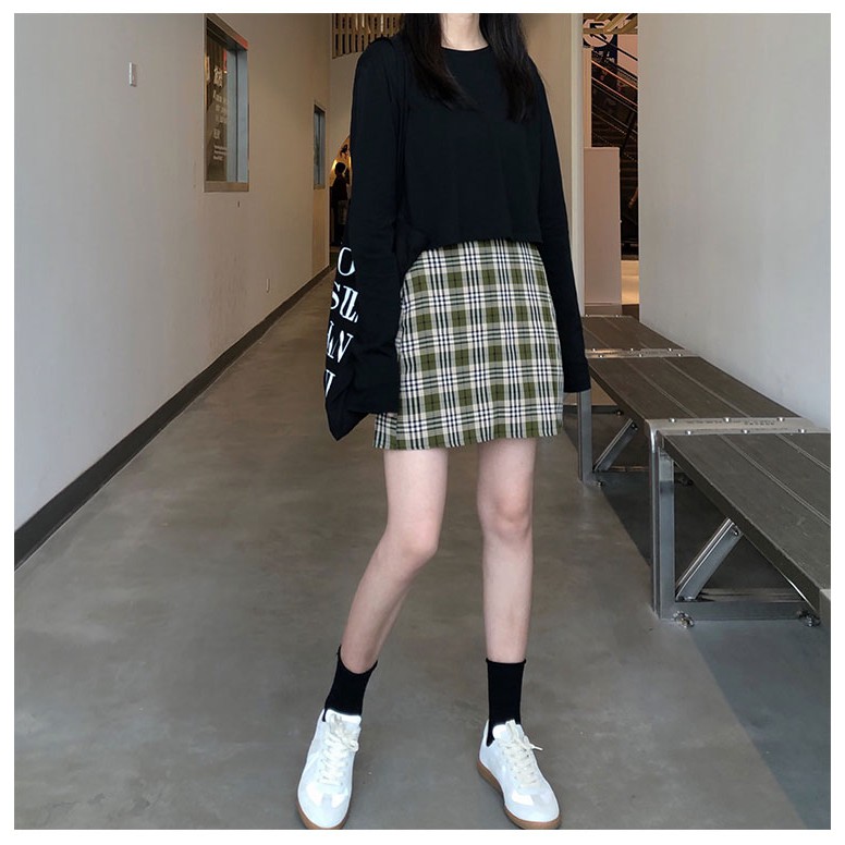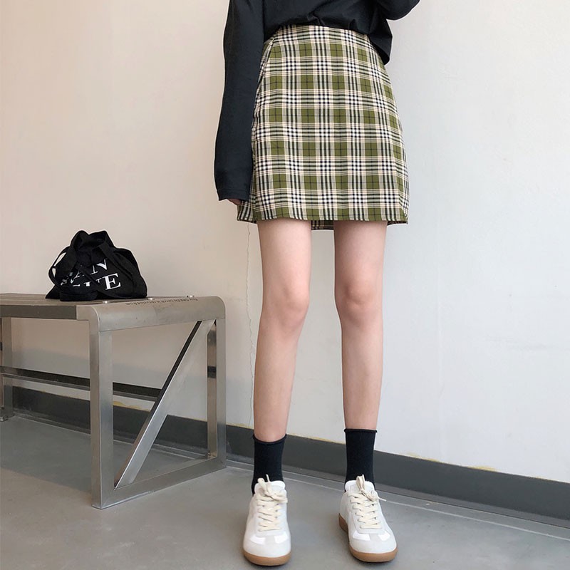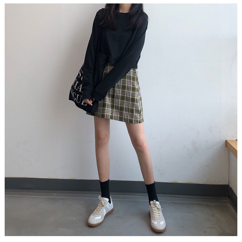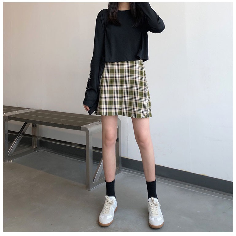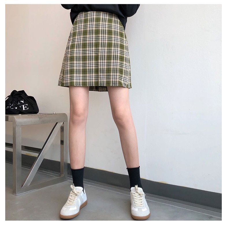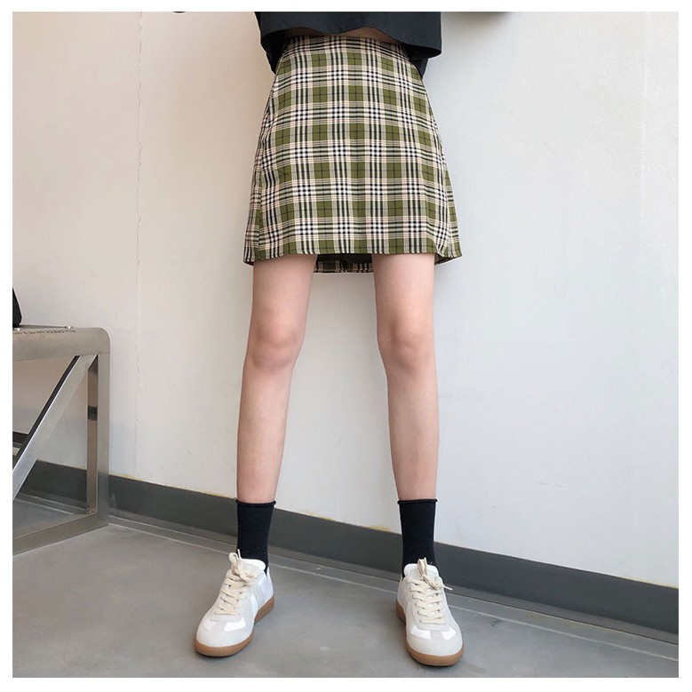AHUA阿華有事嗎 韓系女裝 學院風高腰綠格紋A字裙 C0902 韓版短裙 韓妞必備上衣 秋冬必備穿搭單品【滿額免運】