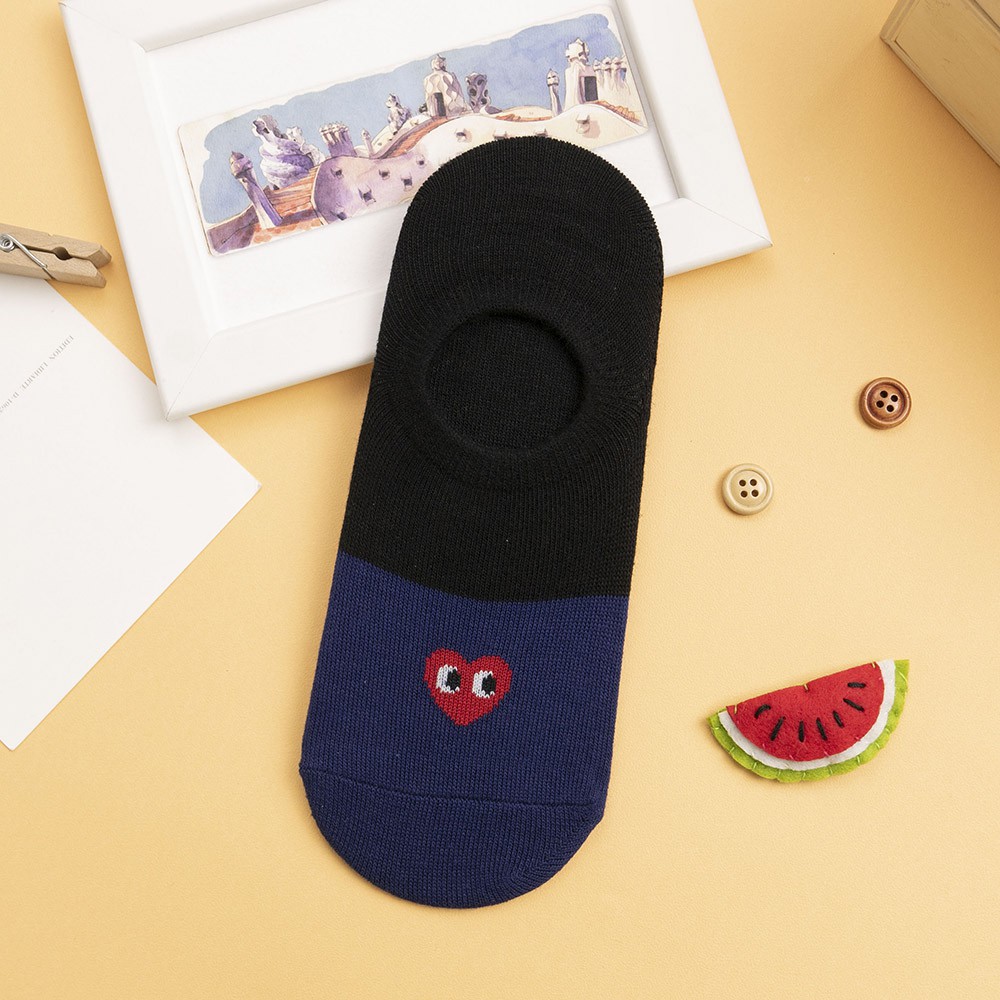 AHUA阿華有事嗎 韓國襪子 拼接撞色小圖案隱形襪 K0793 正韓少女襪 韓妞必備長襪 百搭純棉襪 素色襪子