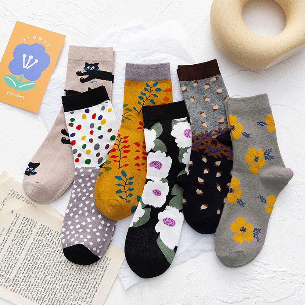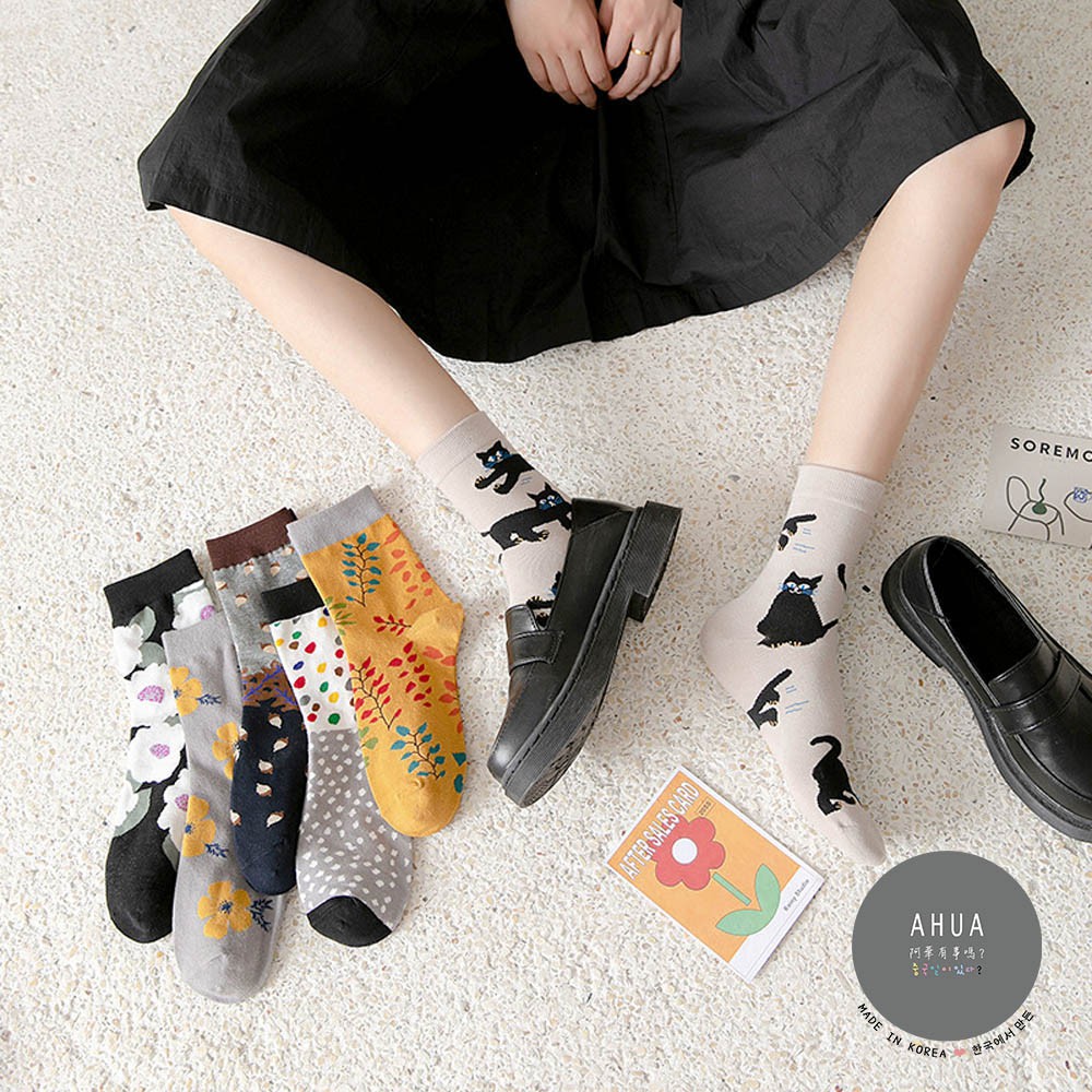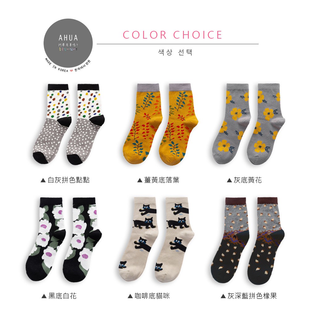 阿華有事嗎AHUA 日系襪子 文青油畫風中筒襪 S0365 少女襪 韓妞必備長襪 百搭純棉襪