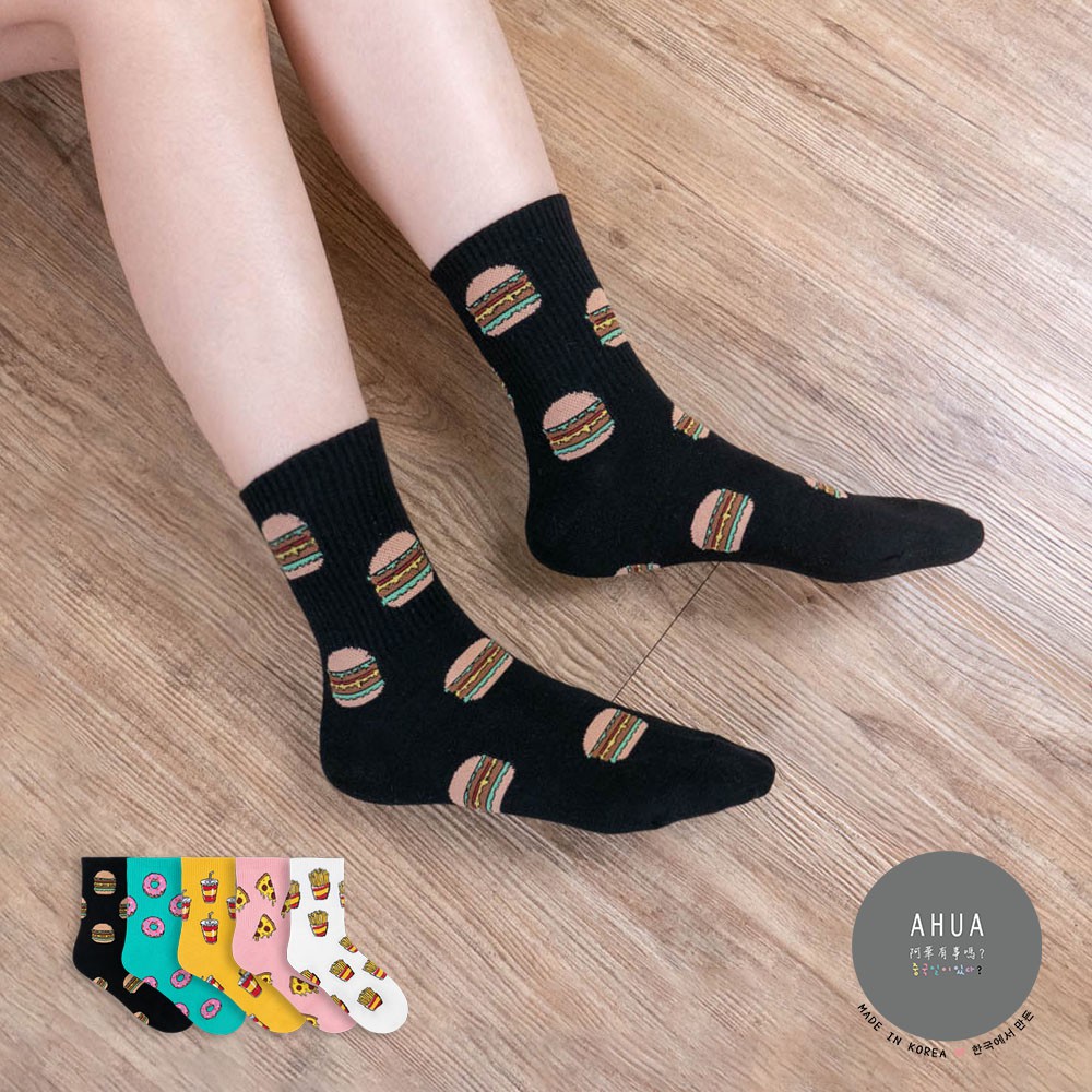 阿華有事嗎AUHA 韓國襪子 彩底滿版速食中筒襪 K0958 少女襪 韓妞必備長襪 百搭純棉襪