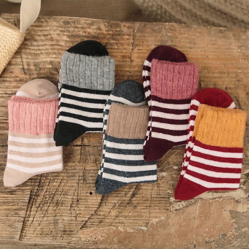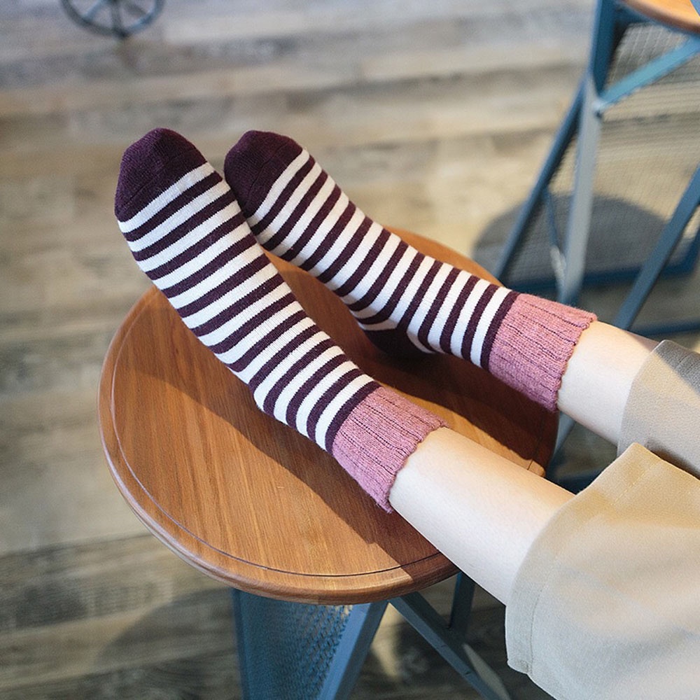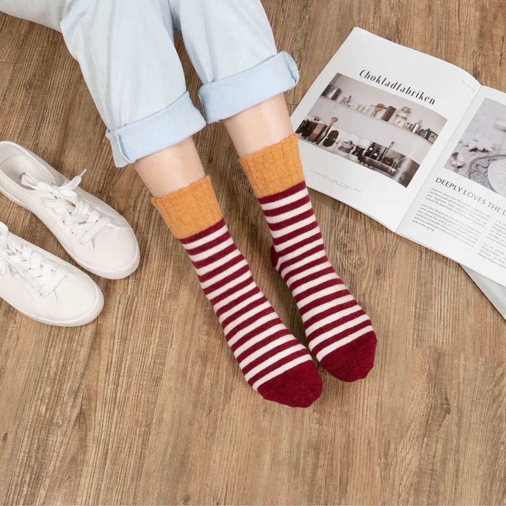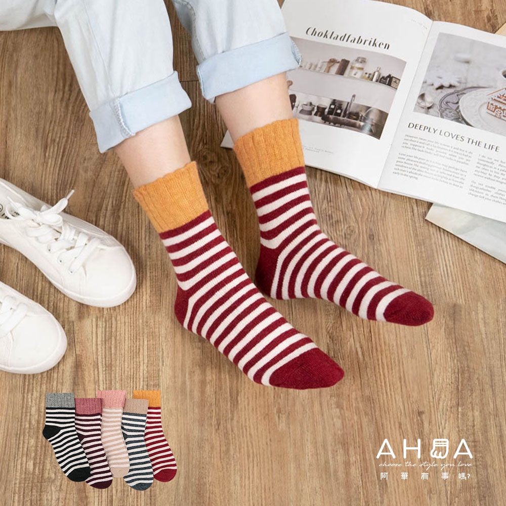 AHUA阿華有事嗎 日系襪子 拼色條紋羊毛襪 S0329 少女襪 韓妞必備長襪 百搭純棉襪 素色襪子